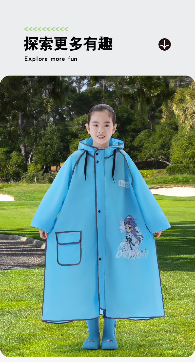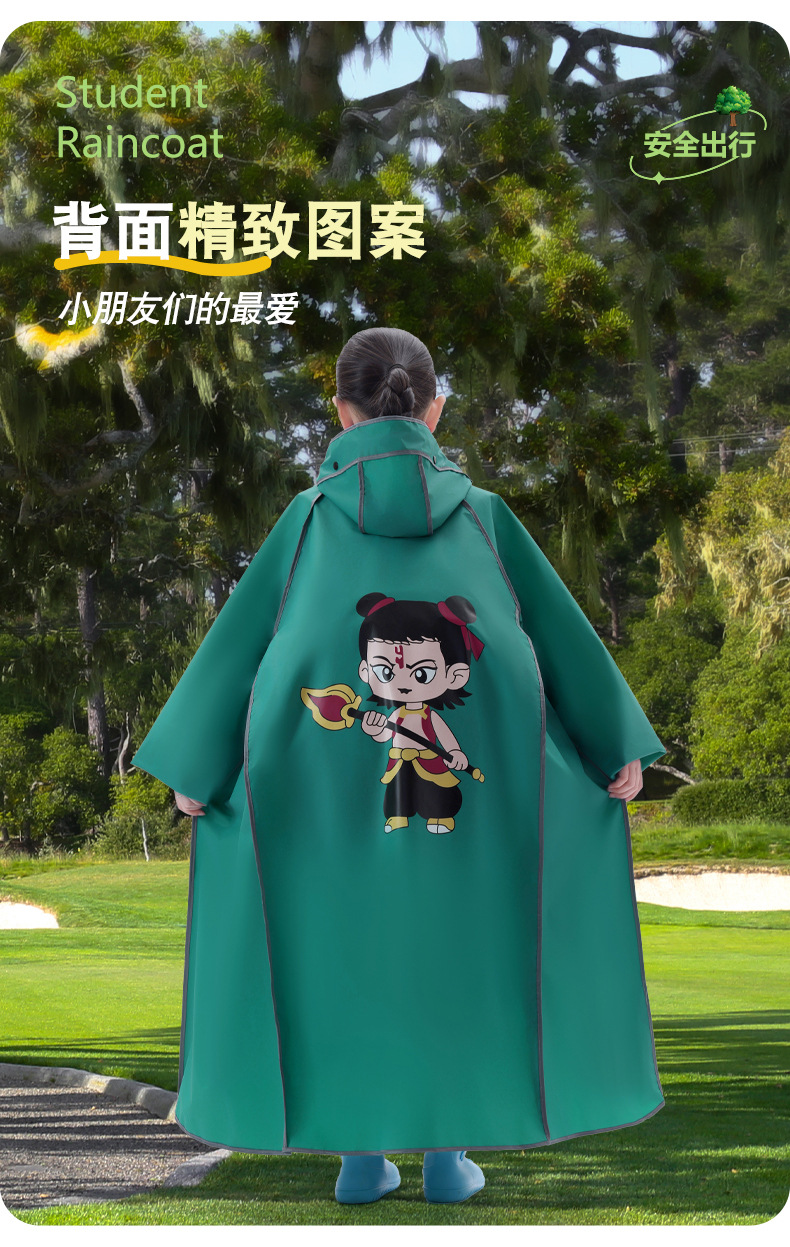 Nezha Raincoat 어린이 초등학교 소년 및 소녀 긴 전신 강우 방지 중 및 대형 어린이 자전거 학교 판초스토어 가기