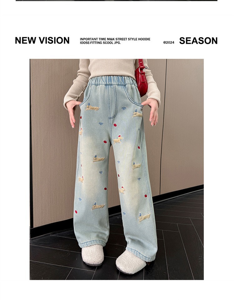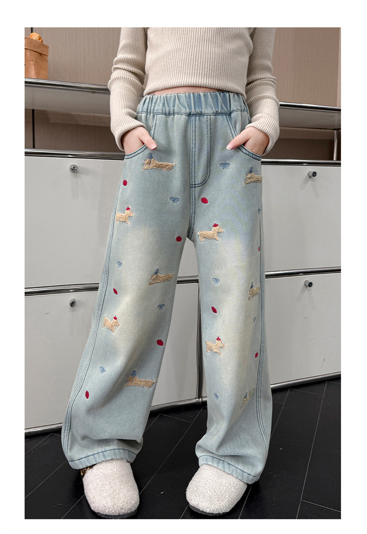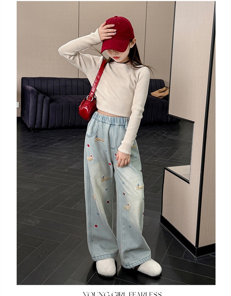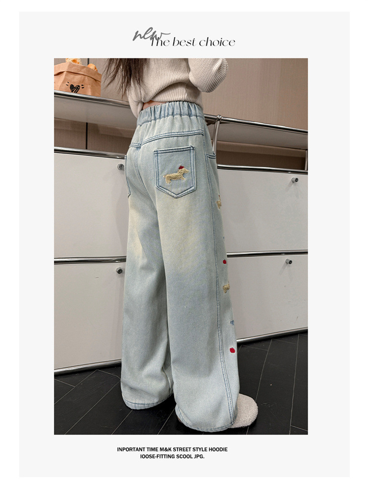 여아 데님 팬츠 봄 가을 2026 신상 봄옷 큰아이들을 위한 패셔너블한 와이드 팬츠 중학생 봄철 스트레이트 팬츠스토어 가기