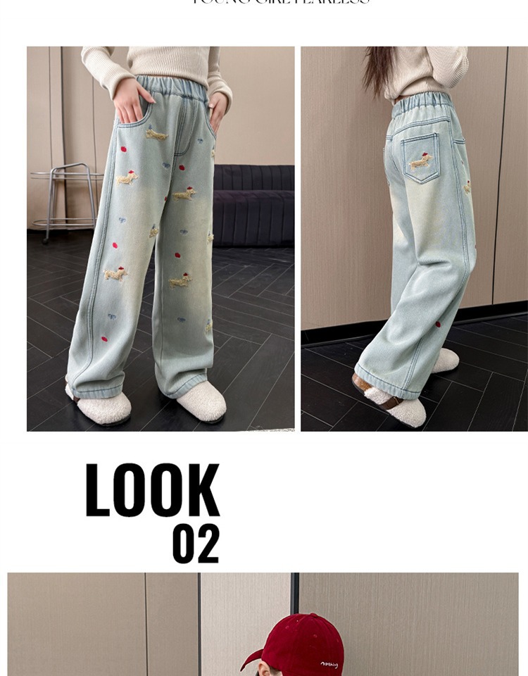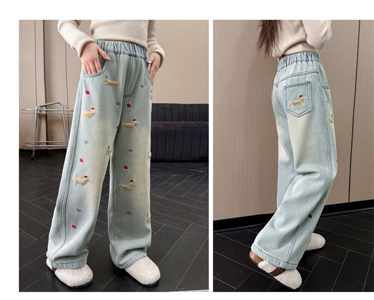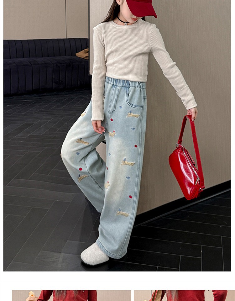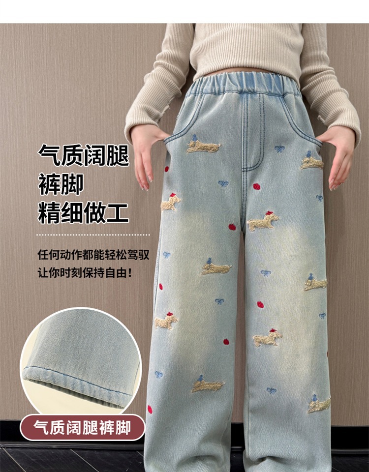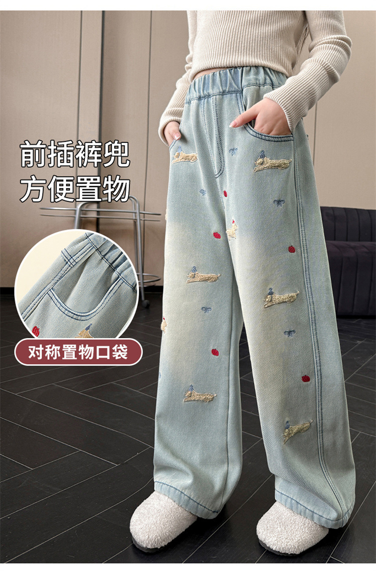 여아 데님 팬츠 봄 가을 2026 신상 봄옷 큰아이들을 위한 패셔너블한 와이드 팬츠 중학생 봄철 스트레이트 팬츠스토어 가기