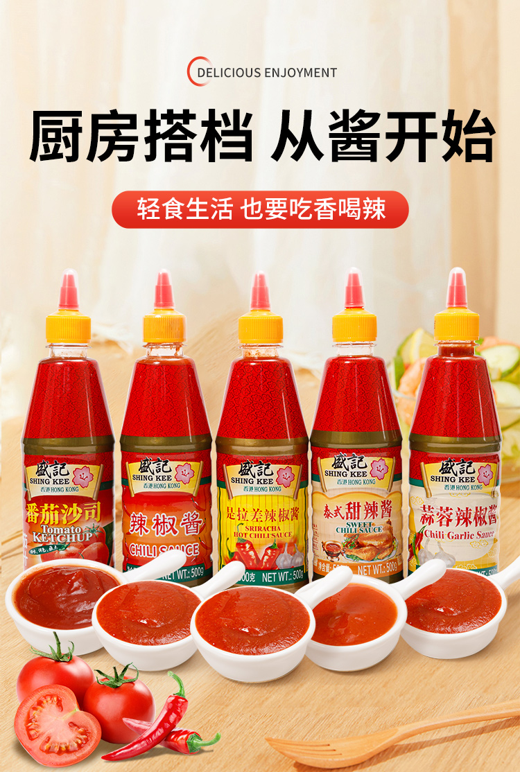 Shengji 토마토 소스 500g 태국 달콤한 칠리 소스 마늘 칠리 소스 Kwantung 삶은 핫 팟 딥 소재 핸드 헬드 팬케이크 칠리 소스