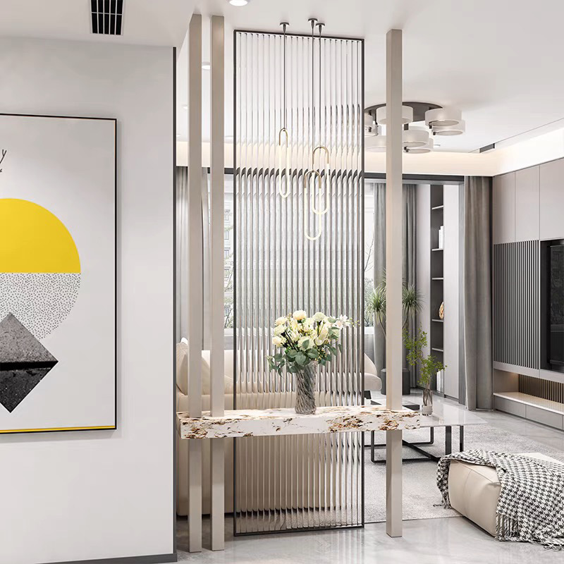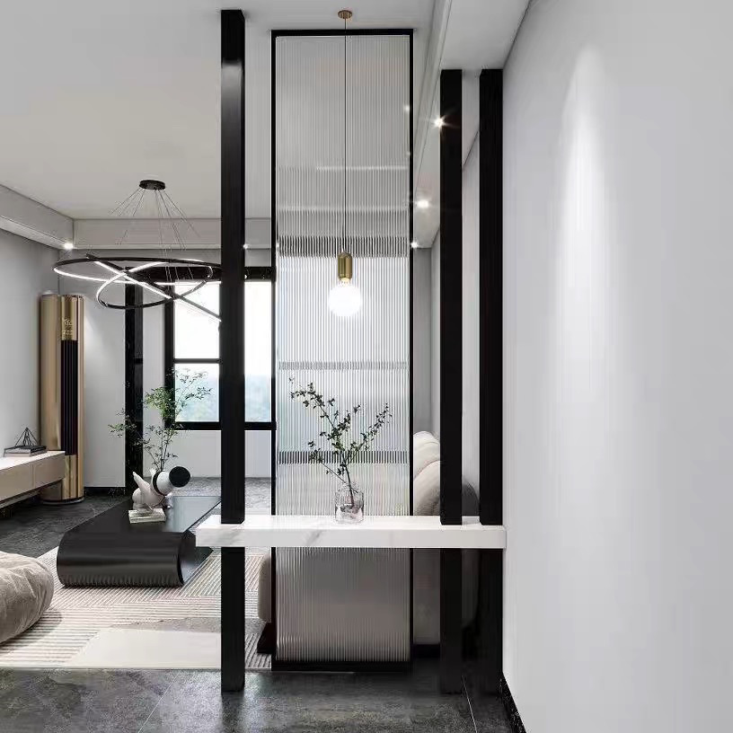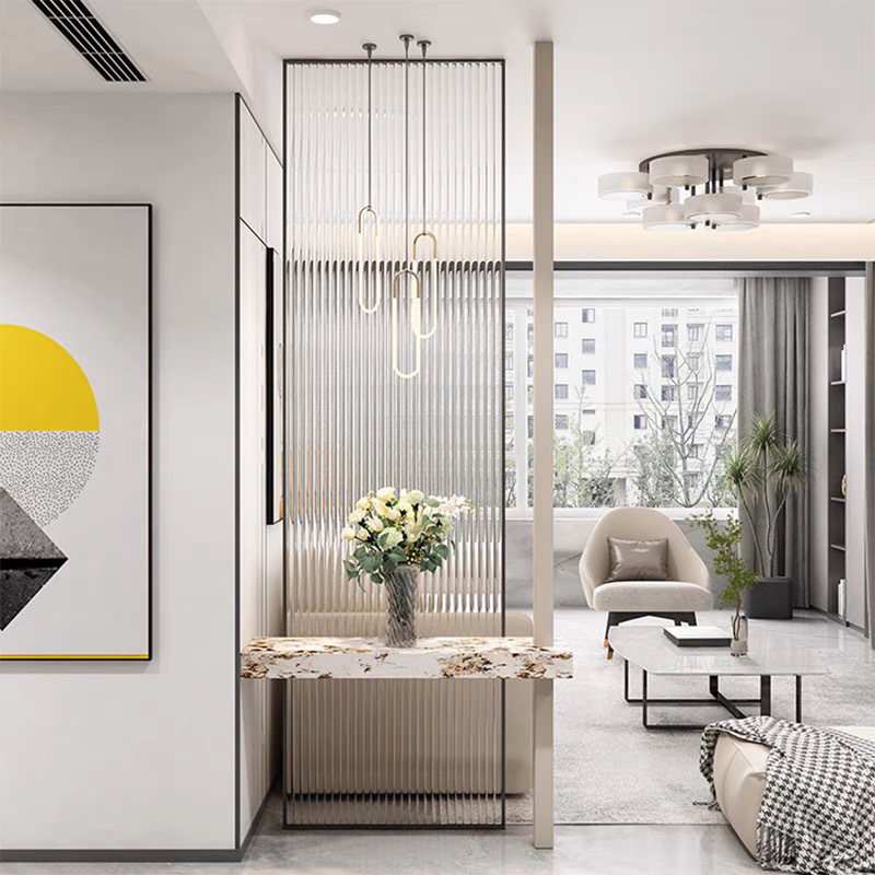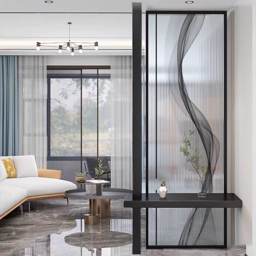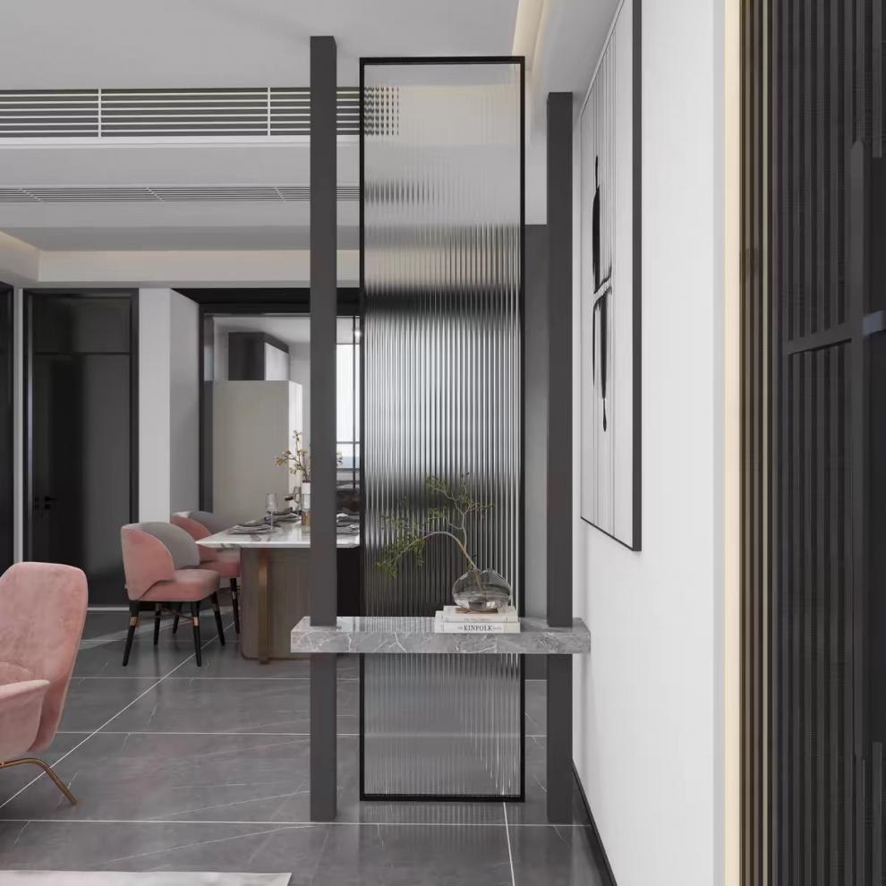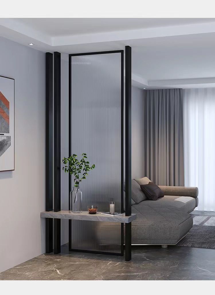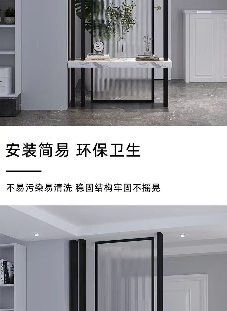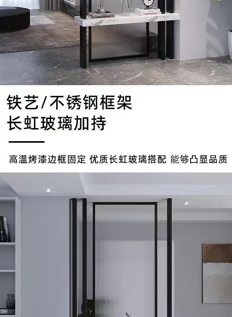 现代简约岩板不锈钢长虹玻璃铁艺玄关隔断入户正对门客厅屏风遮挡
