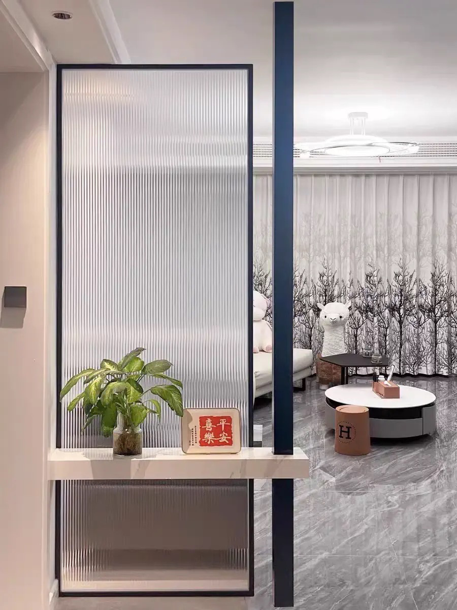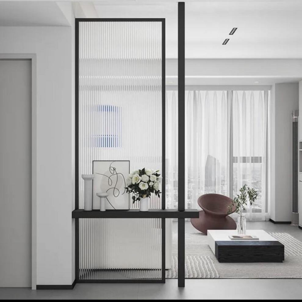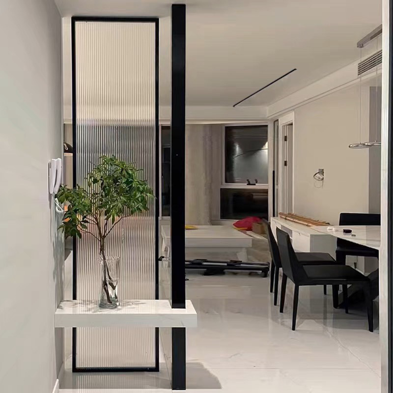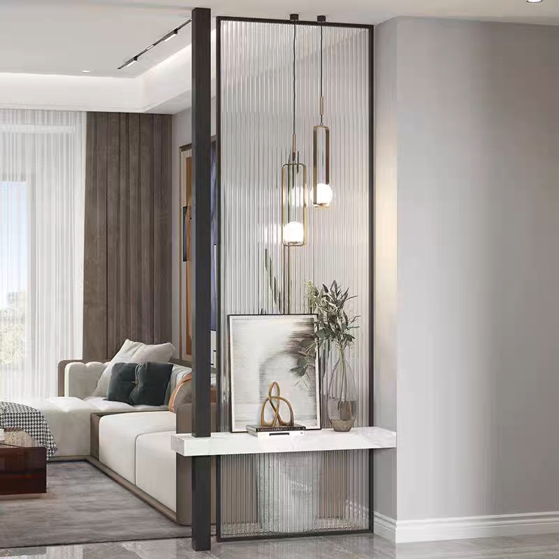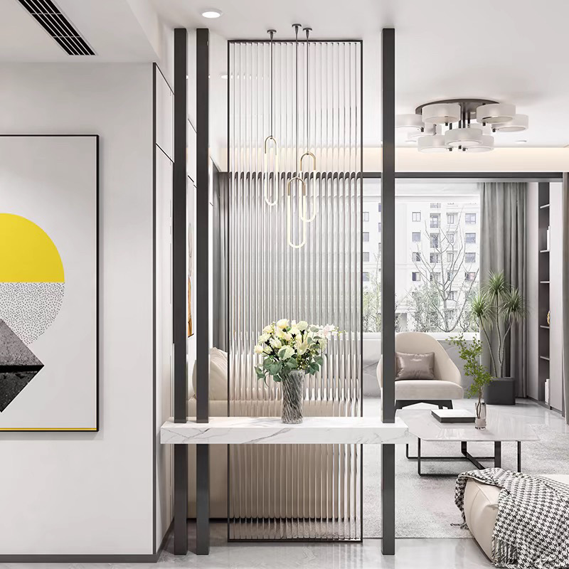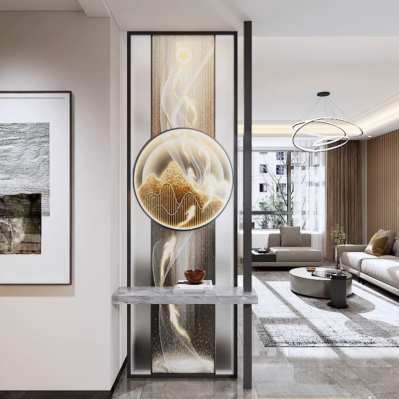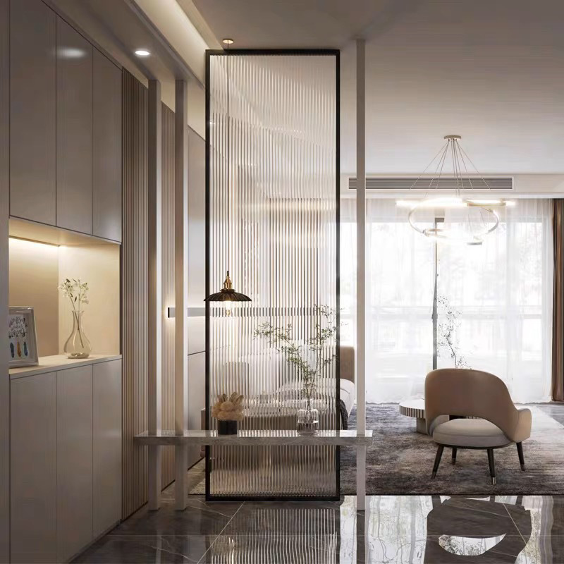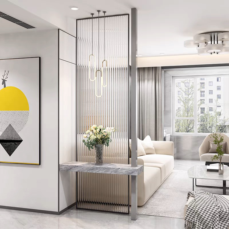 现代简约岩板不锈钢长虹玻璃铁艺玄关隔断入户正对门客厅屏风遮挡