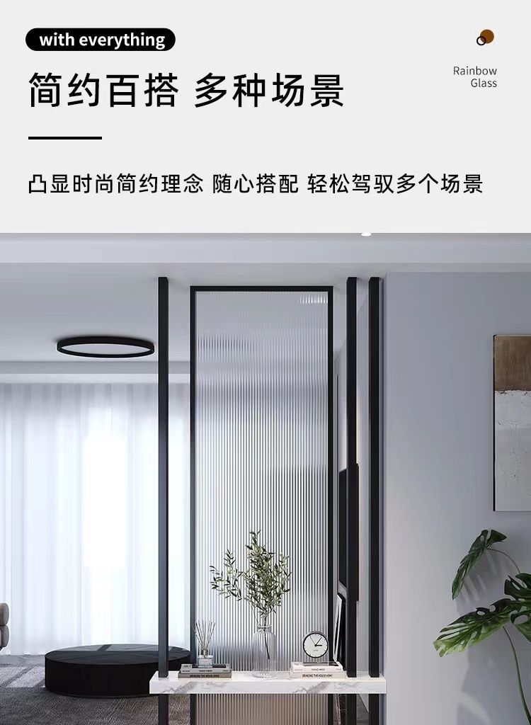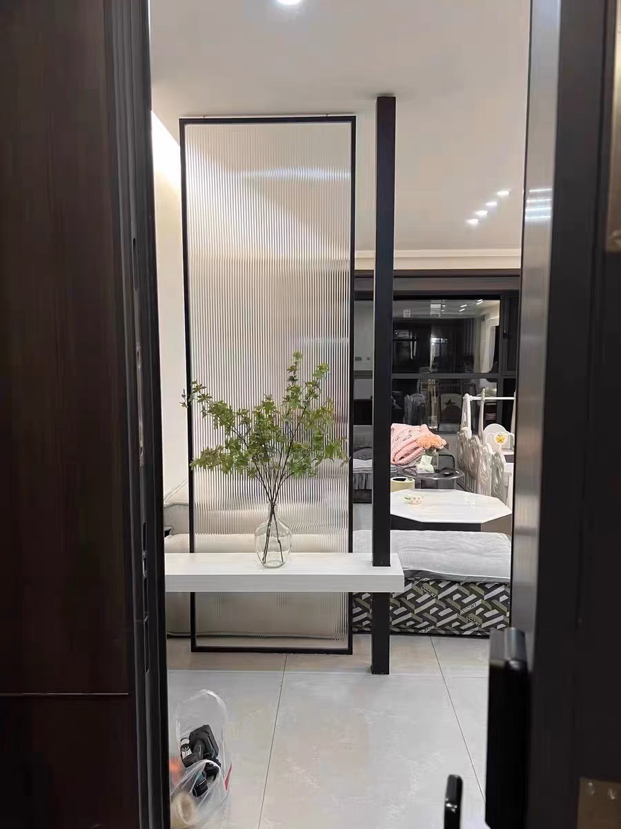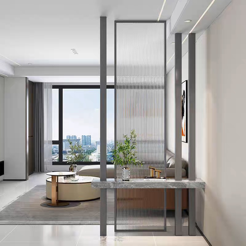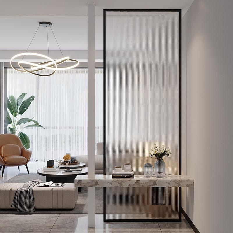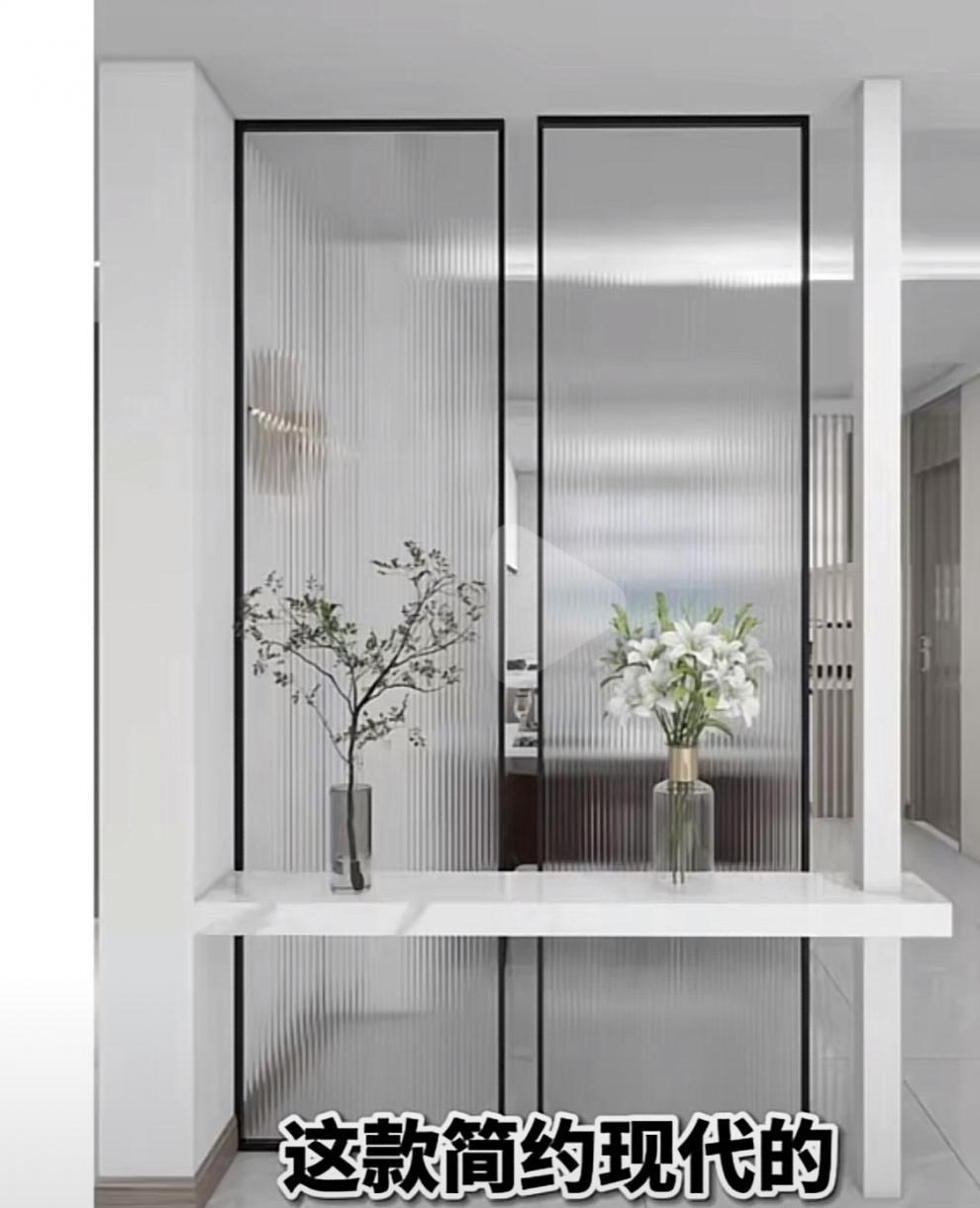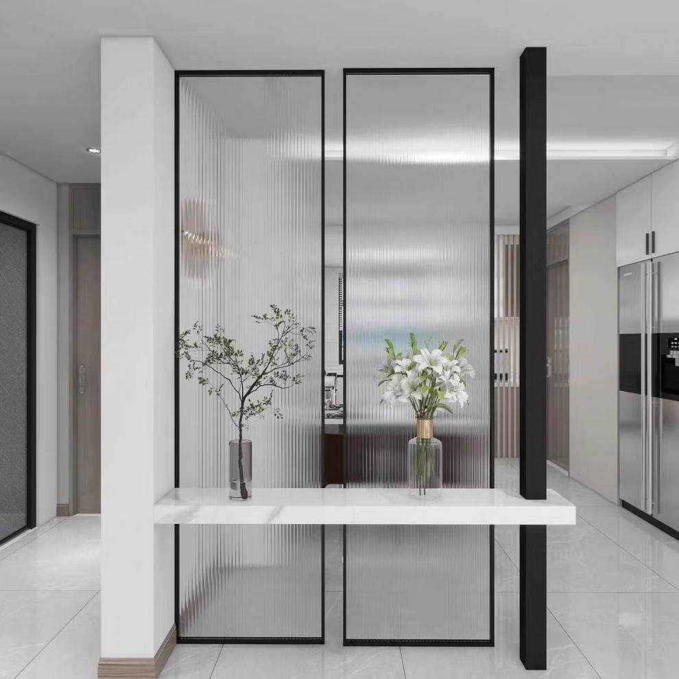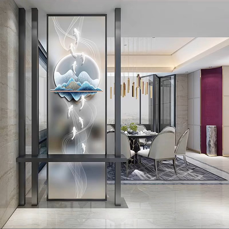 现代简约岩板不锈钢长虹玻璃铁艺玄关隔断入户正对门客厅屏风遮挡