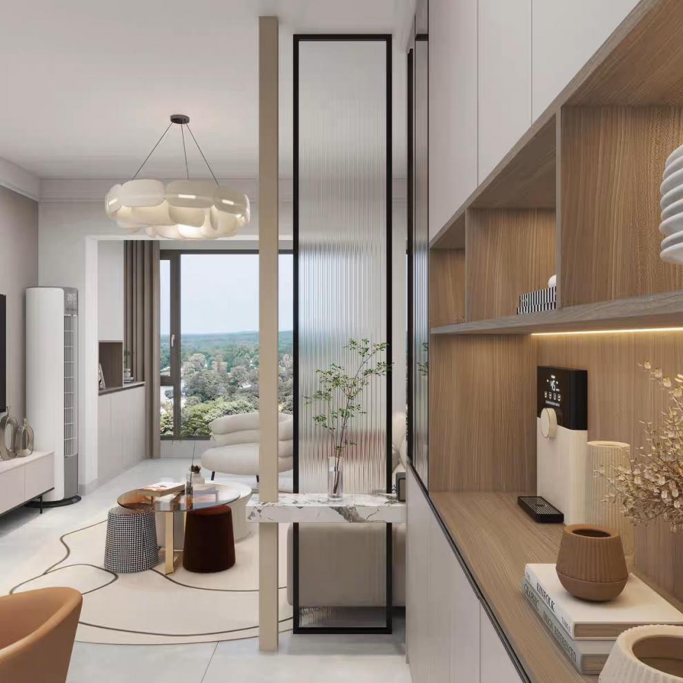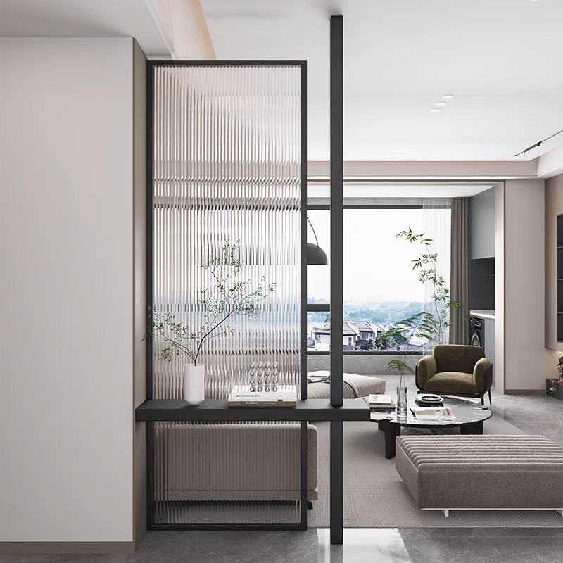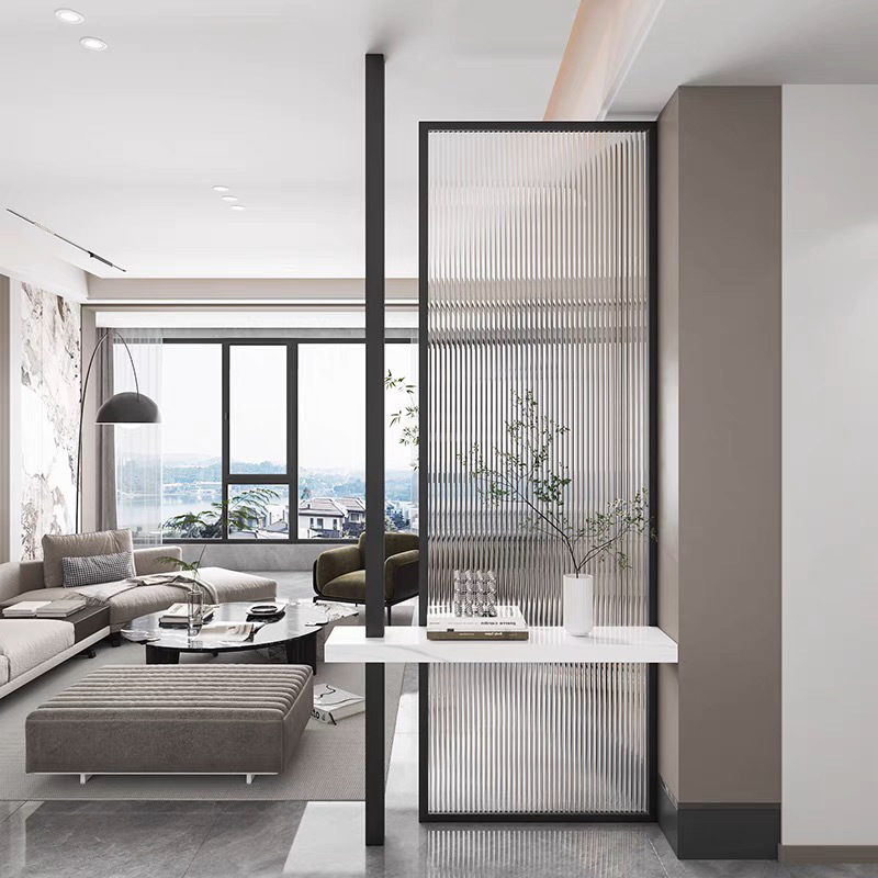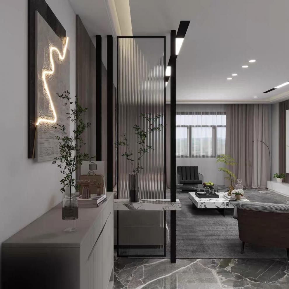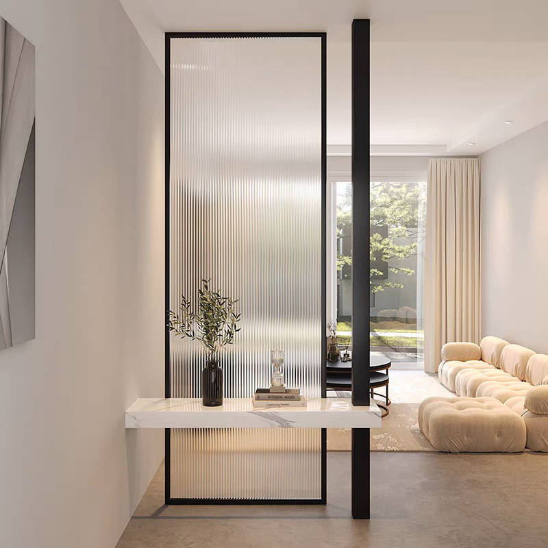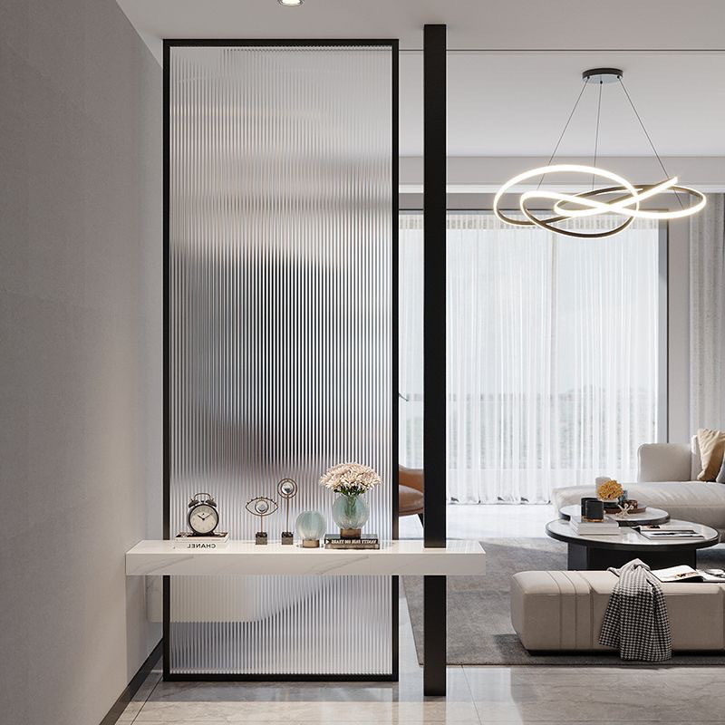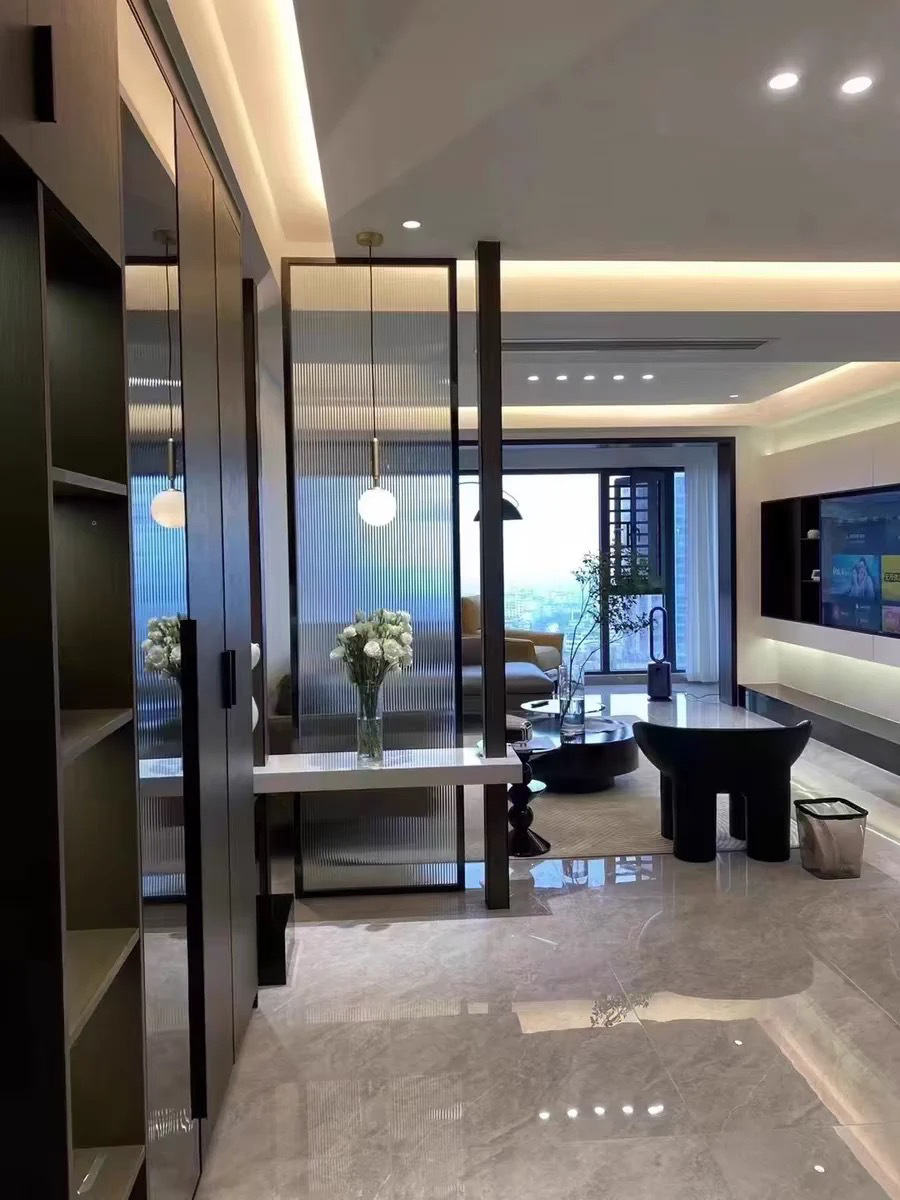 现代简约岩板不锈钢长虹玻璃铁艺玄关隔断入户正对门客厅屏风遮挡