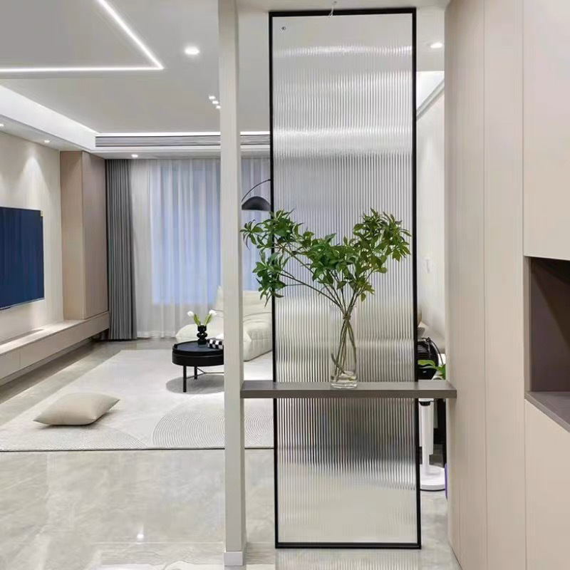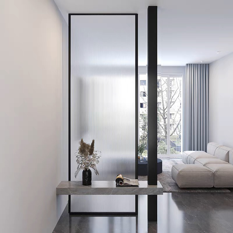 현대 미니멀리스트 암판 스테인레스 스틸 창홍 유리 철 현관 칸막이 문 거실 화면