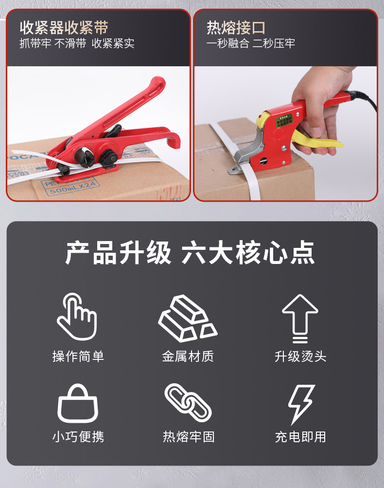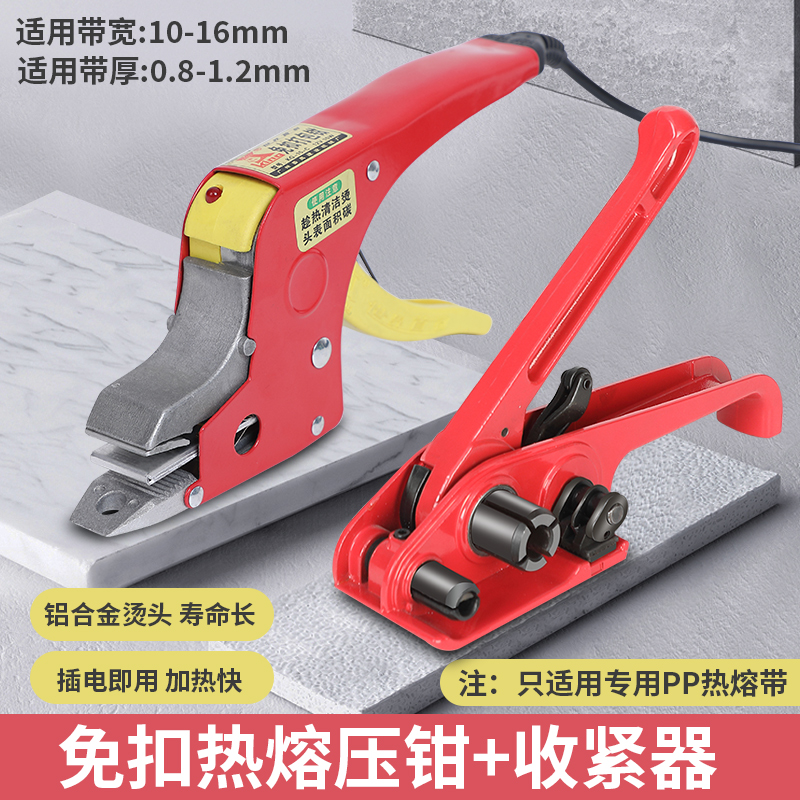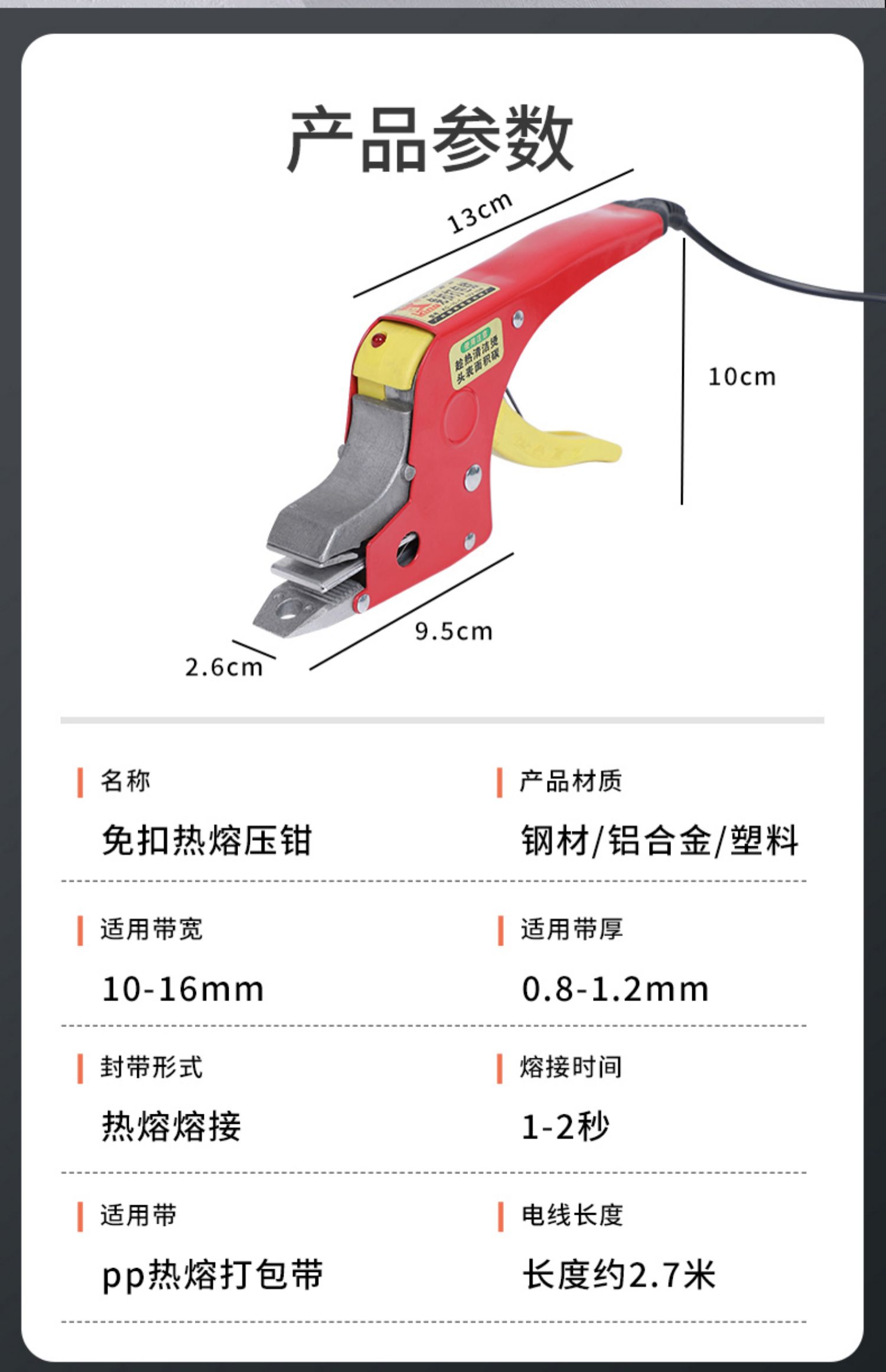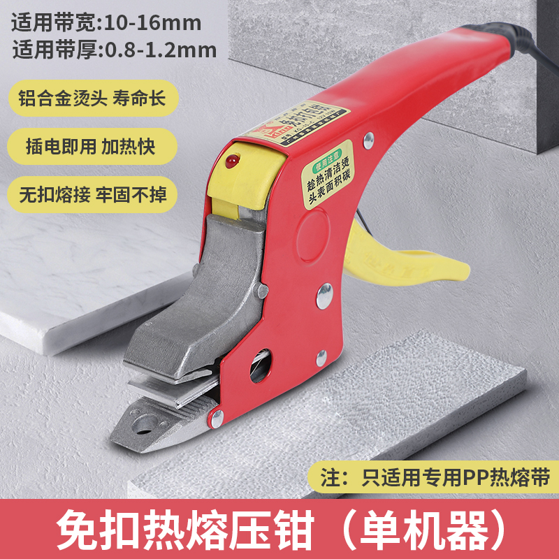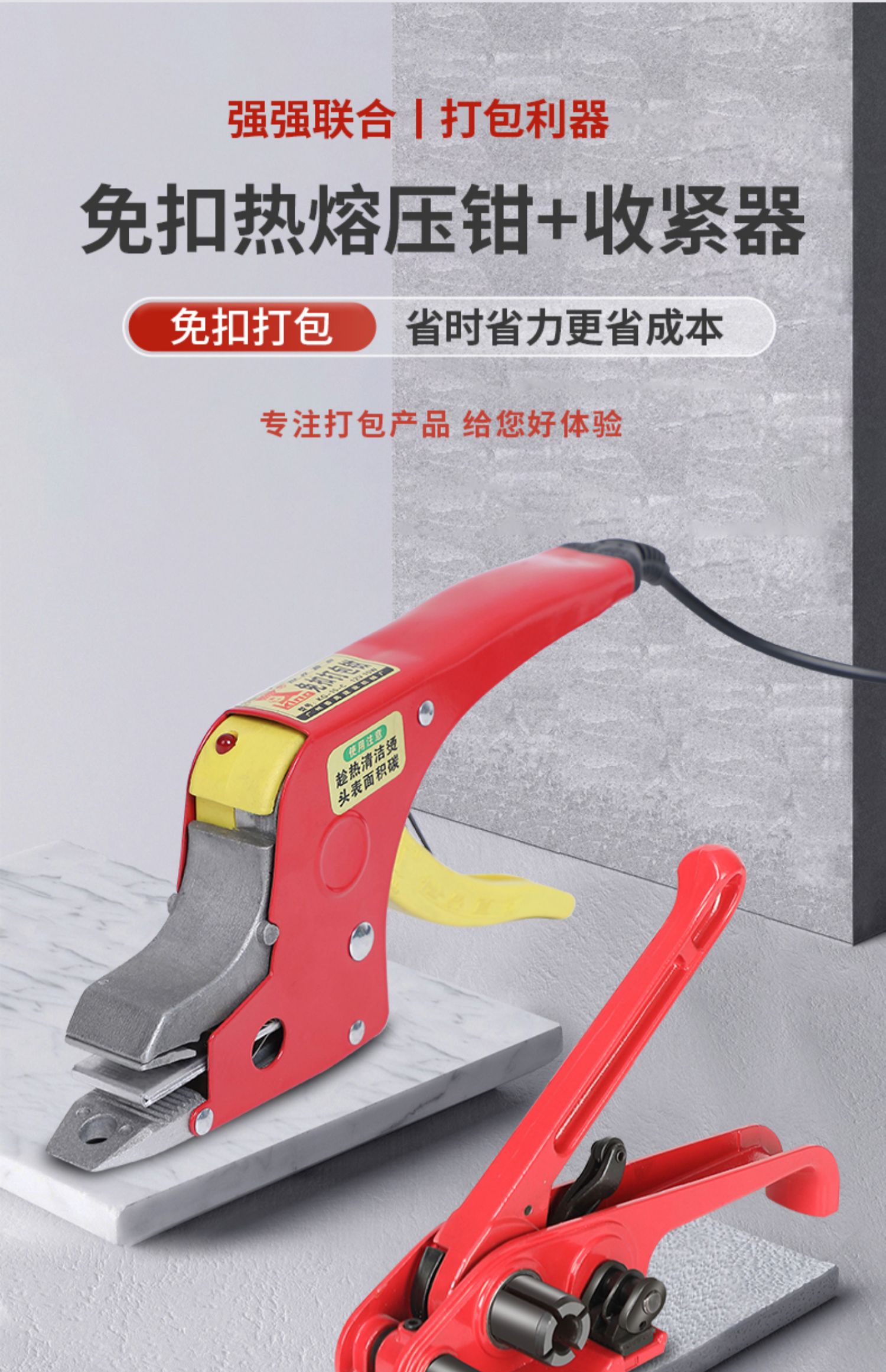 버클 프리 베일러 전기 핫멜트 집게 본딩 텐셔너 수동 핸드 헬드 스트래핑 플라스틱 PP 잠금 버클 핸드 헬드 열
