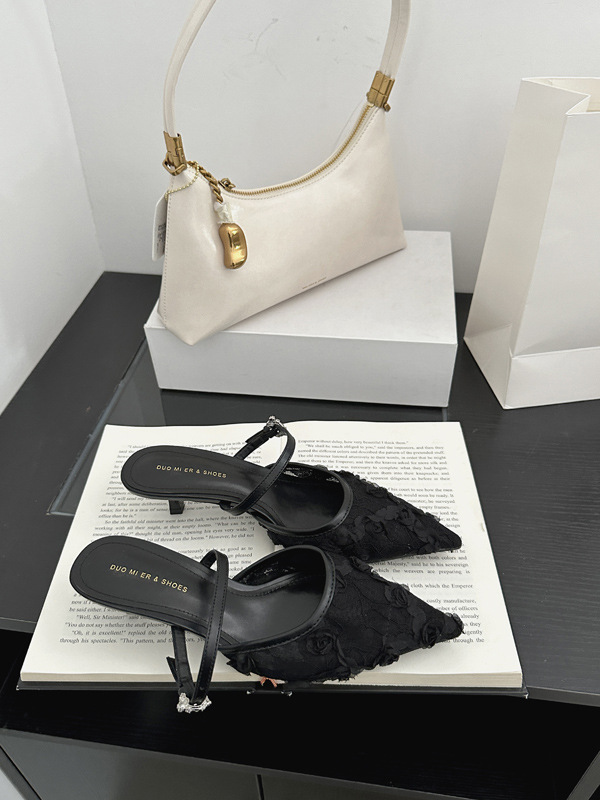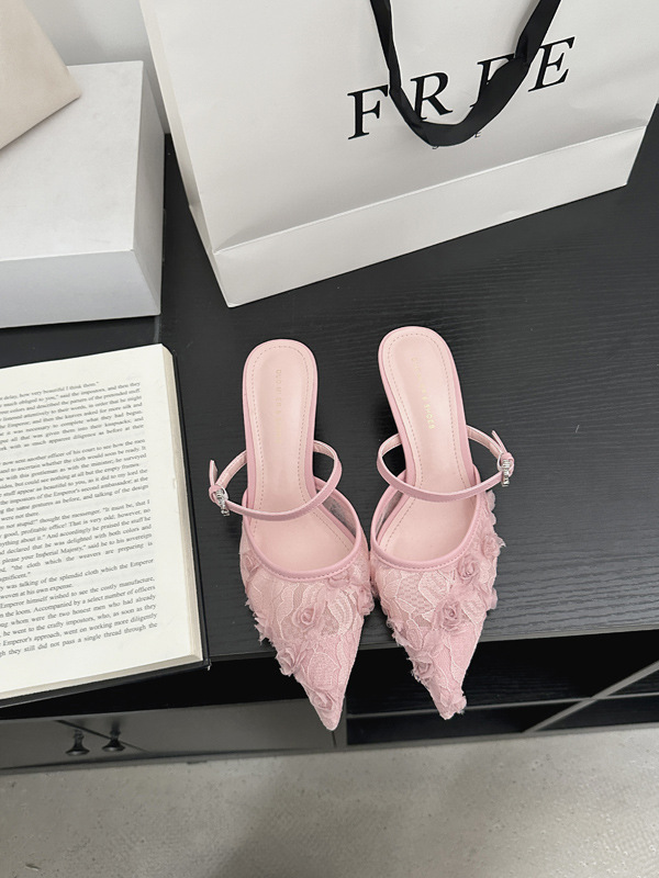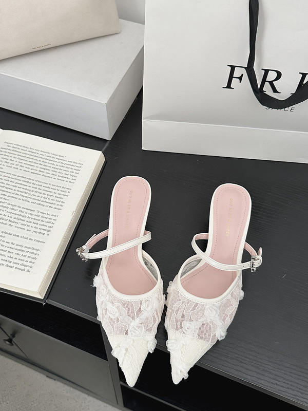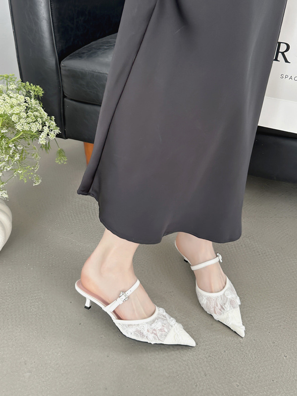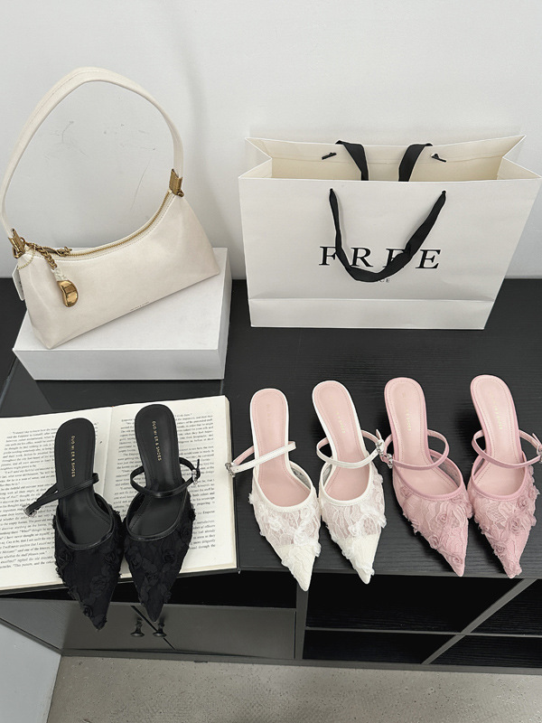 2025 봄 새 스타일 여성 레이스 통기성 포인트 바오터우 하이힐 슬리퍼스토어 가기