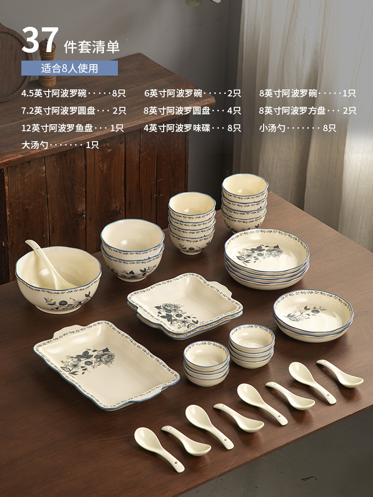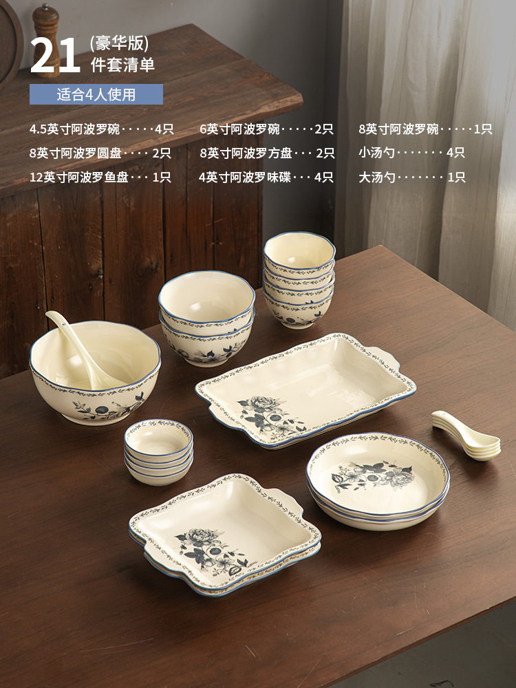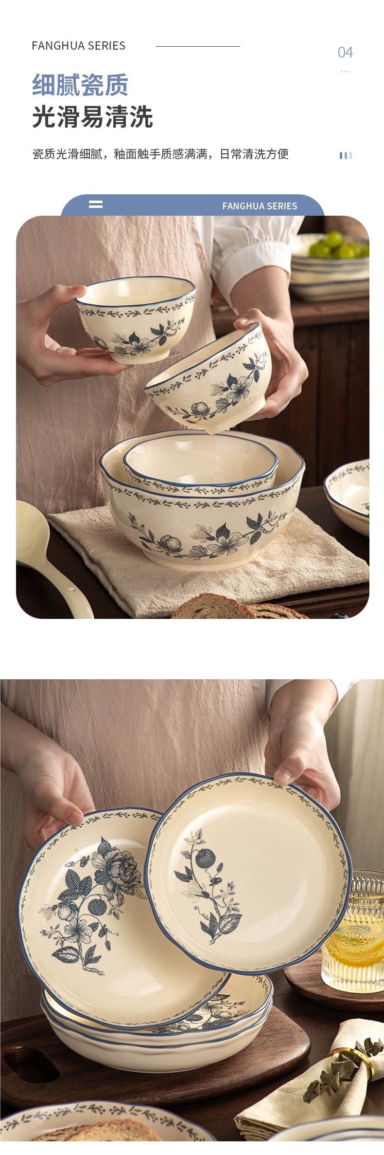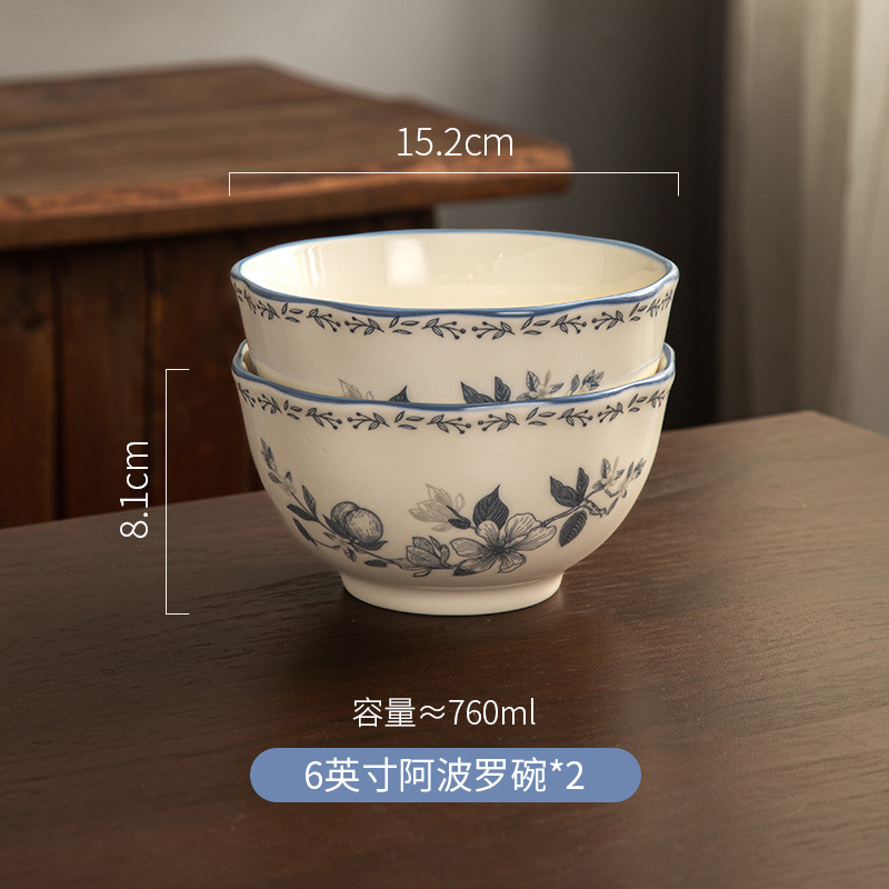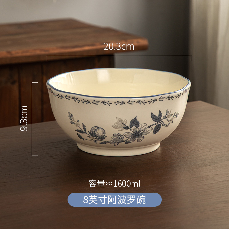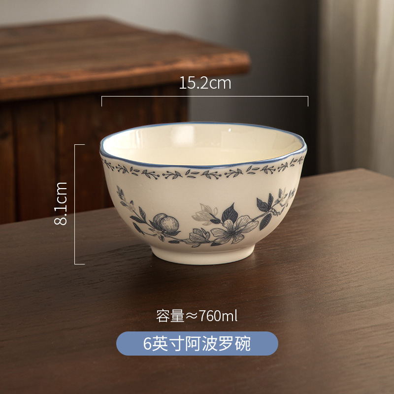 Fanghua 중국 식기 파란색과 흰색 도자기 그릇 가구 2024 새로운 세라믹 그릇 밥 그릇 수프 그릇 특별 니스 그릇
