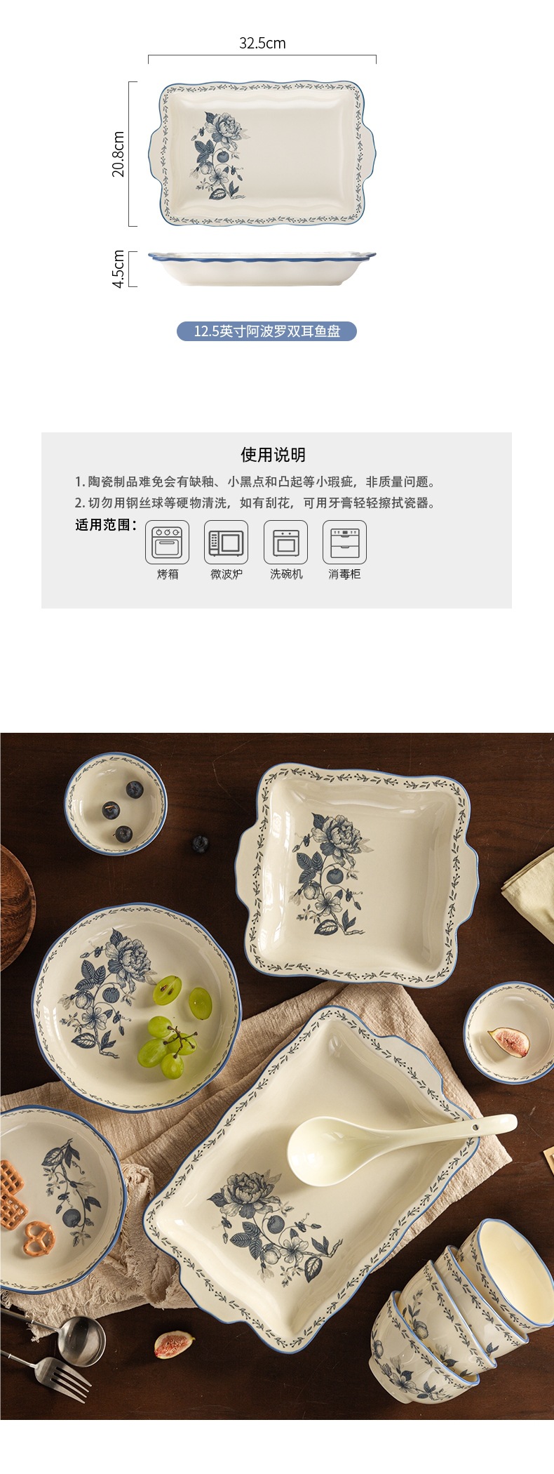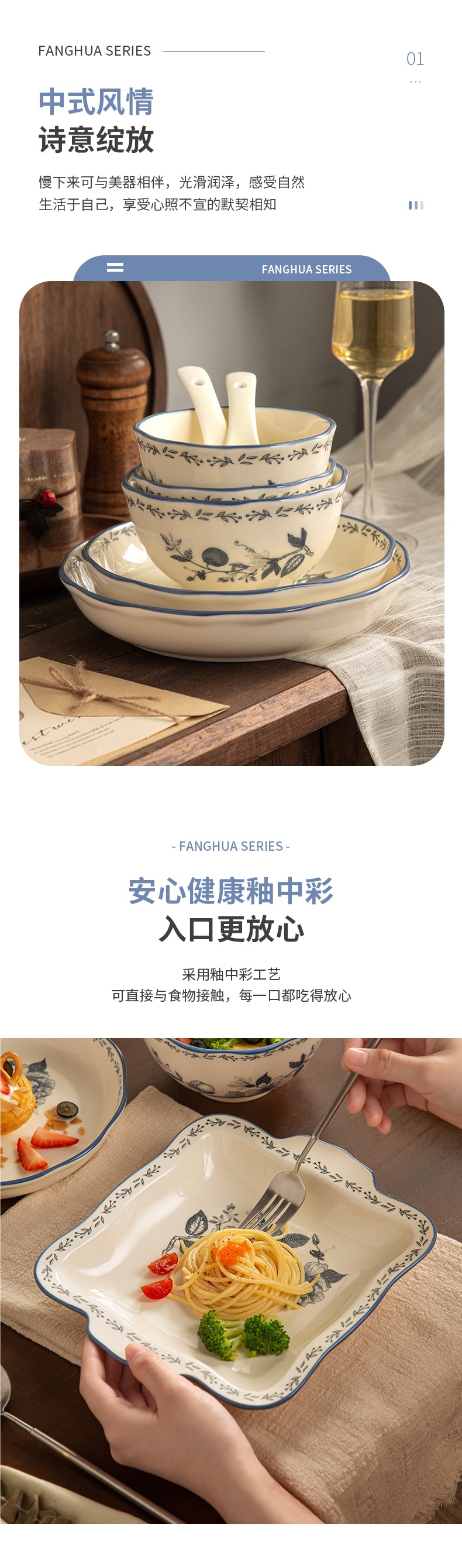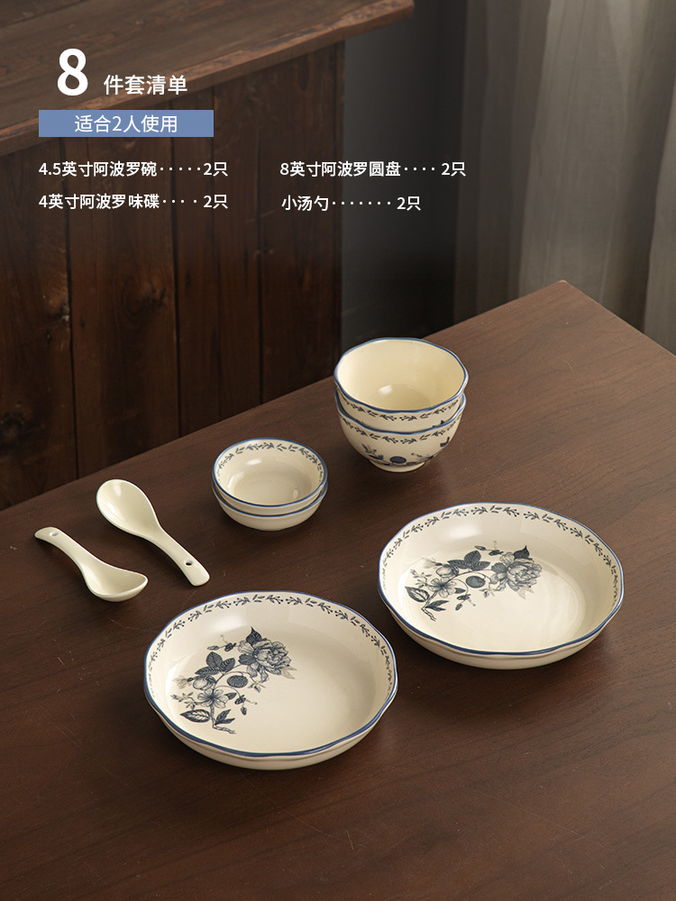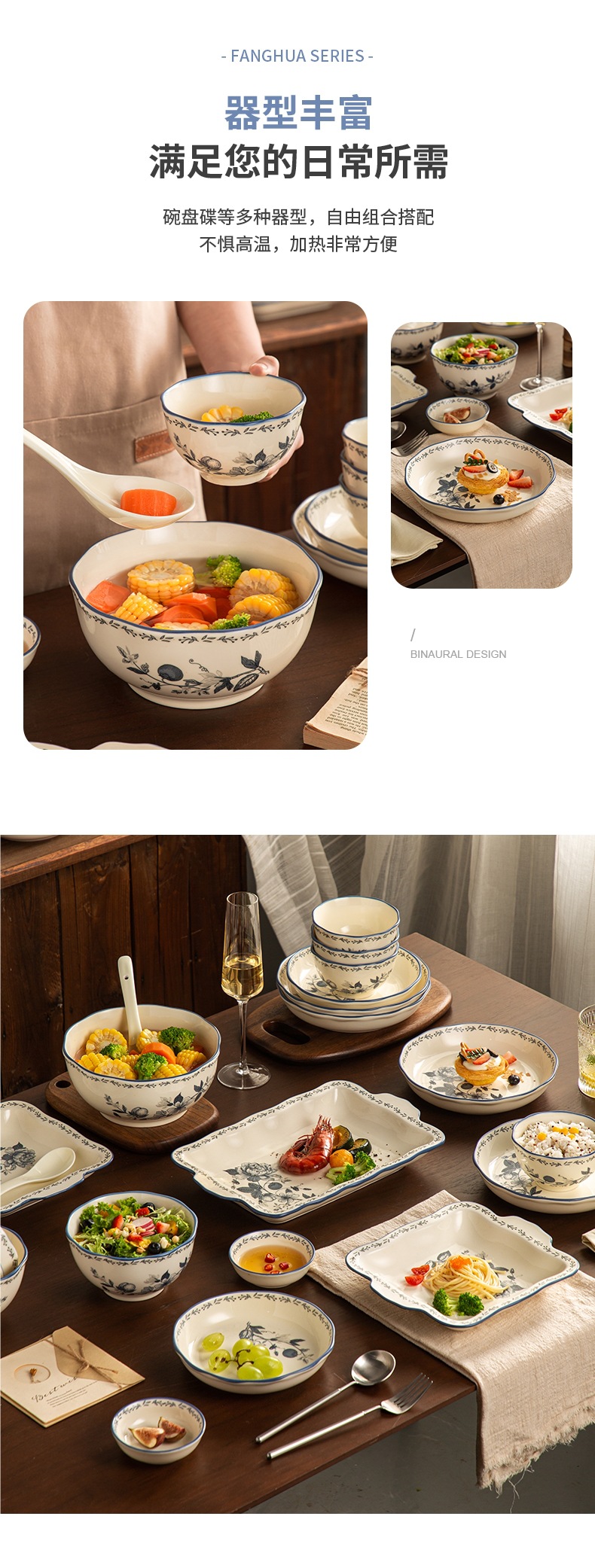 Fanghua 중국 식기 파란색과 흰색 도자기 그릇 가구 2024 새로운 세라믹 그릇 밥 그릇 수프 그릇 특별 니스 그릇