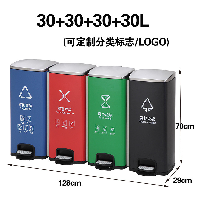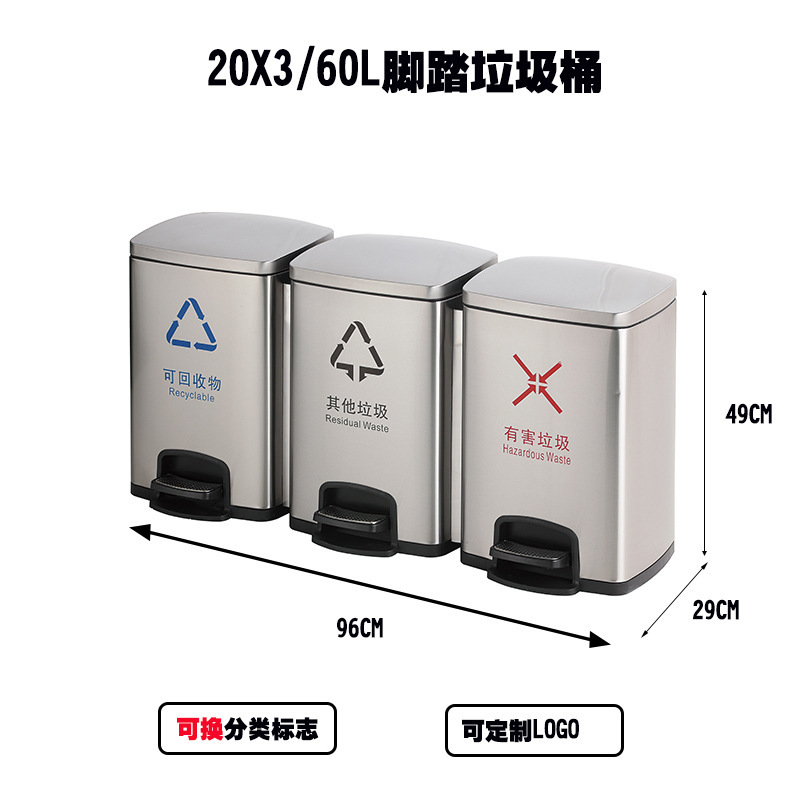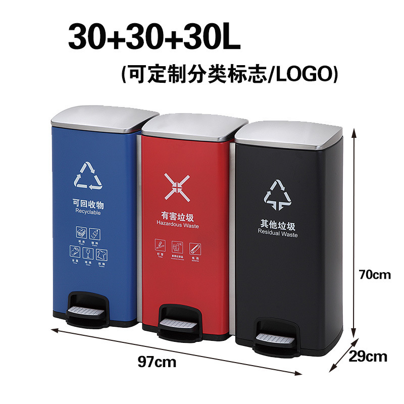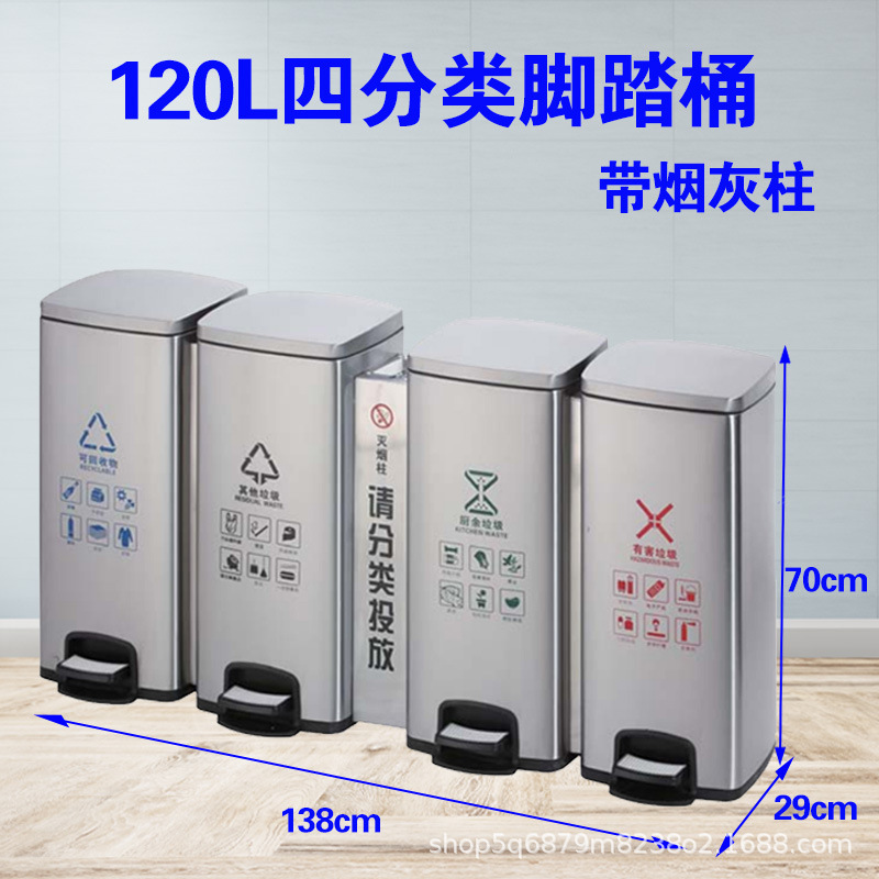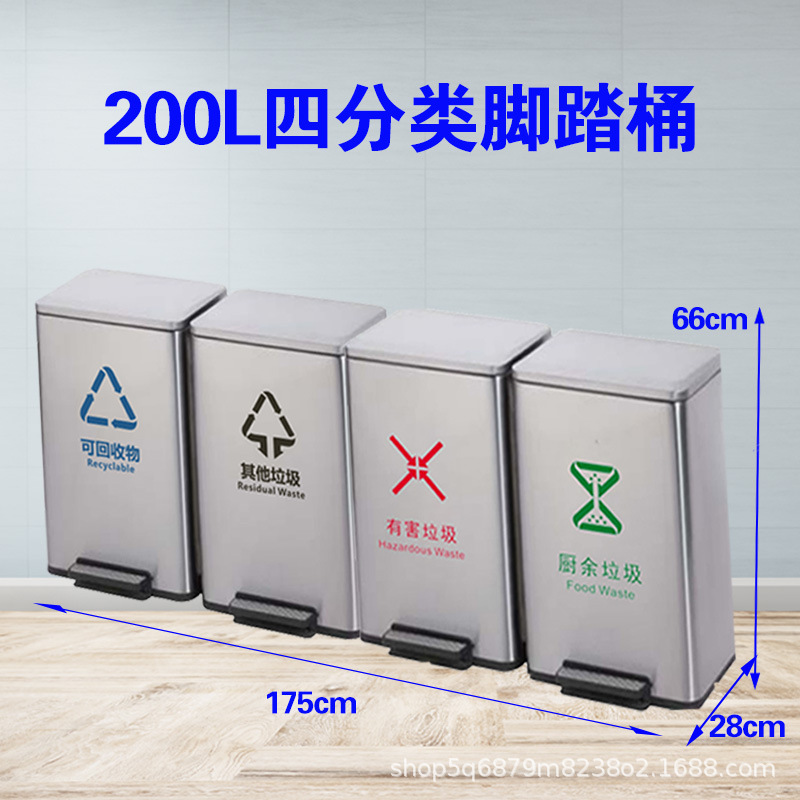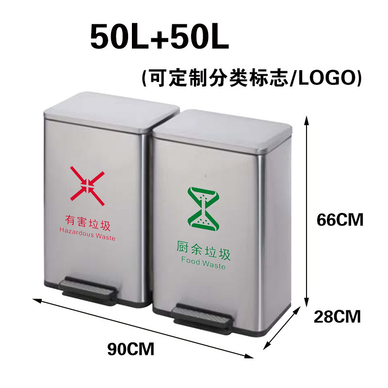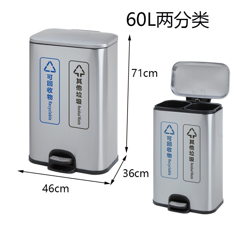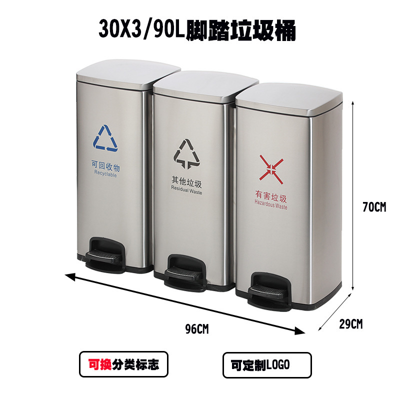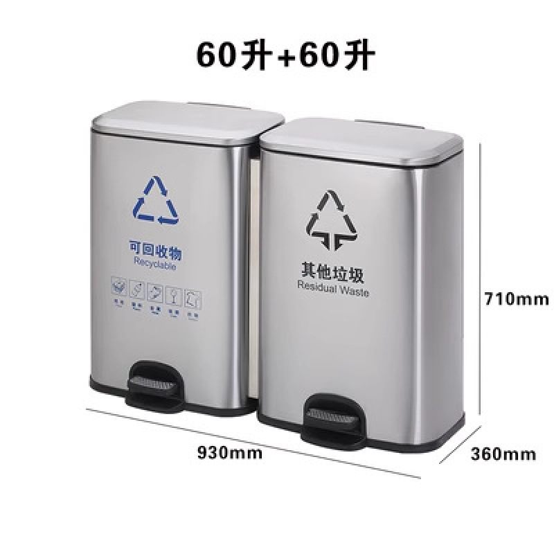 쇼핑몰 은행 병원 대형 광장 공공 행사를위한 덮개가있는 스테인레스 스틸 분류 쓰레기통 페달 타입 로비