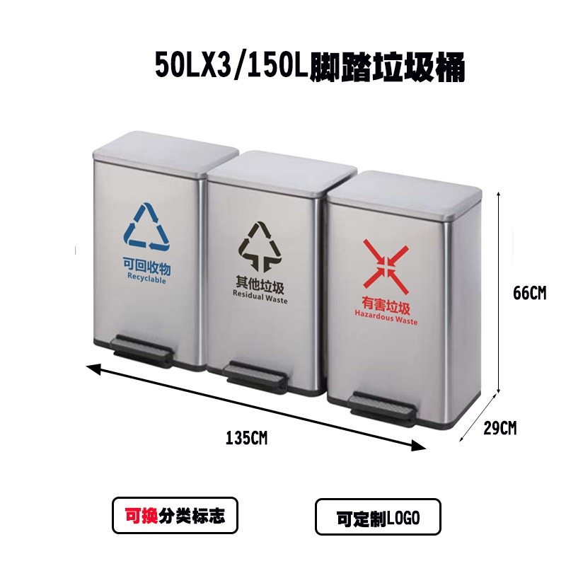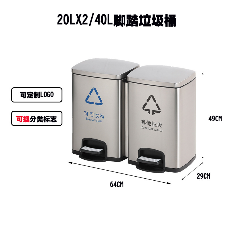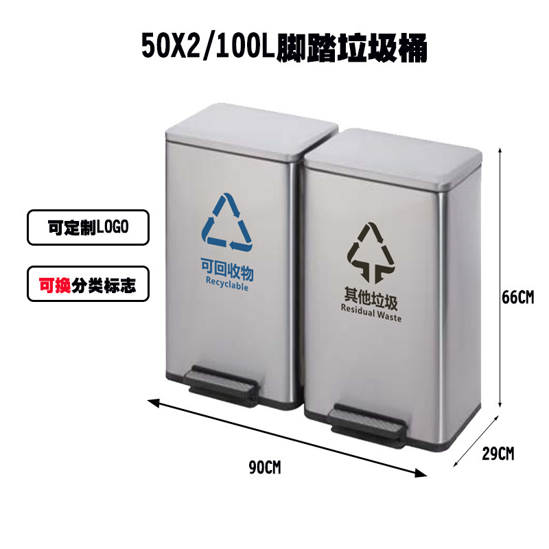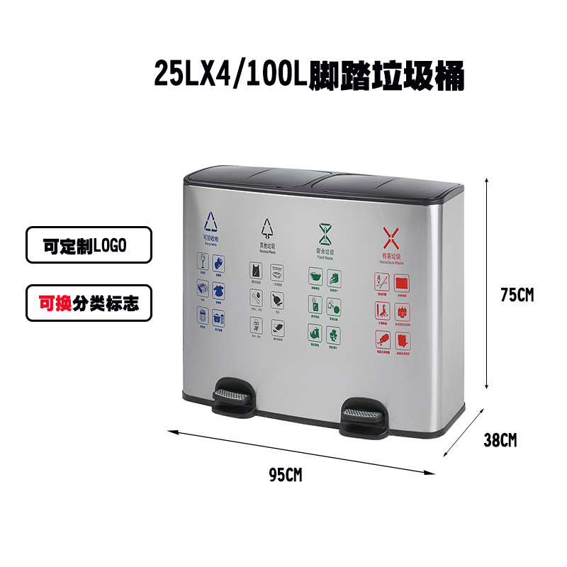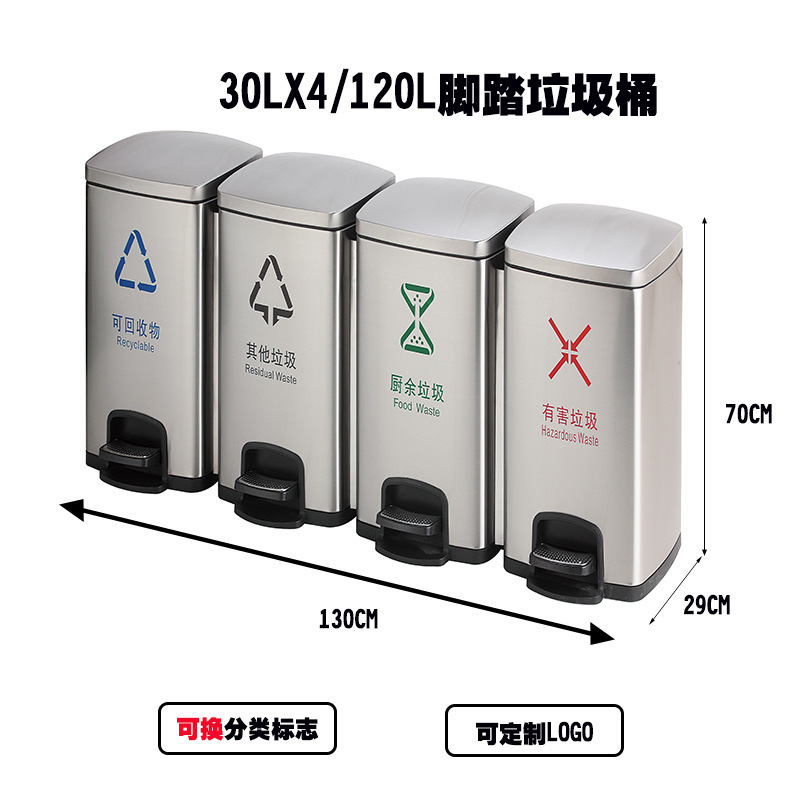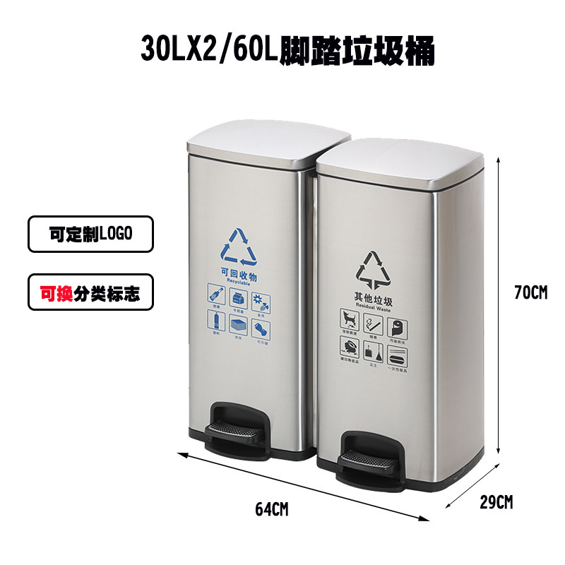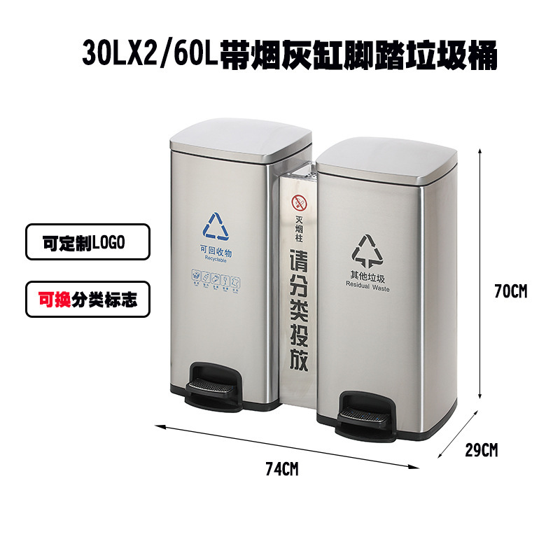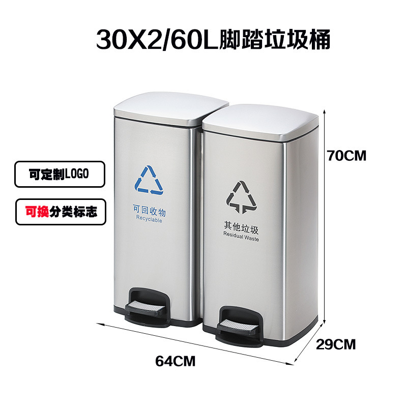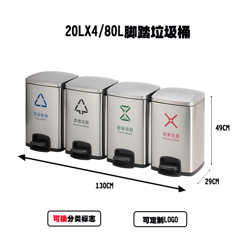 쇼핑몰 은행 병원 대형 광장 공공 행사를위한 덮개가있는 스테인레스 스틸 분류 쓰레기통 페달 타입 로비