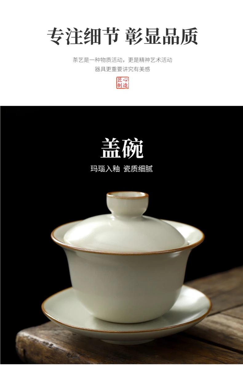 커버 그릇 Ru 가마 세라믹 쿵푸 차 세트는 베이지 색 비즈니스 회사 기업 동반자 선물을 올릴 수 있습니다 로고를 인쇄 할 수 있습니다스토어 가기