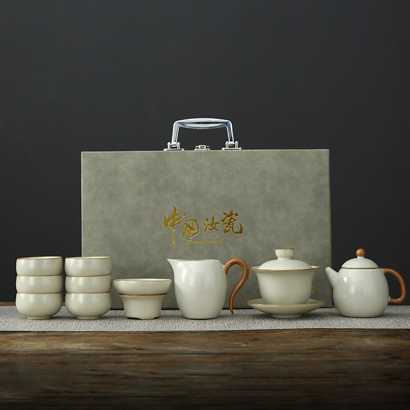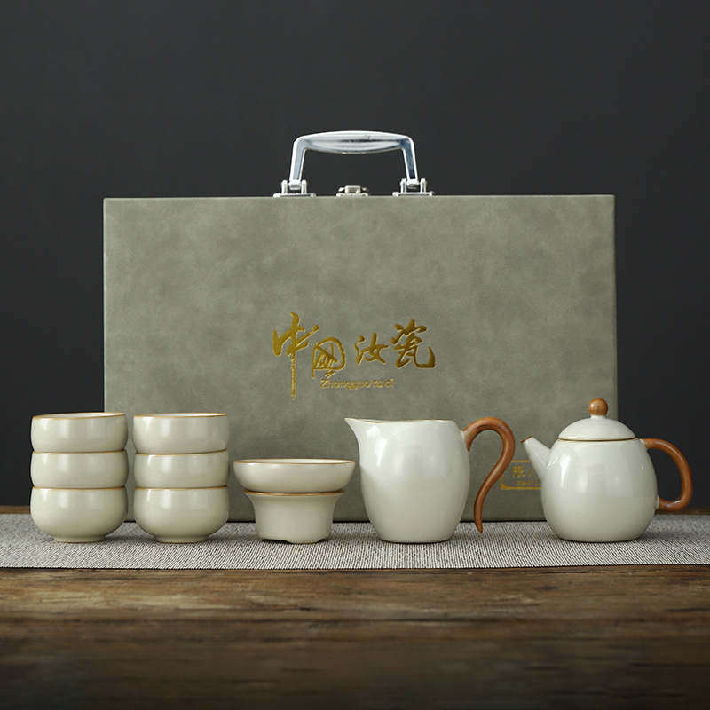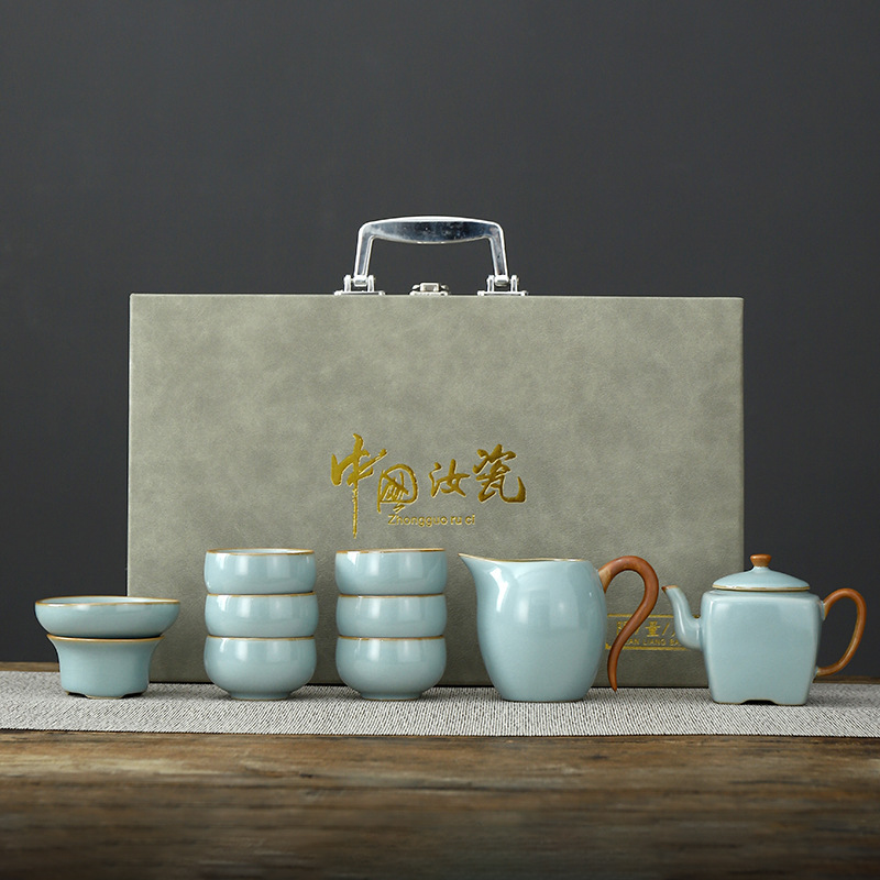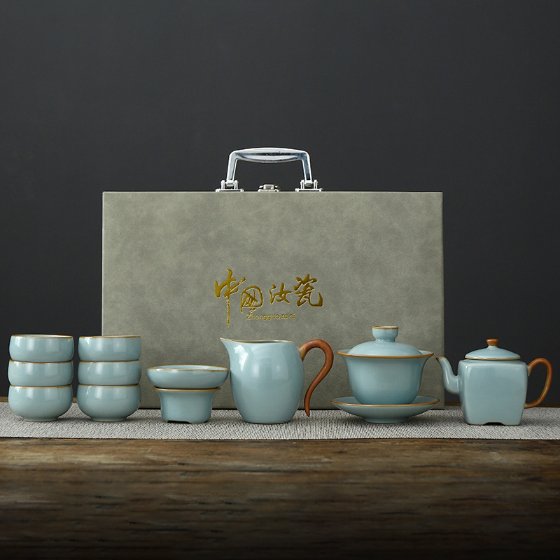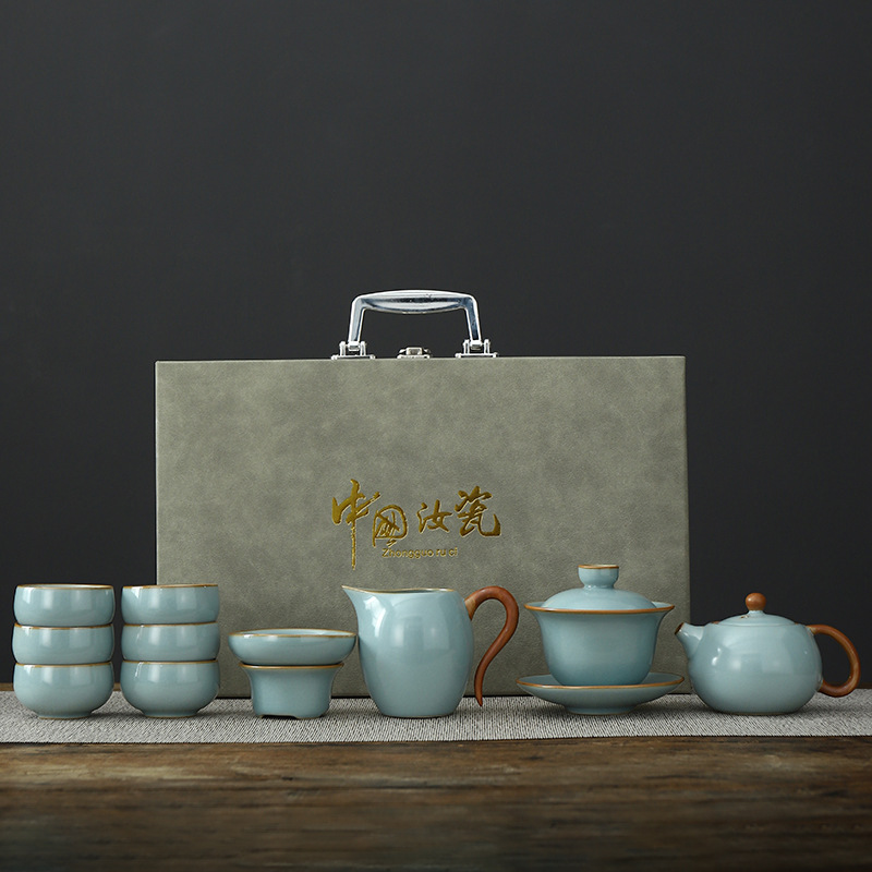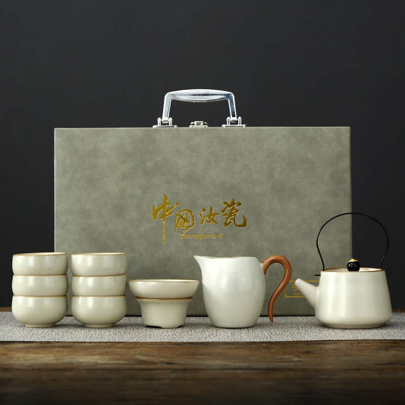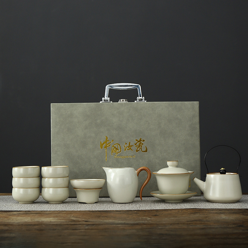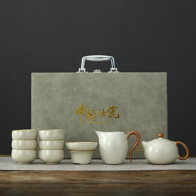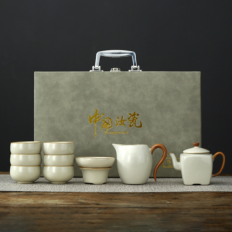 • Tianqing Ru Kiln (Xi Shi 냄비) 세트 - 회색 가죽 상자