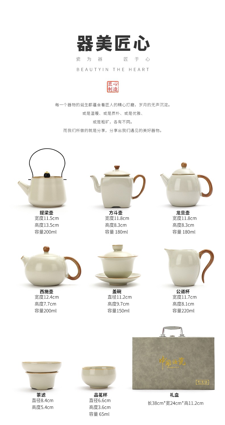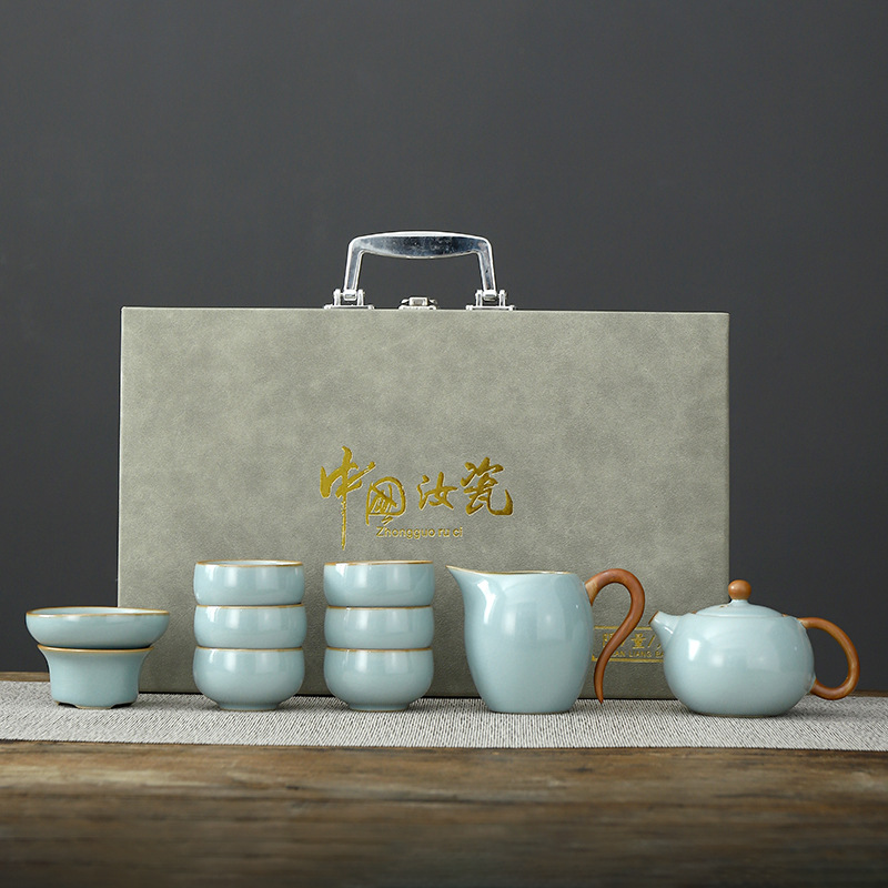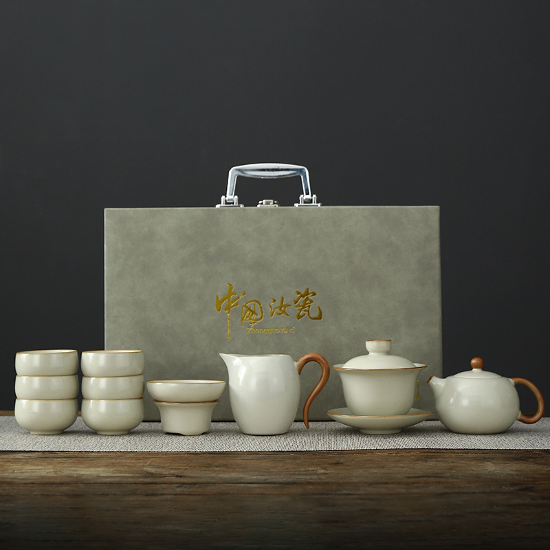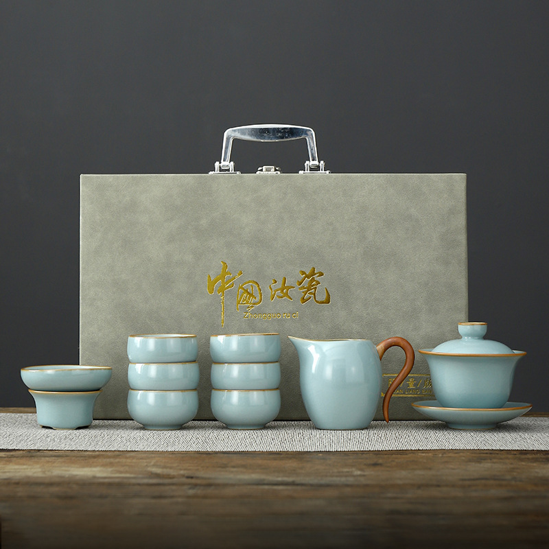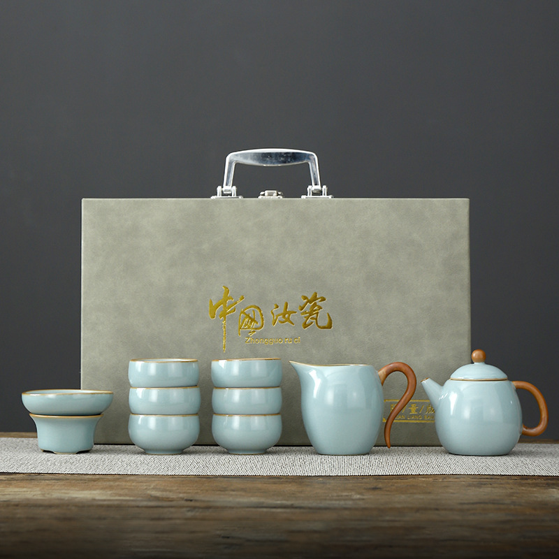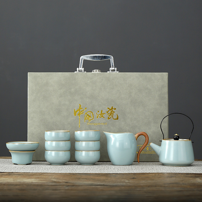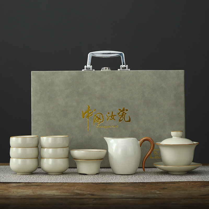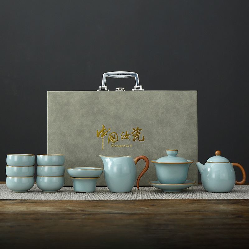 • Tianqing Ru Kiln (Xi Shi 냄비) 세트 - 회색 가죽 상자