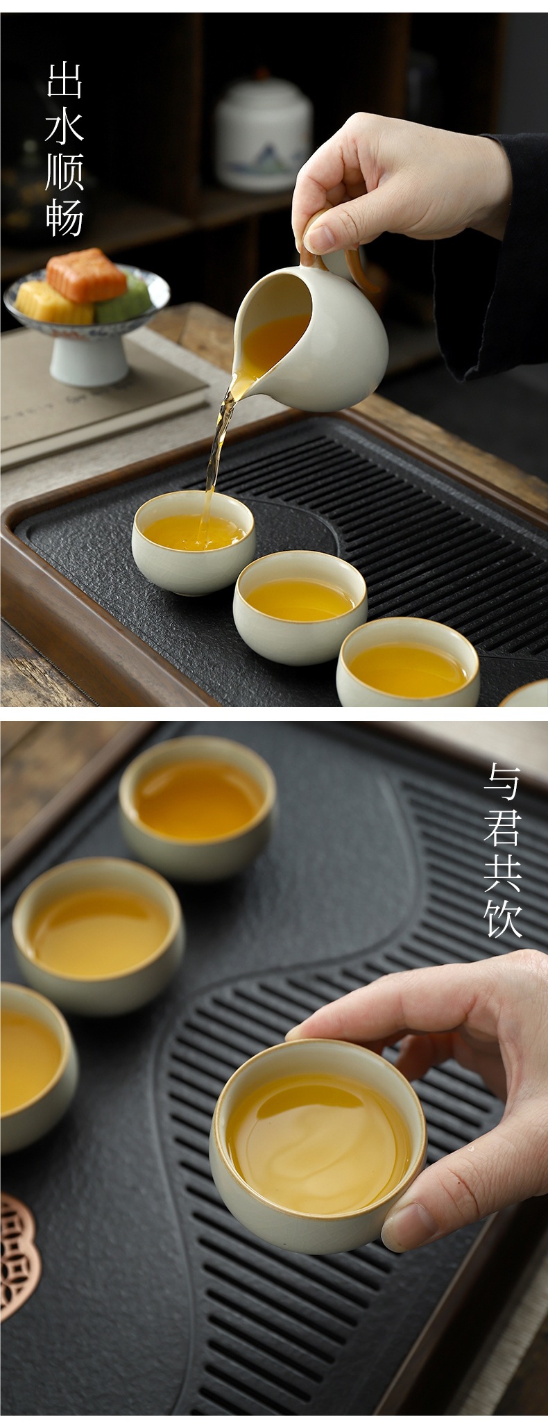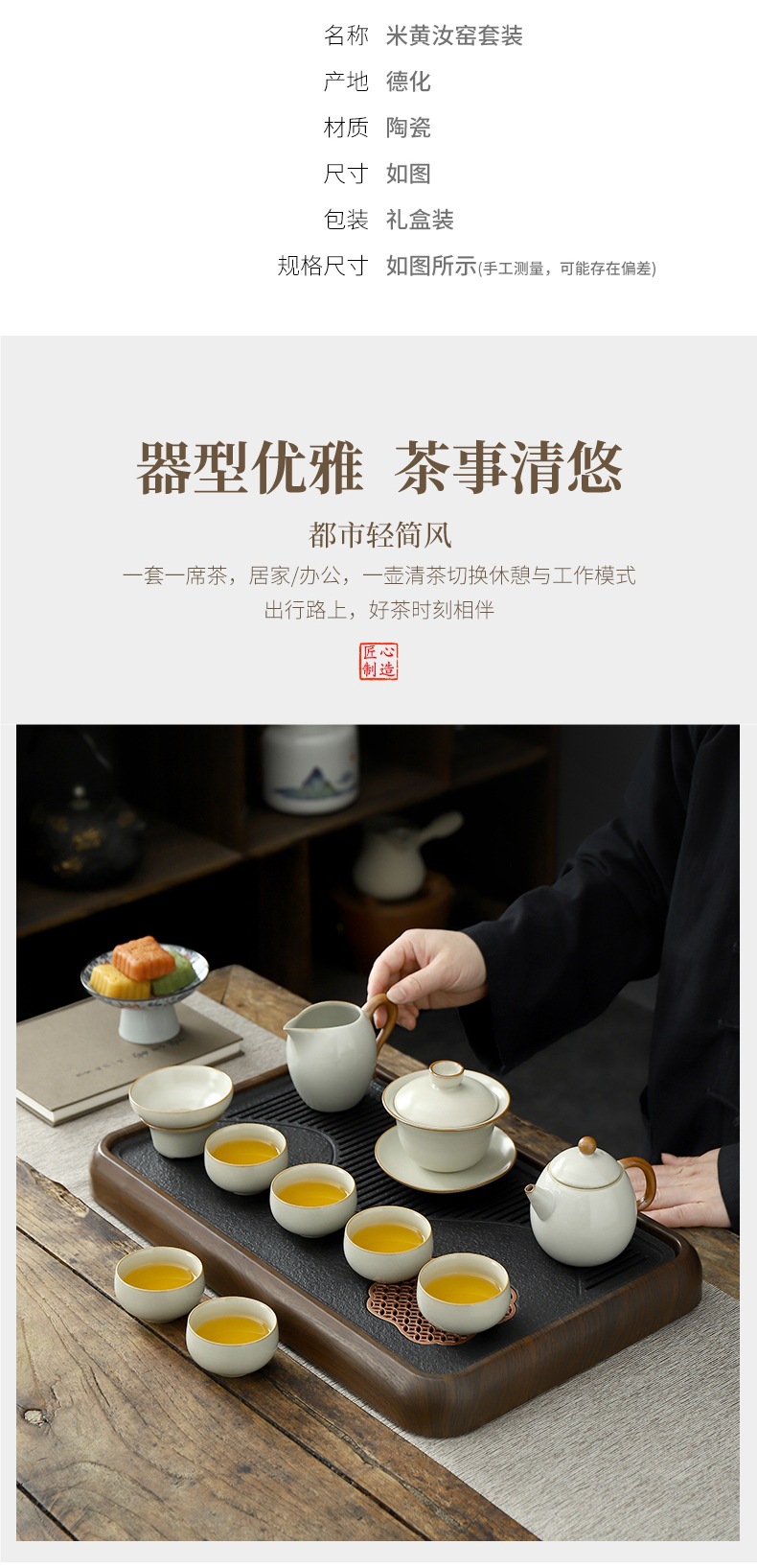 • Tianqing Ru Kiln (사각형 냄비) 세트-회색 가죽 상자