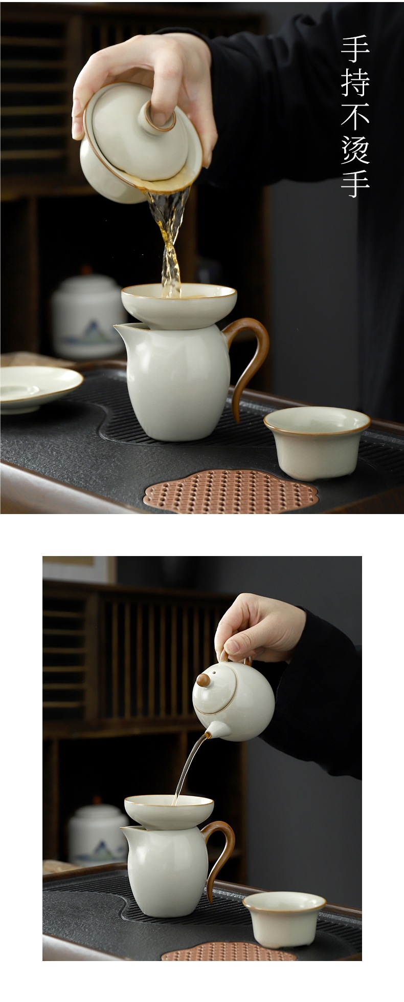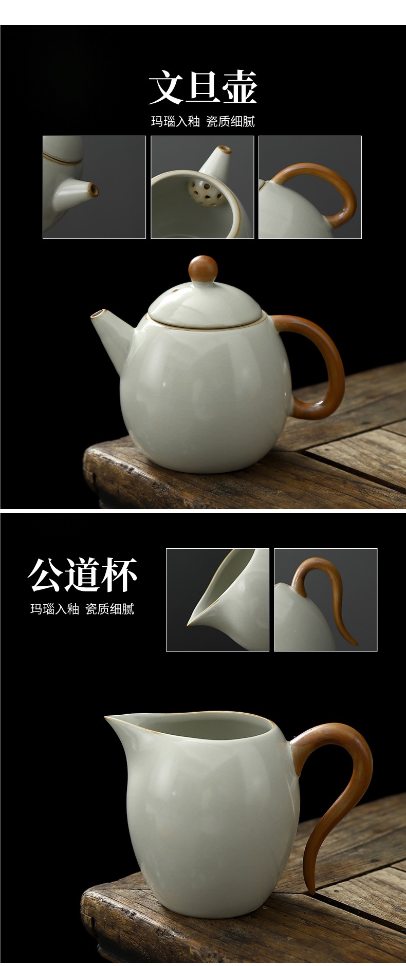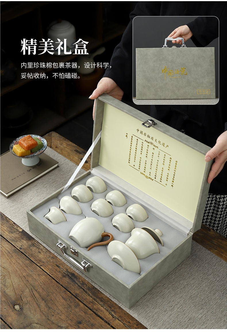 • Tianqing Ru Kiln (드래곤 에그 냄비 + 덮은 그릇) 세트-회색 가죽 상자