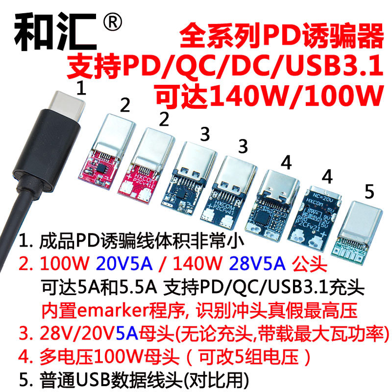 PD 전원 공급 장치 싱크 디코더 부하 신청 전압 TYPEC 플러그 커넥터 QC 프로토콜 변환기
