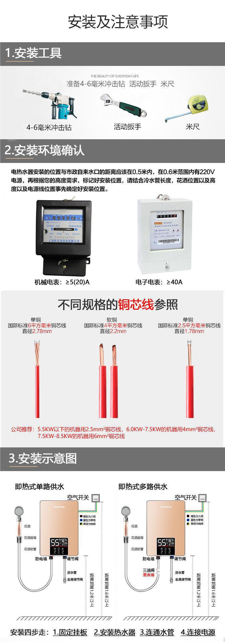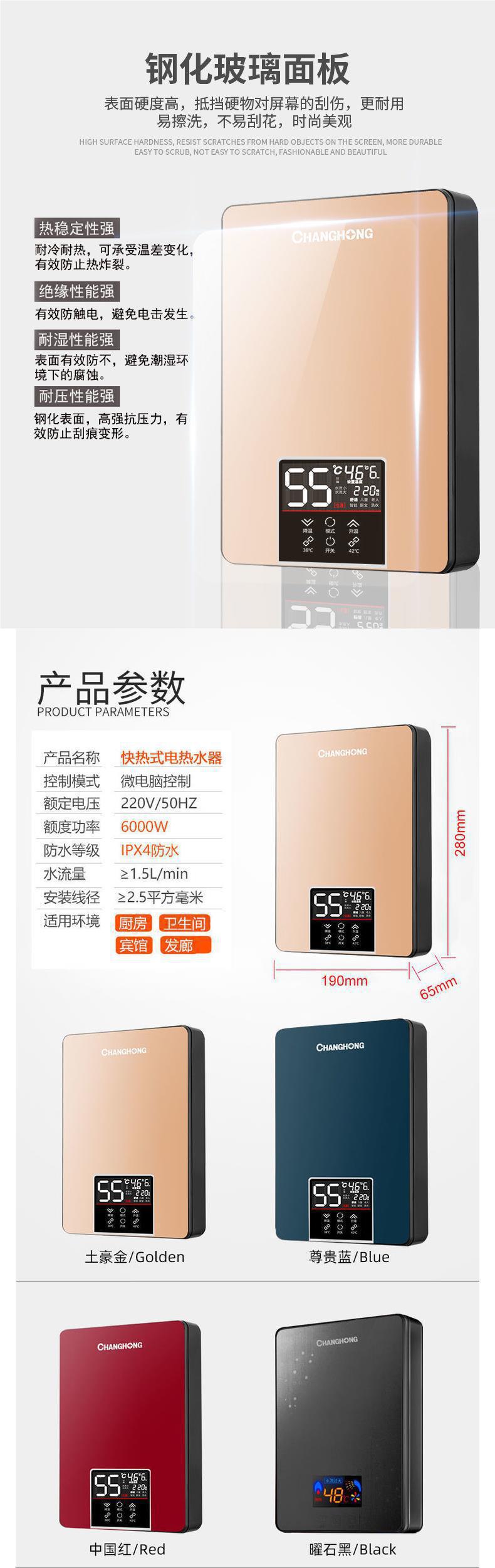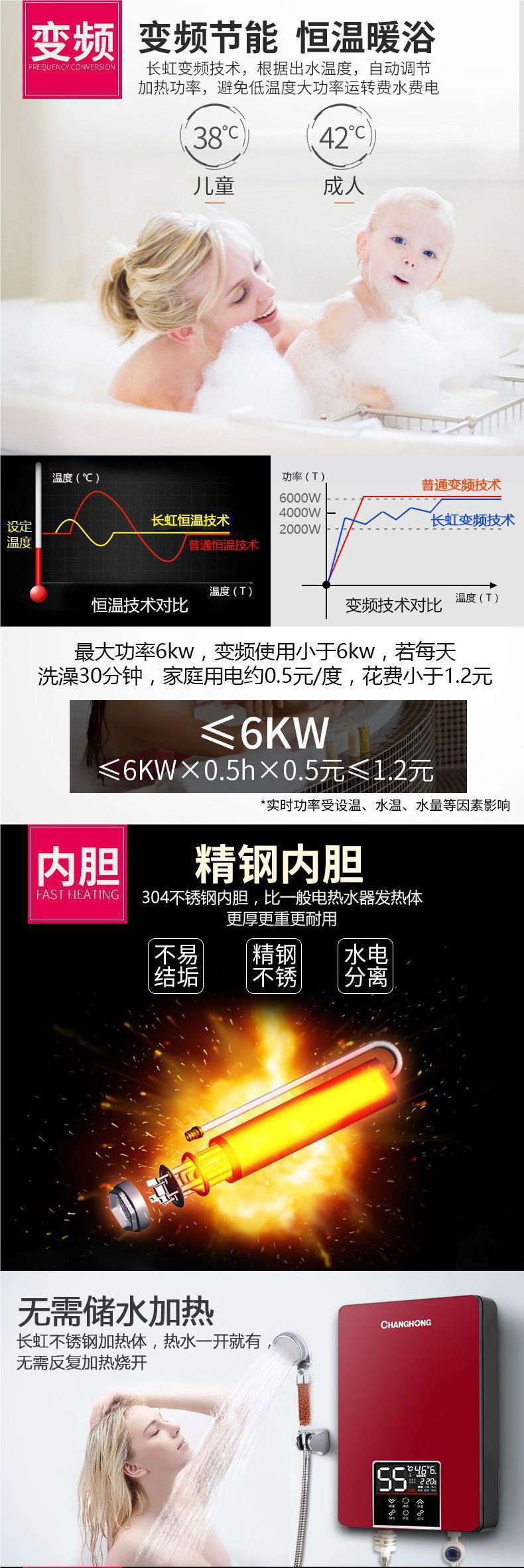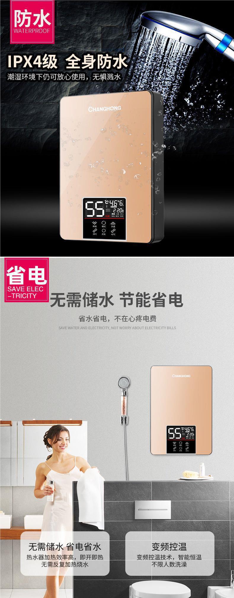 창홍 6000W 인스턴트 전기 온수기 가정용 작은 급속 난방 목욕 기계 온수기 화장실 전력 절약
