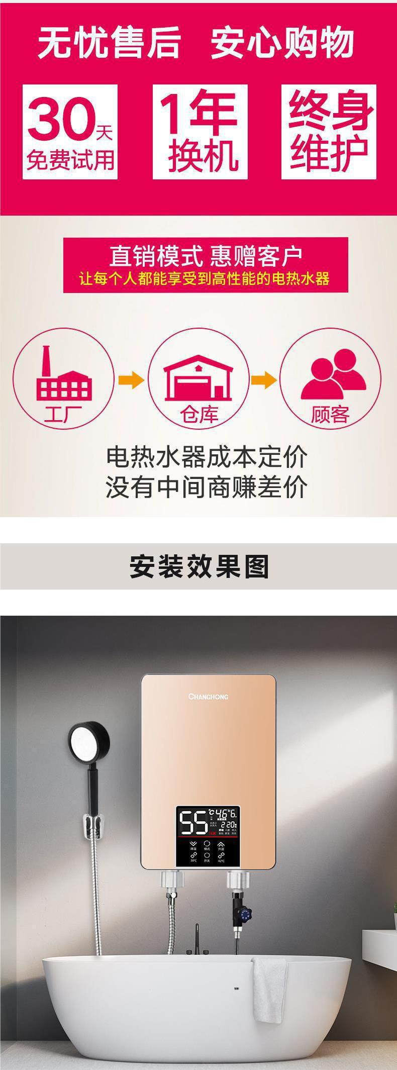 창홍 6000W 인스턴트 전기 온수기 가정용 작은 급속 난방 목욕 기계 온수기 화장실 전력 절약스토어 가기