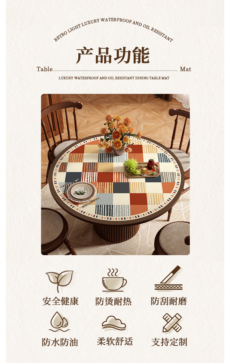 미국식 라운드 다이닝 테이블 매트 방수 및 내유가없는 테이블 매트 라이트 럭셔리 하이 엔드 레트로 작은 커피 테이블 매트 매트 라운드 테이블 테이블 매트