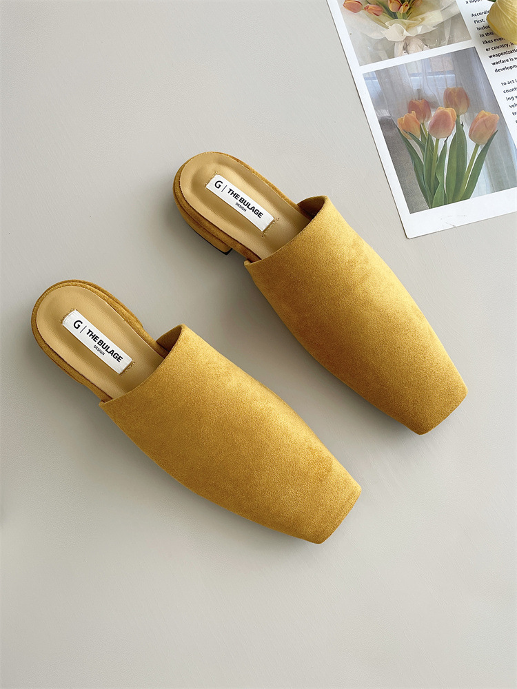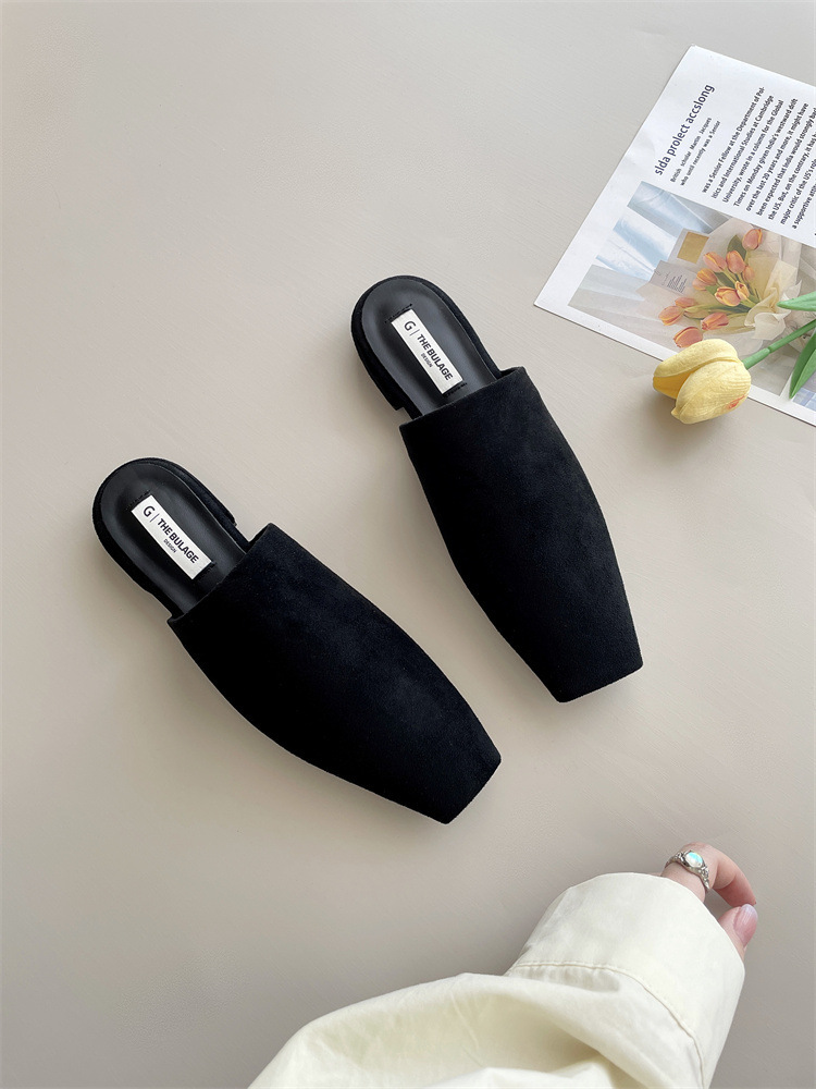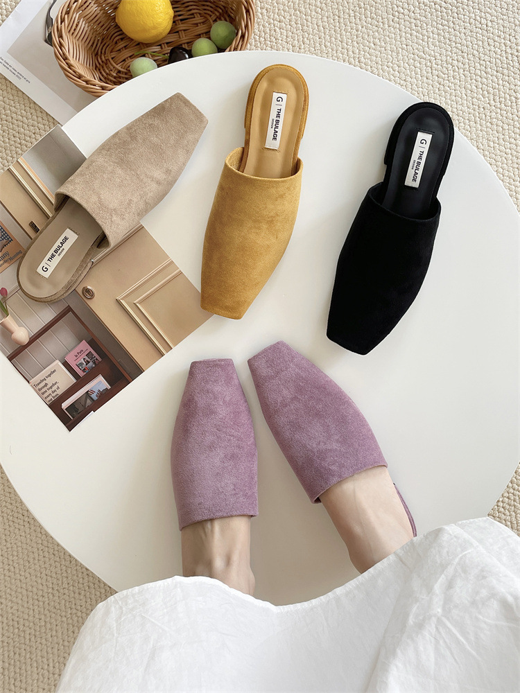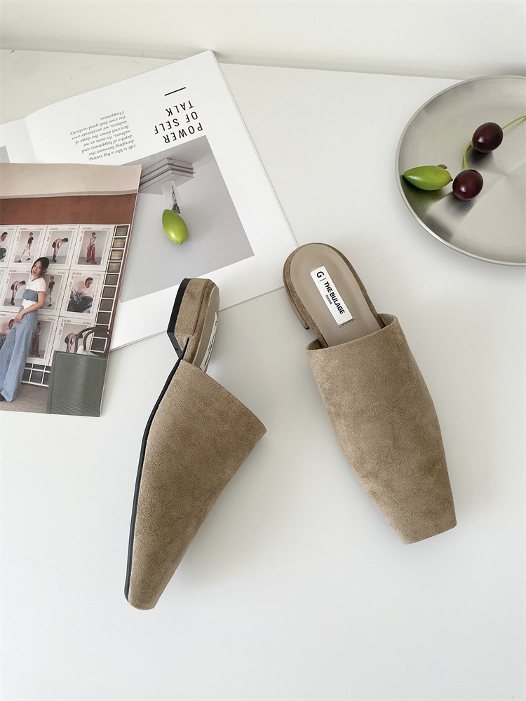 2025 프랑스 스타일 레트로 유행 간단한 올 매치 늦은 저녁 스타일 스웨이드 토 슬립-게으른 플랫 뮬러 신발스토어 가기