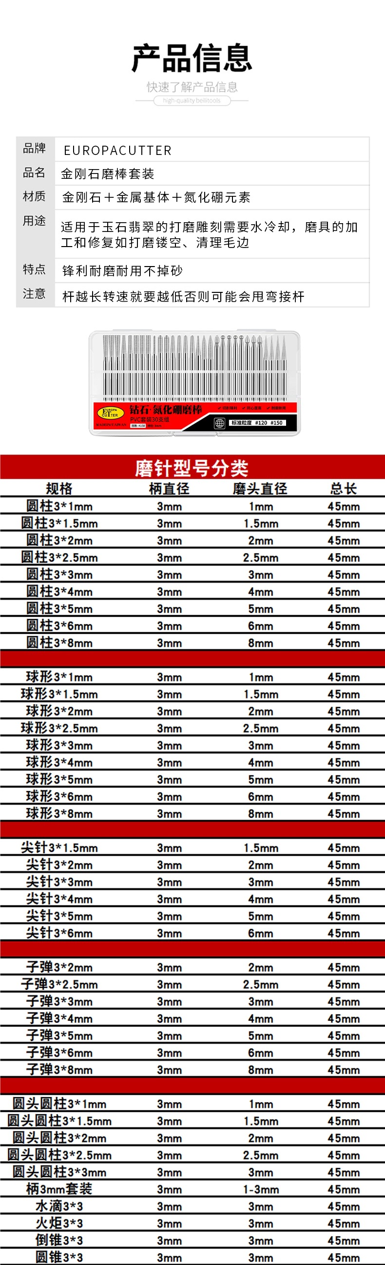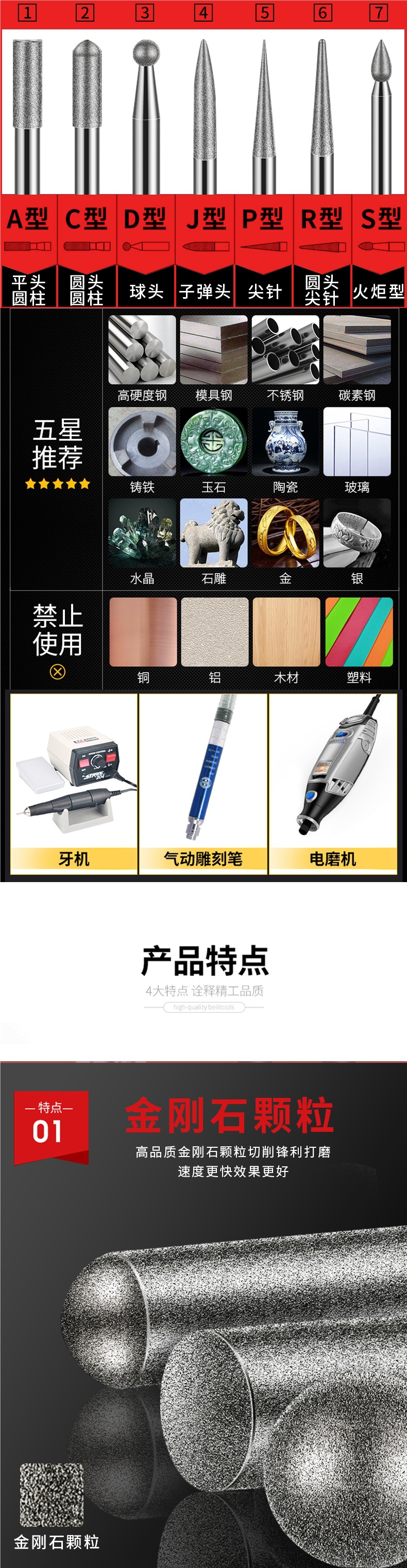 다이아몬드 연삭 헤드 원통형 콘 도구 전기 연삭 구형 총알 연삭 헤드 세트 합금 그라인딩 헤드 조각 옥
