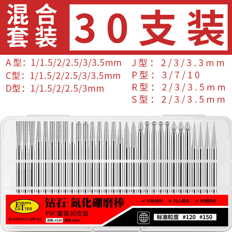 다이아몬드 연삭 헤드 원통형 콘 도구 전기 연삭 구형 총알 연삭 헤드 세트 합금 그라인딩 헤드 조각 옥스토어 가기