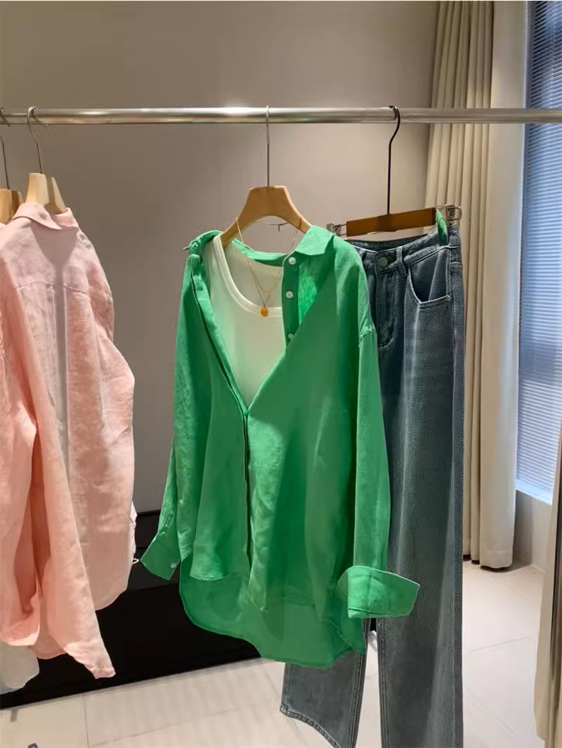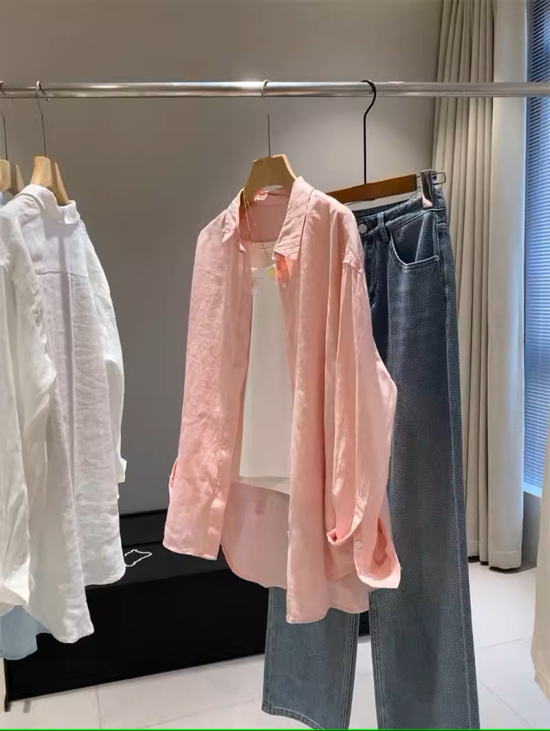 Xiao Hemu Giant 같은 스타일 2996! 100 린넨 느슨한 통기성 편안한 실루엣 캐주얼 셔츠 여성 봄 여름 새 스타일스토어 가기