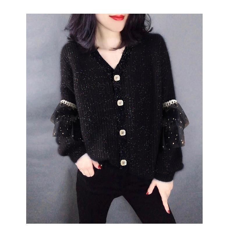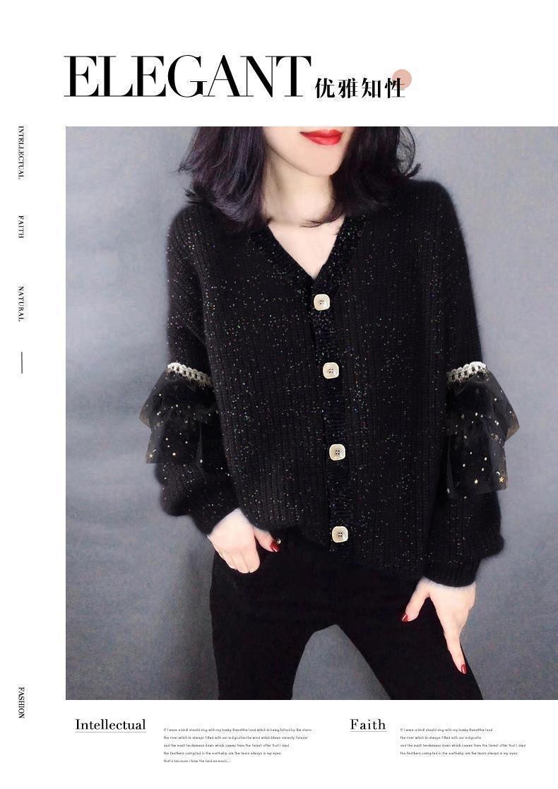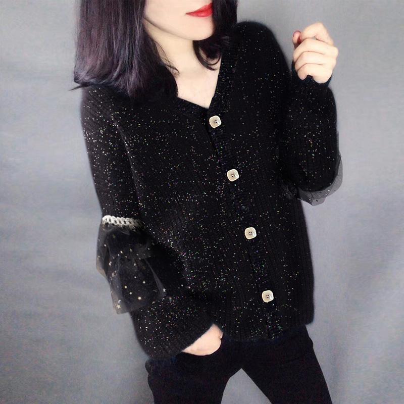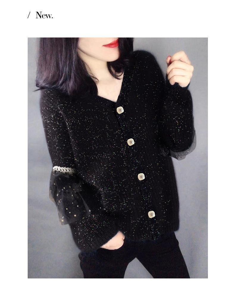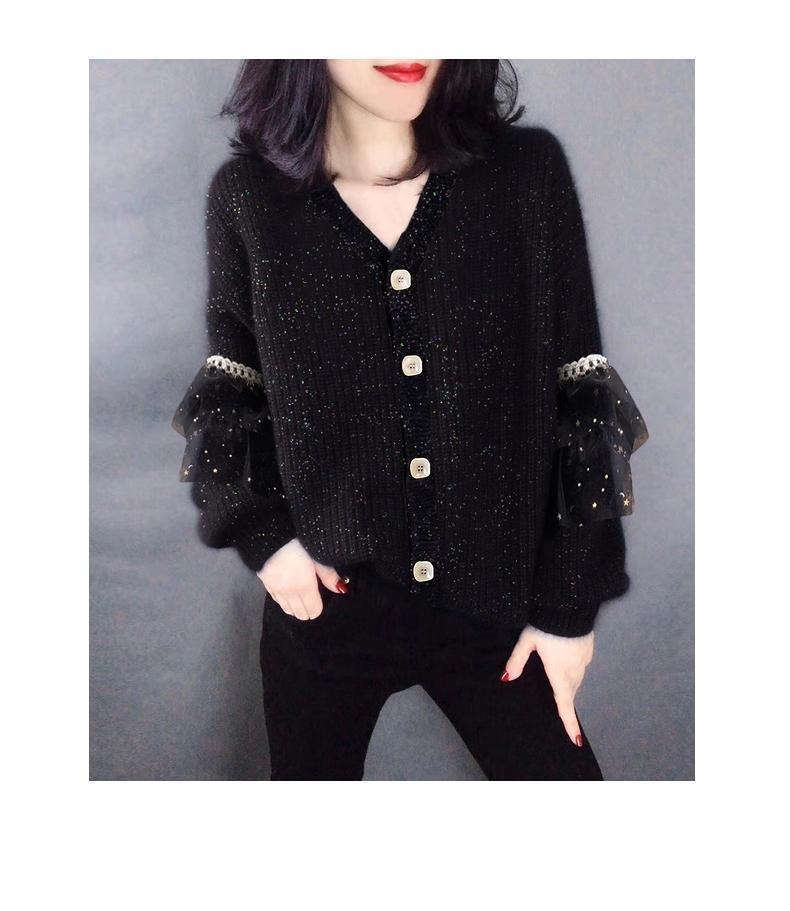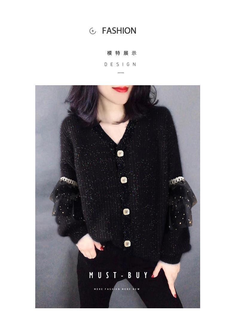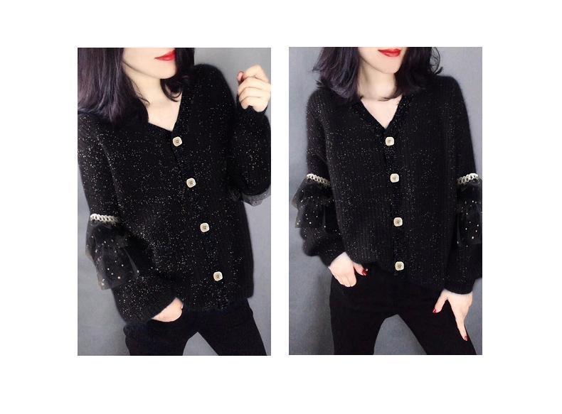 패션 우아한 블랙 메쉬 카디건 코트 니트 스웨터 샤넬 스타일 여성의 가을과 겨울 2024 새로운 복장스토어 가기