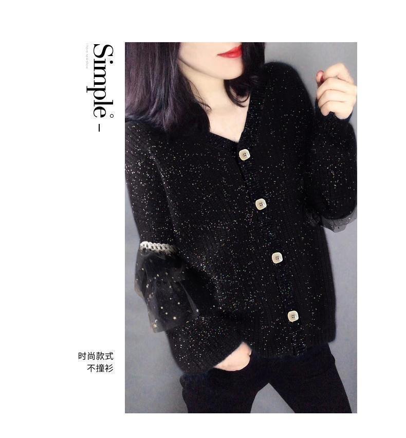 패션 우아한 블랙 메쉬 카디건 코트 니트 스웨터 샤넬 스타일 여성의 가을과 겨울 2024 새로운 복장