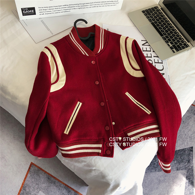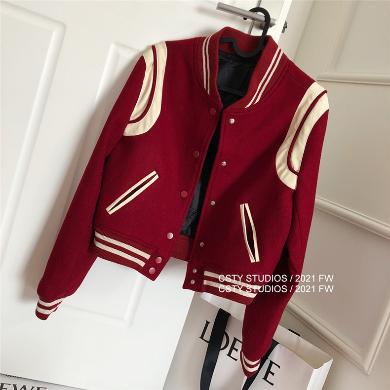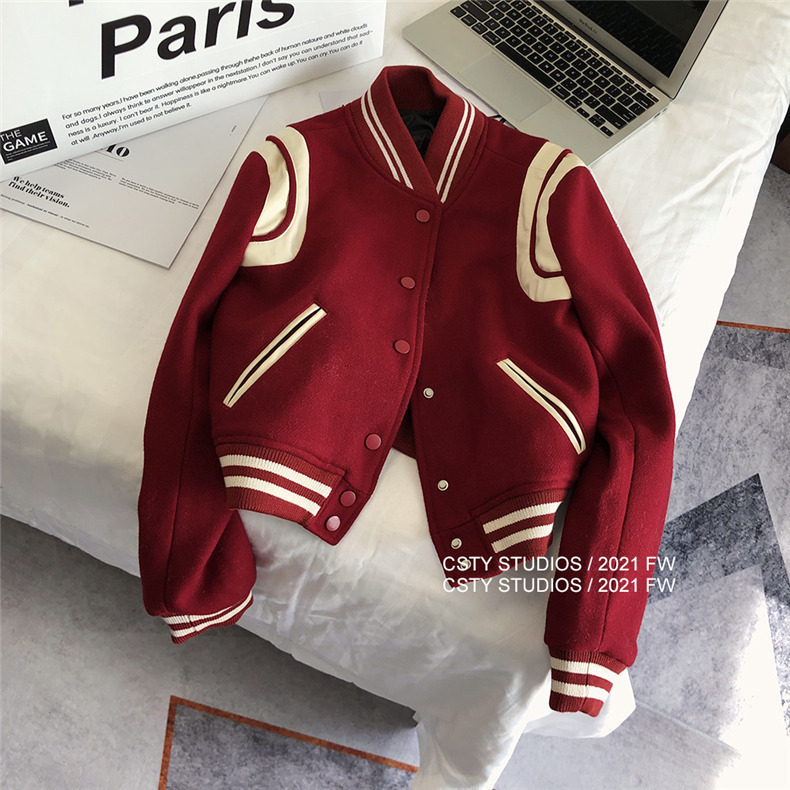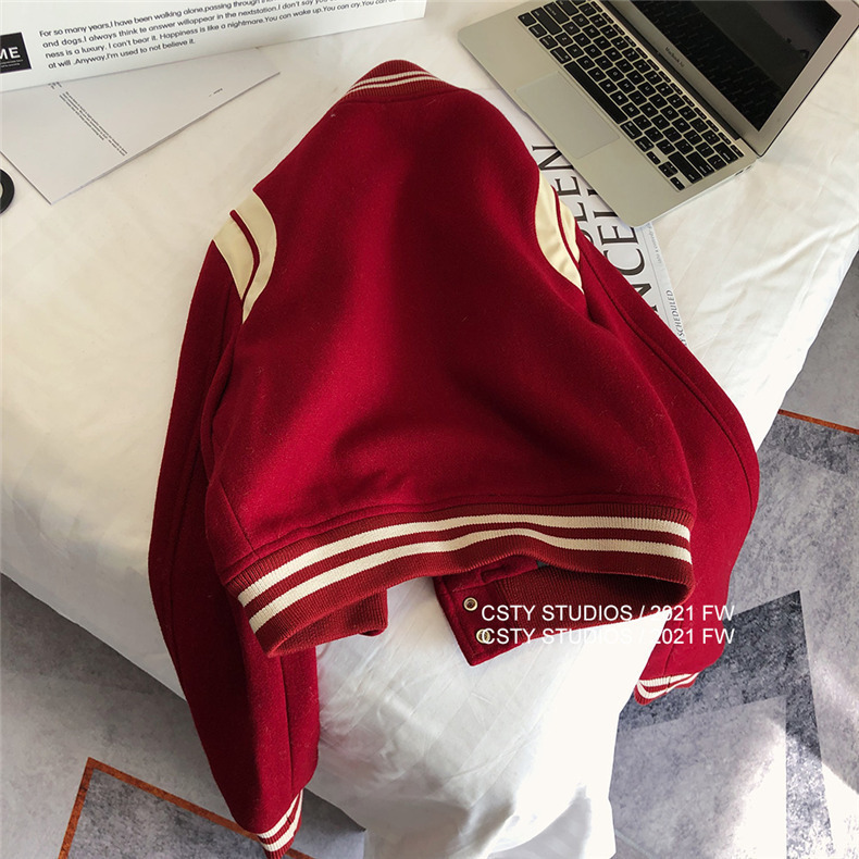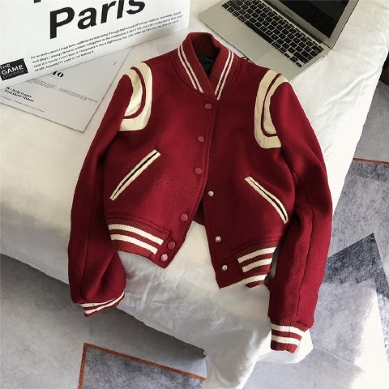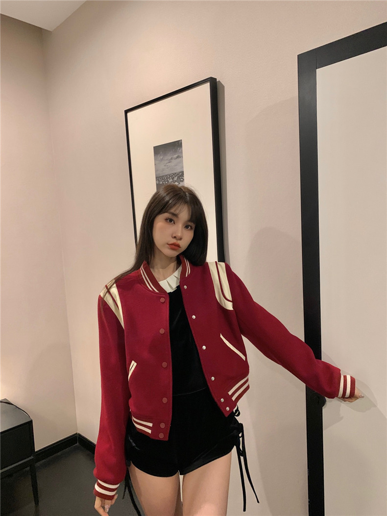 빨간 야구 세트 여자 가을 겨울 옷 2024 봄 새 코트 작은 두꺼운 봄과 가을 최고 하이 엔드 감각스토어 가기