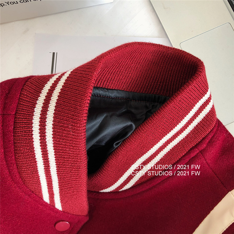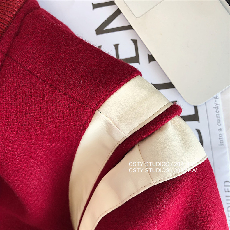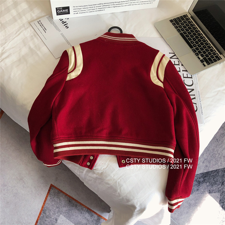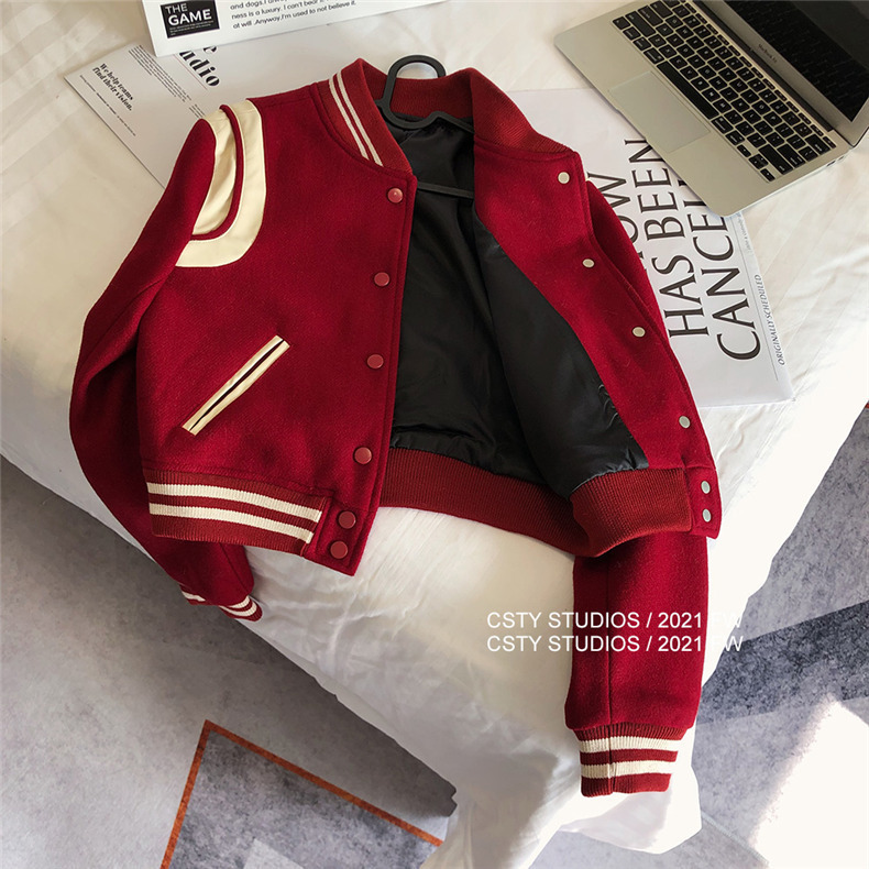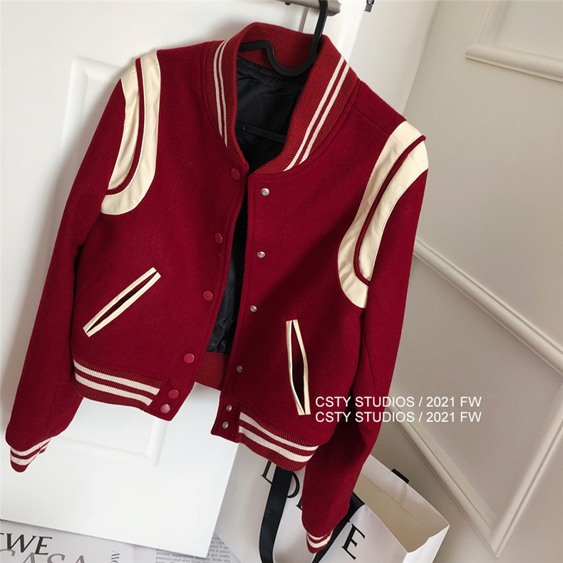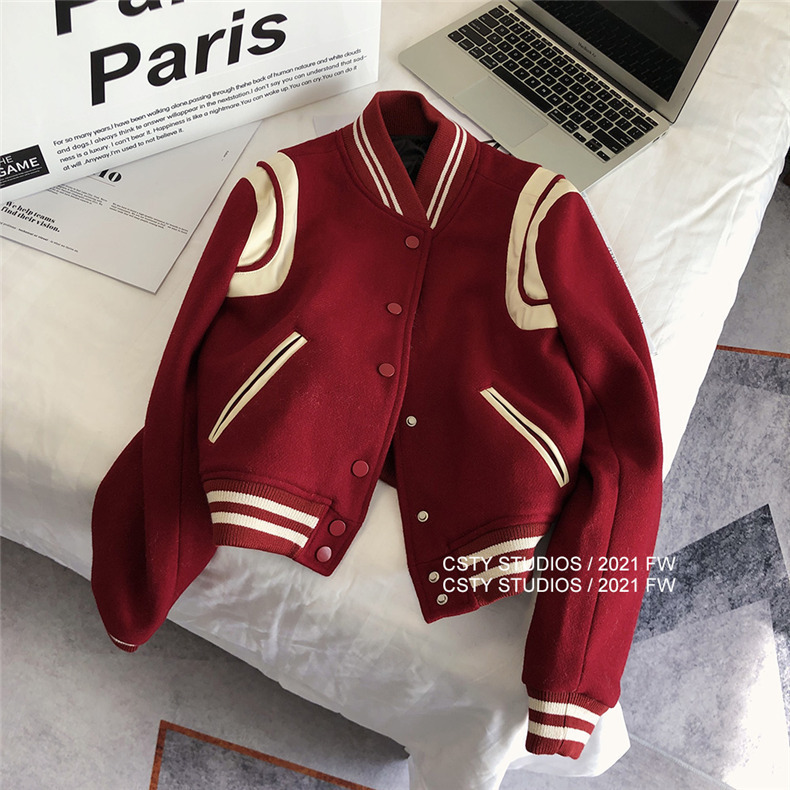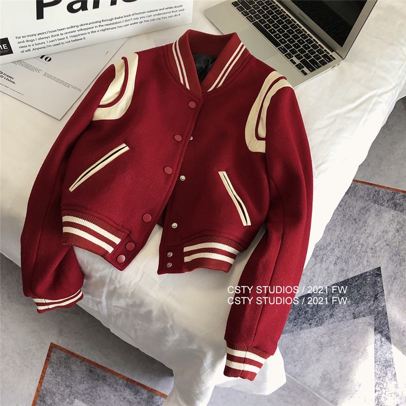 빨간 야구 세트 여자 가을 겨울 옷 2024 봄 새 코트 작은 두꺼운 봄과 가을 최고 하이 엔드 감각스토어 가기