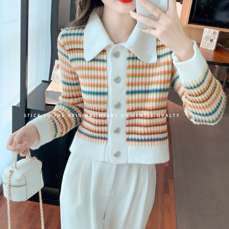 컬러 스트라이프 니트 여성용 스프링 웨어 2025 새로운 짧은 스웨터 코트 여성용 카디건 세련된 스프링 탑