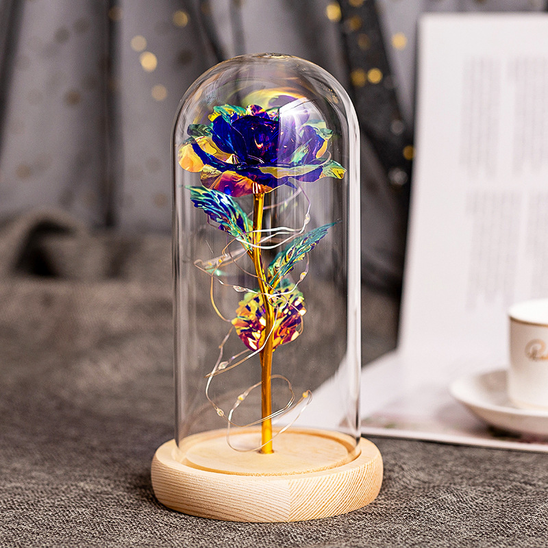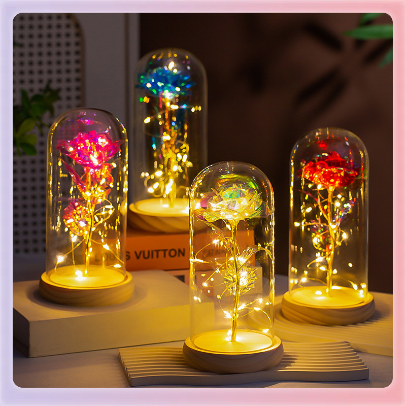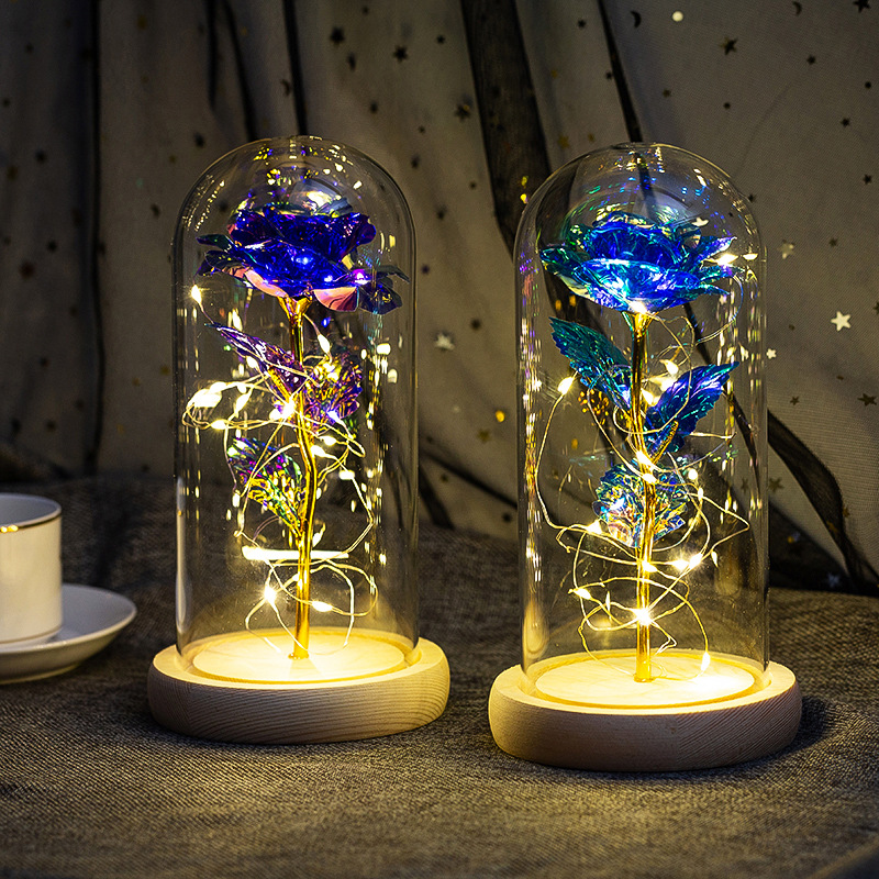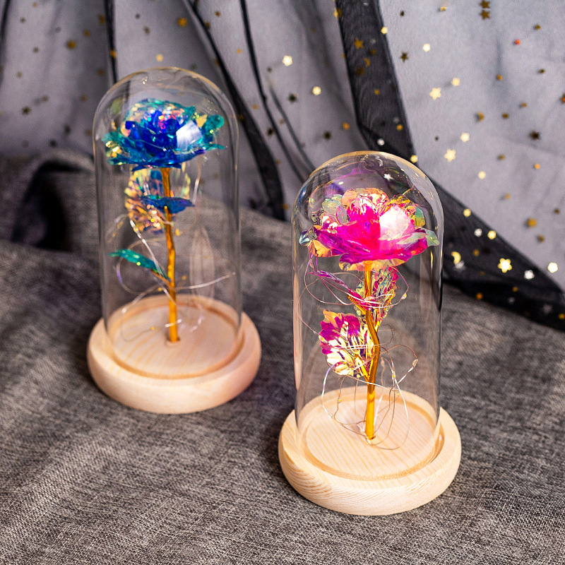 ✅영원한 꽃 장미 유리 램프 그늘 꽃 발렌타인 데이 크리스마스 생일 선물 홈 가구 밤