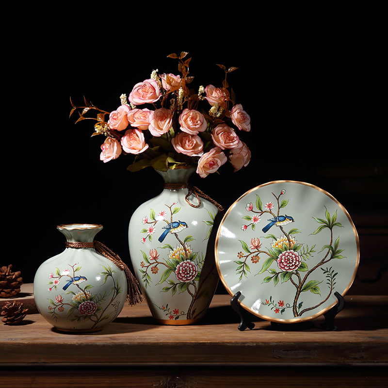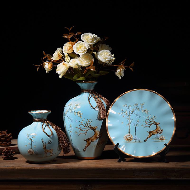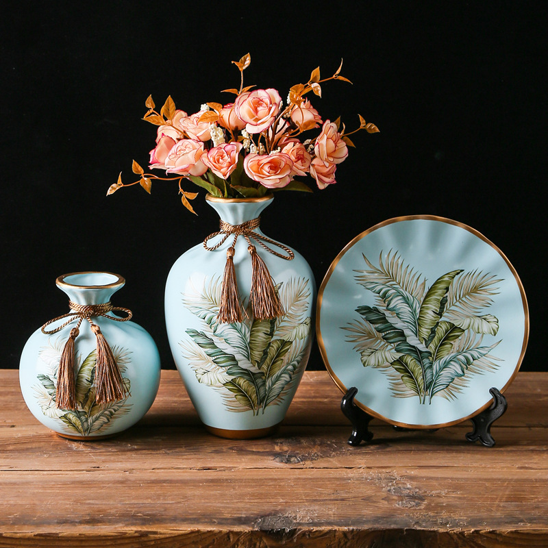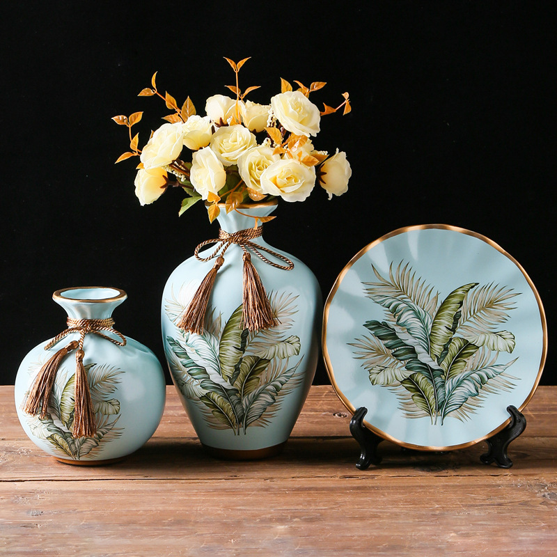 유럽식 세라믹 꽃병 장식품 가벼운 럭셔리 북유럽 거실 꽃 배열 현대 식탁 말린 꽃병 홈 와인 캐비닛 장식스토어 가기