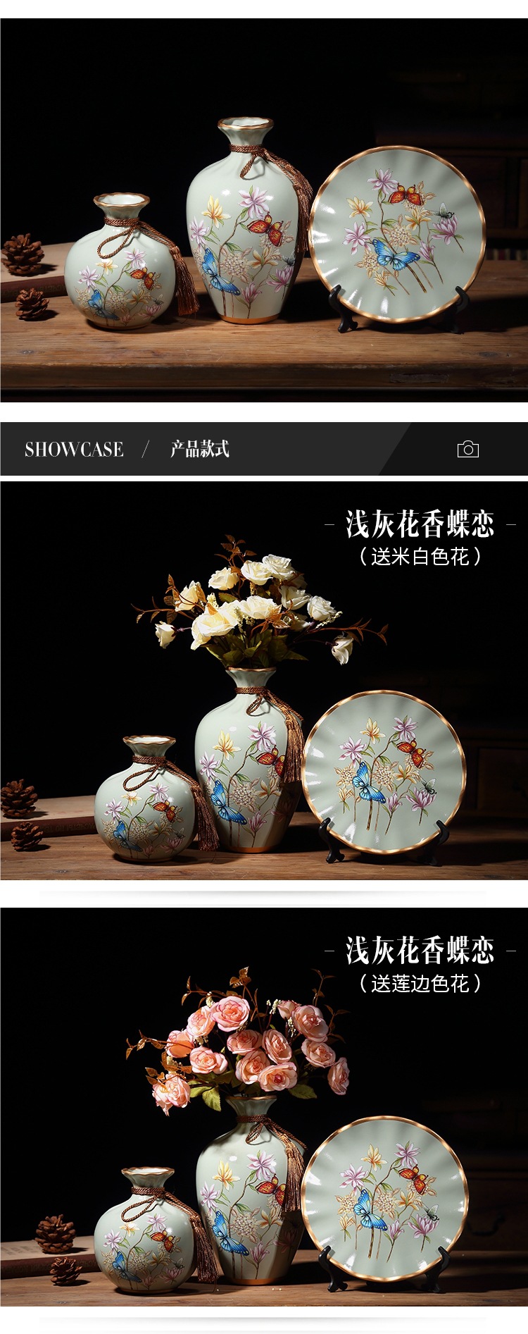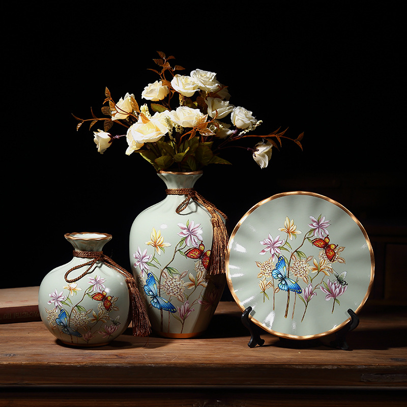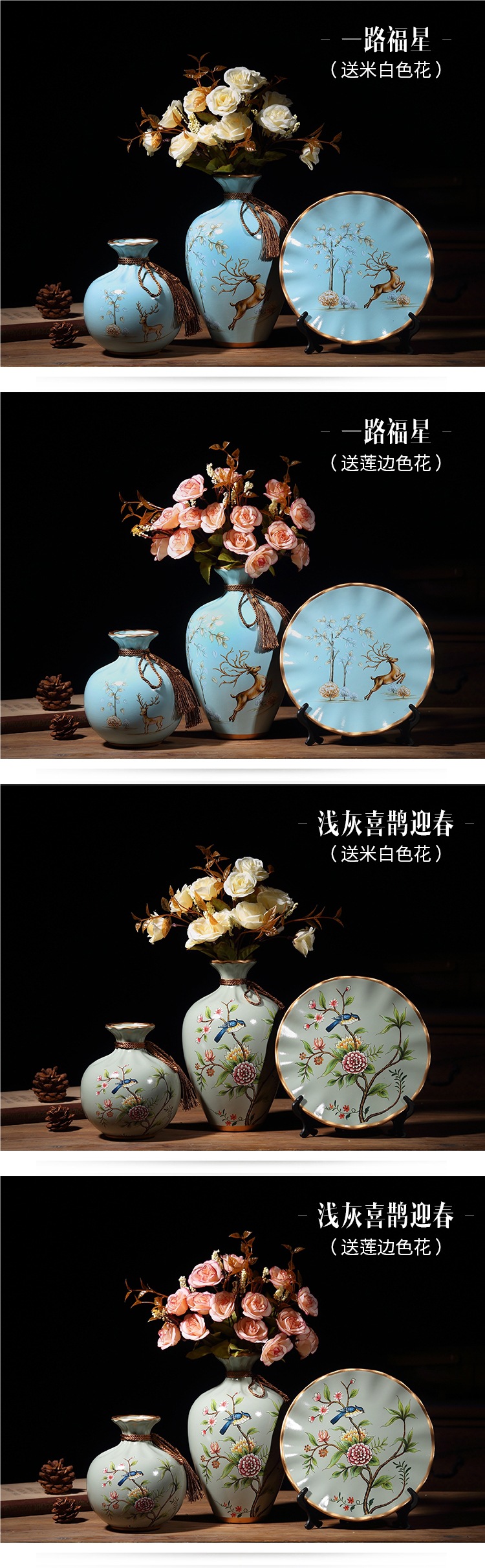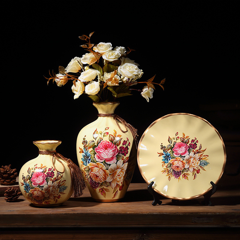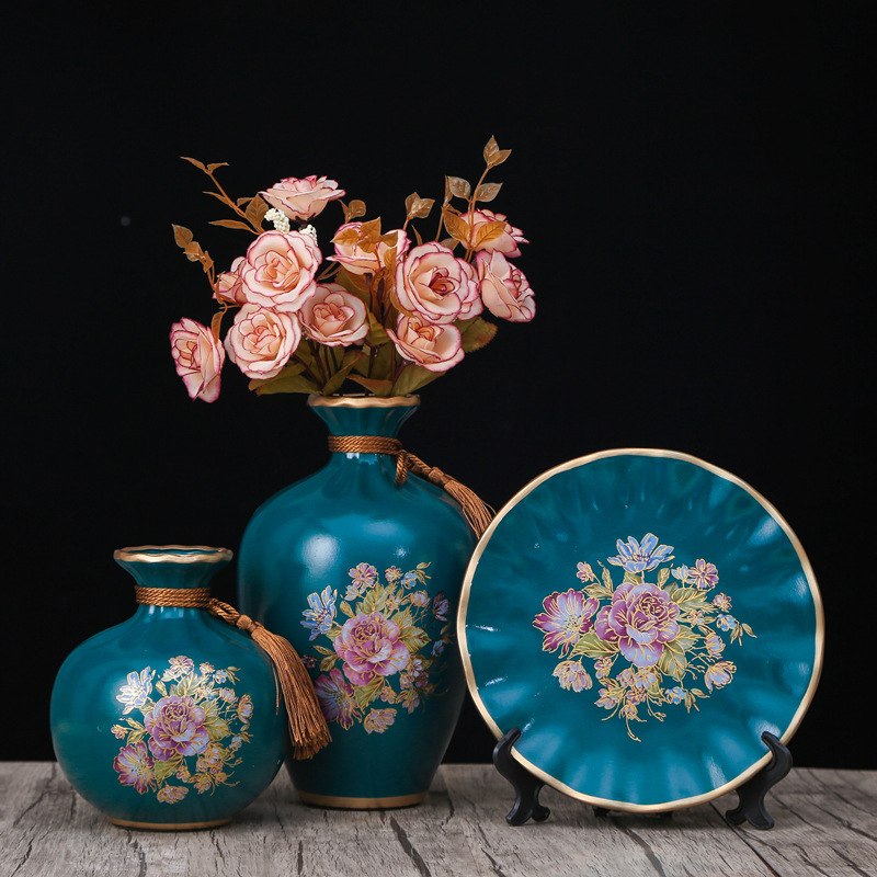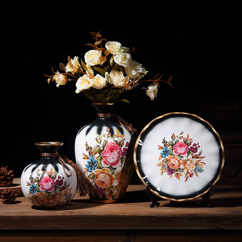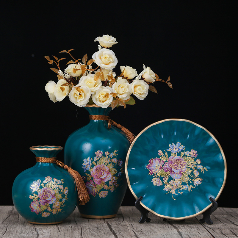 유럽식 세라믹 꽃병 장식품 가벼운 럭셔리 북유럽 거실 꽃 배열 현대 식탁 말린 꽃병 홈 와인 캐비닛 장식