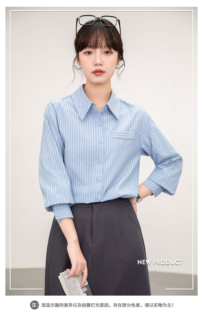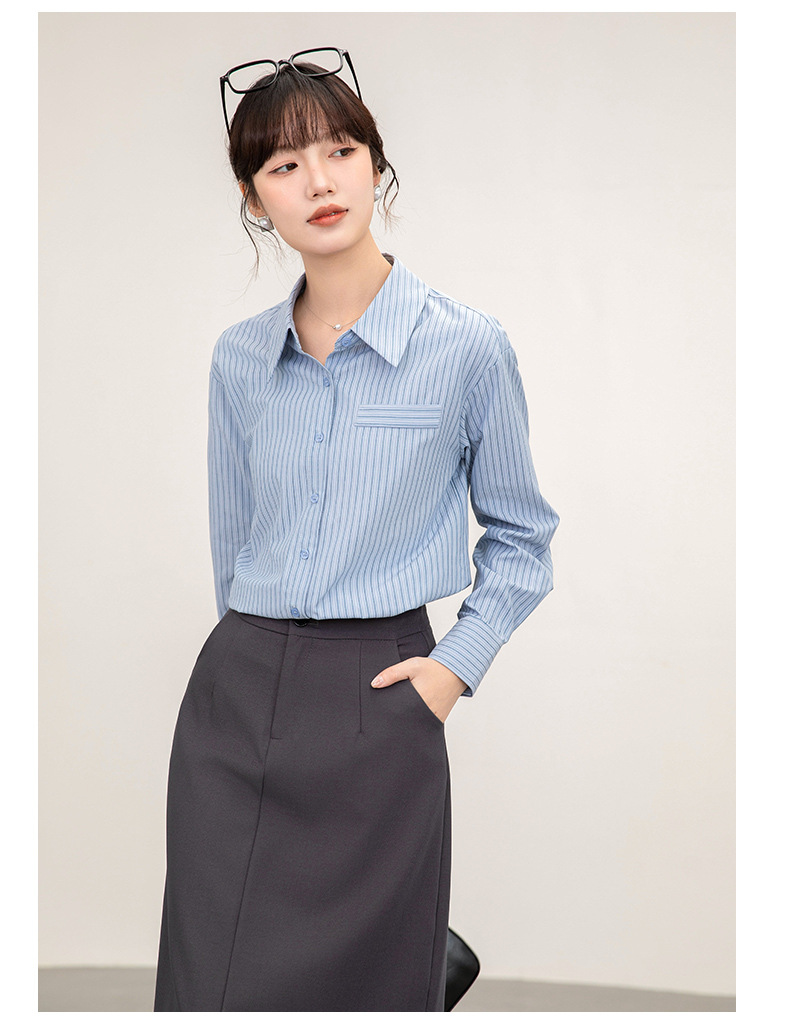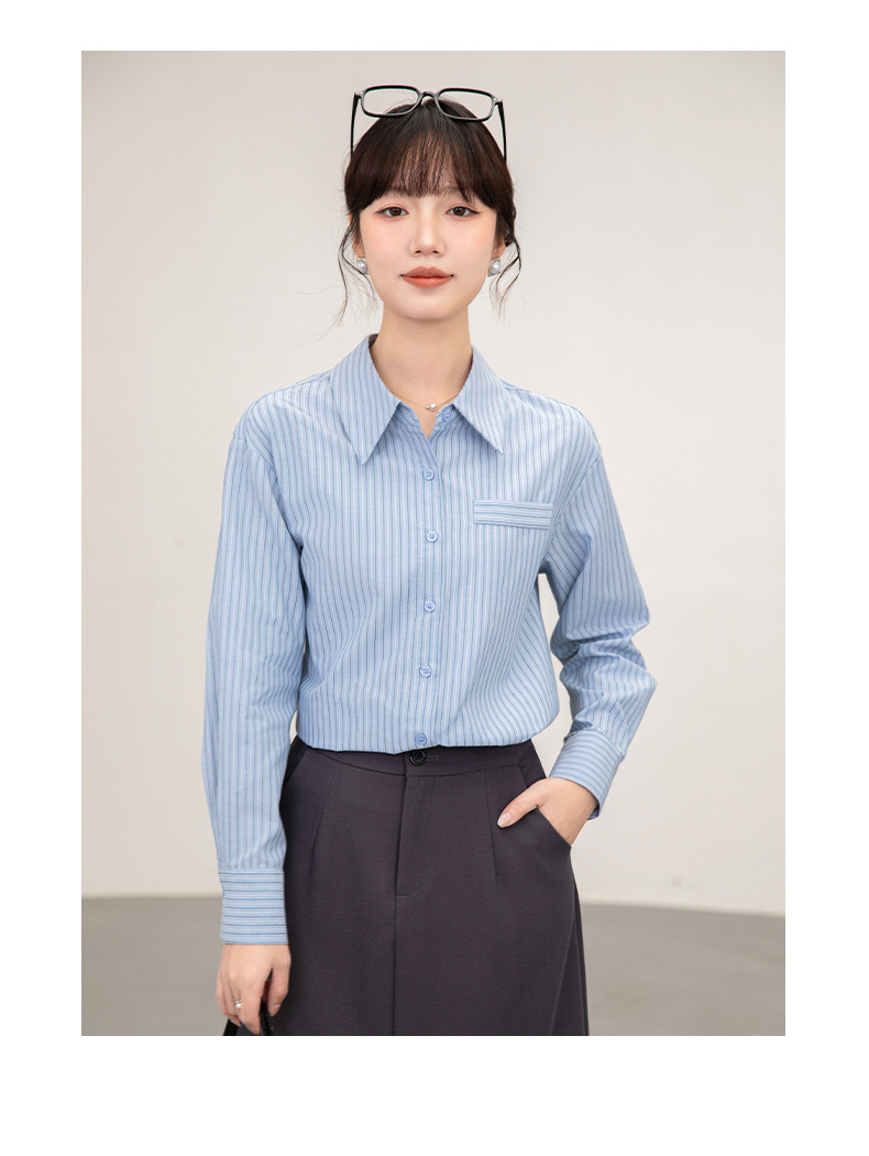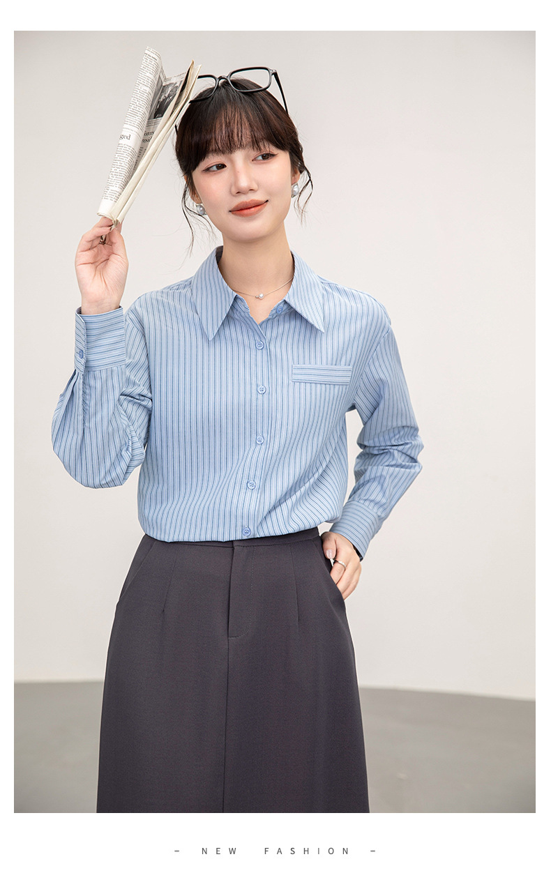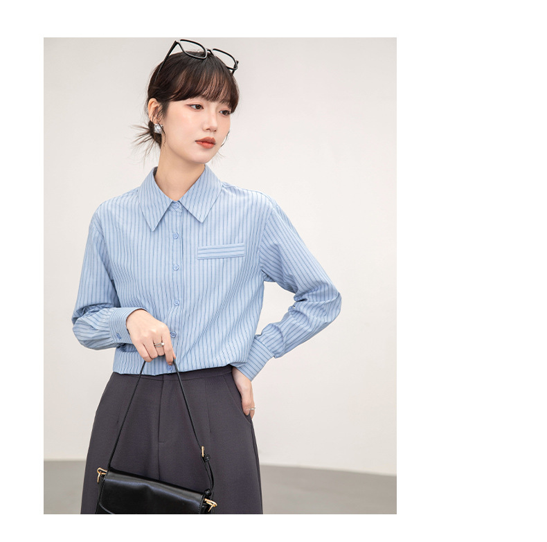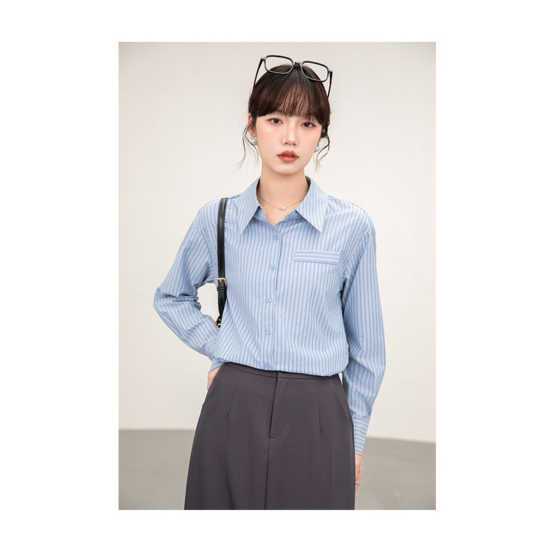 간단한 패션 그린 스트라이프 셔츠 여성의 봄과 가을 새로운 내부 탑 통근 올 매치 우아한 셔츠 재킷 트렌디스토어 가기
