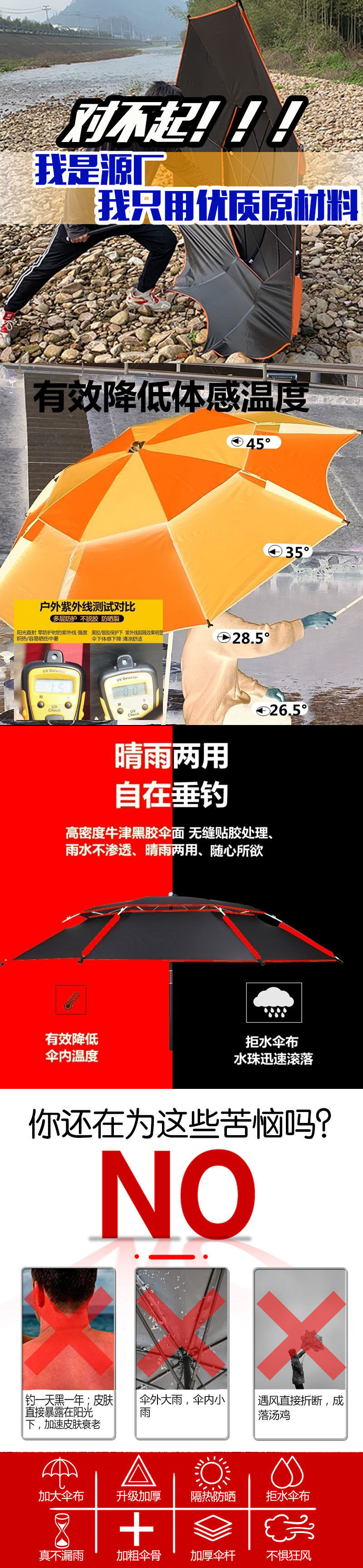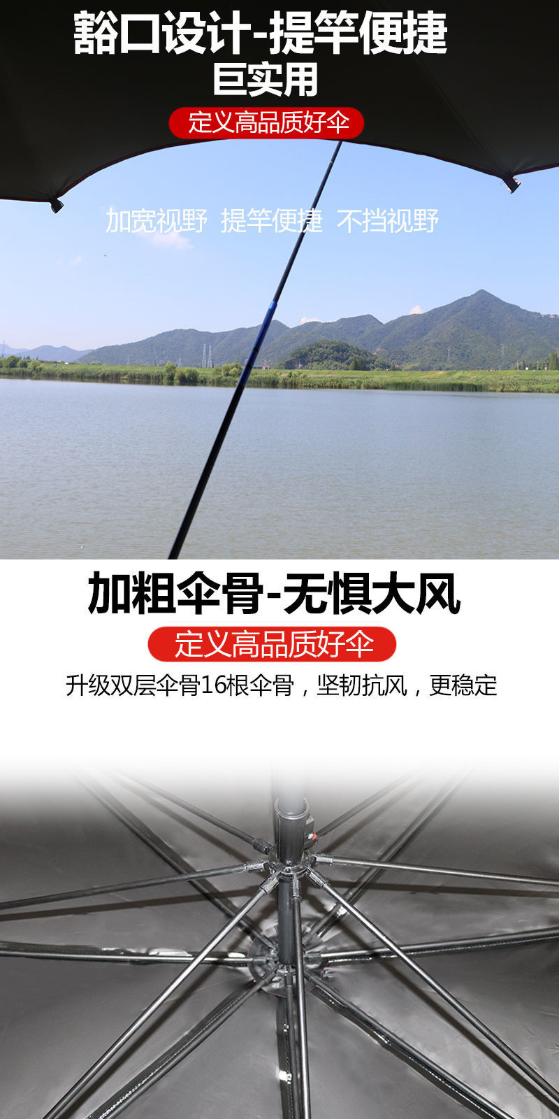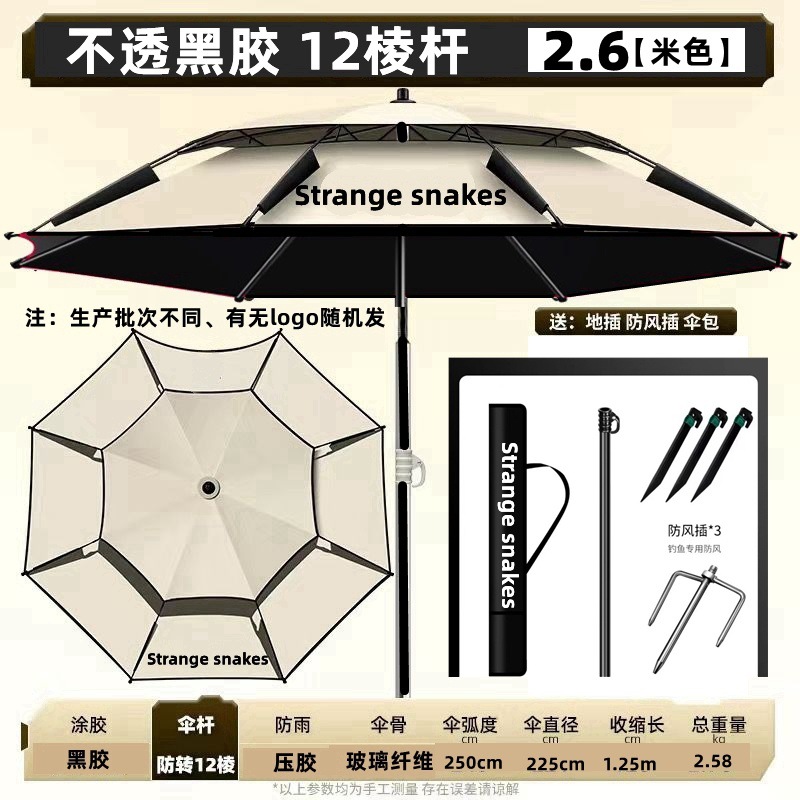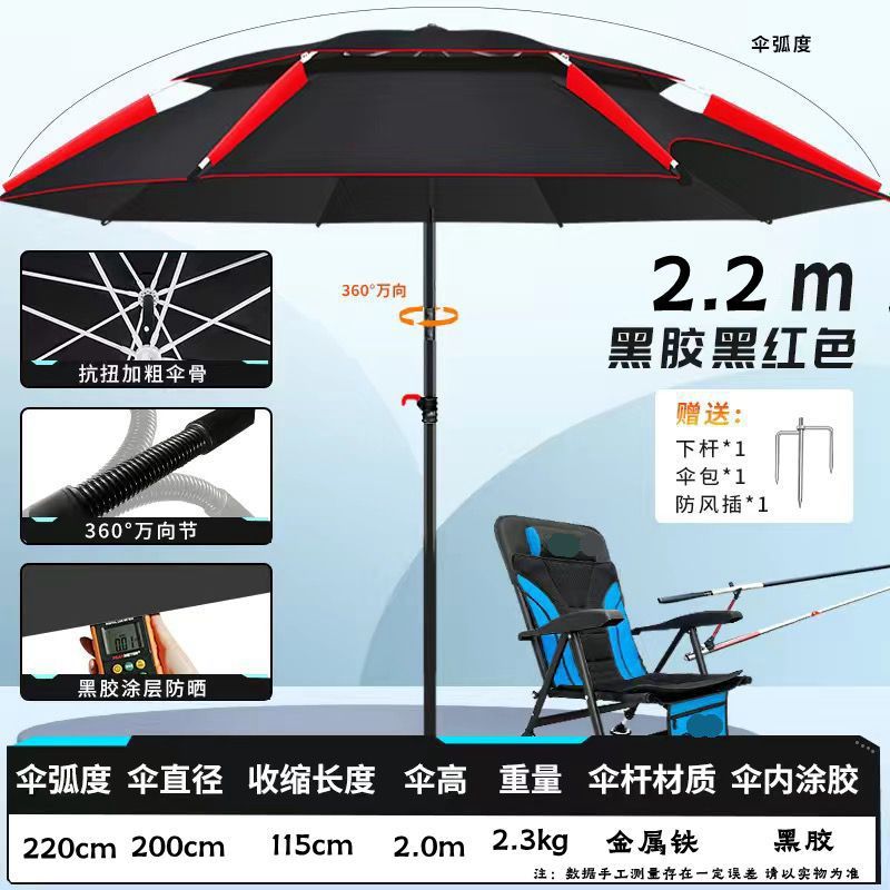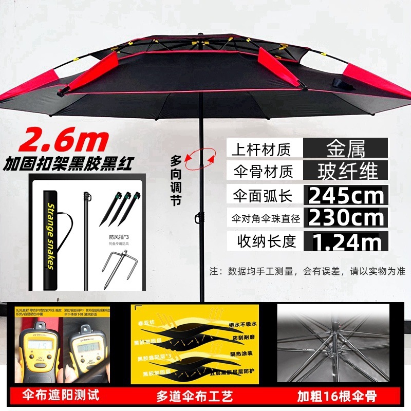 2025 새로운 목발 낚시 우산 대형 낚시 우산 유니버설 더블 방비 검은 접착제 낚시 우산스토어 가기