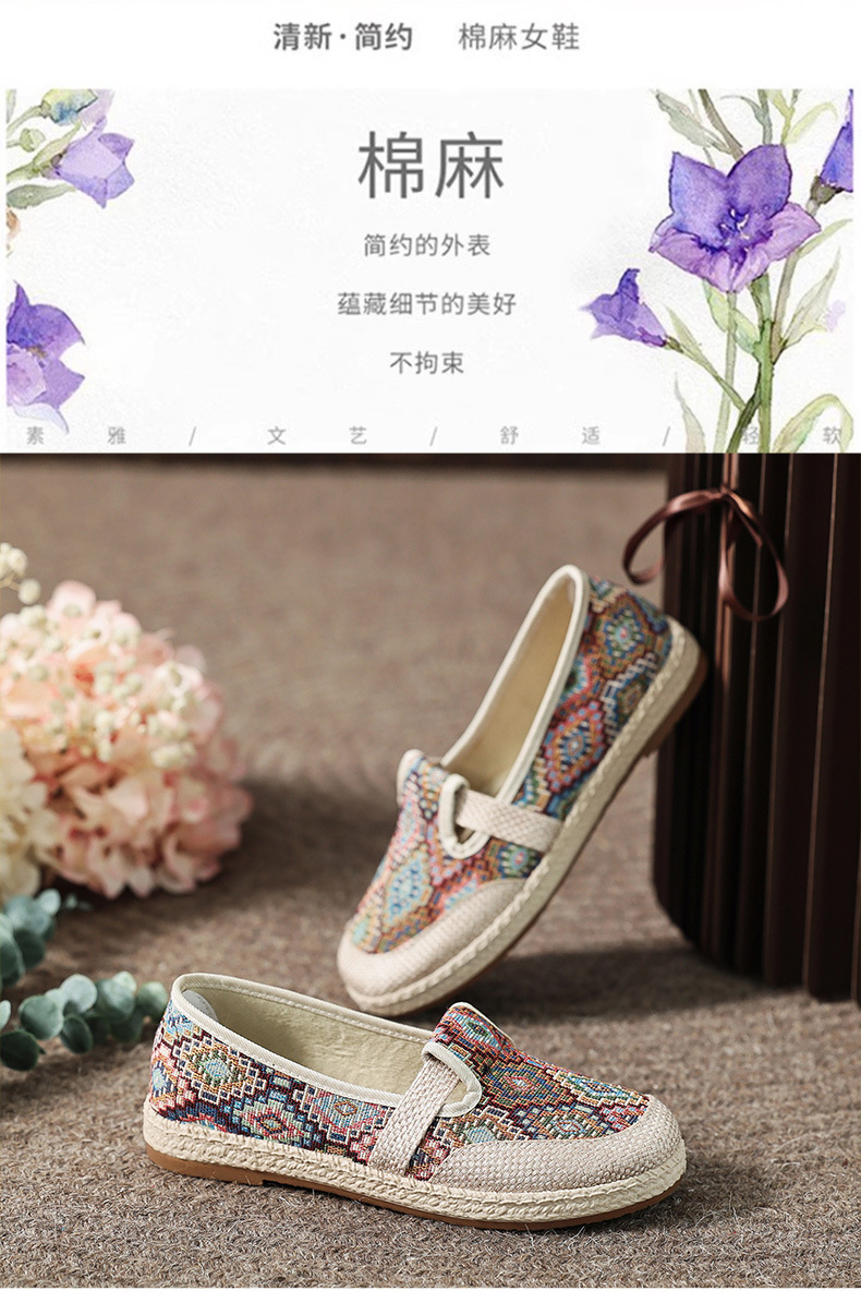 봄 새로운 오래된 베이징 천 신발 여성 민족 스타일 캔버스 신발 여성용 부드러운 밑창 리넨 게으른 한 단계 어부 신발스토어 가기