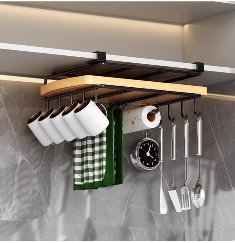 • [야오예 블랙] 특대형 2단 [도마걸이 + 종이타월 비닐랩 걸이 + 양쪽 고리]