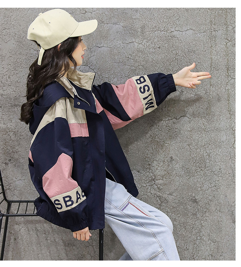 소녀 윈드 브레이커 코트 봄과 가을 2025 새로운 스타일 Russo Girls Girls 어린이 서양식 후드 봄 옷