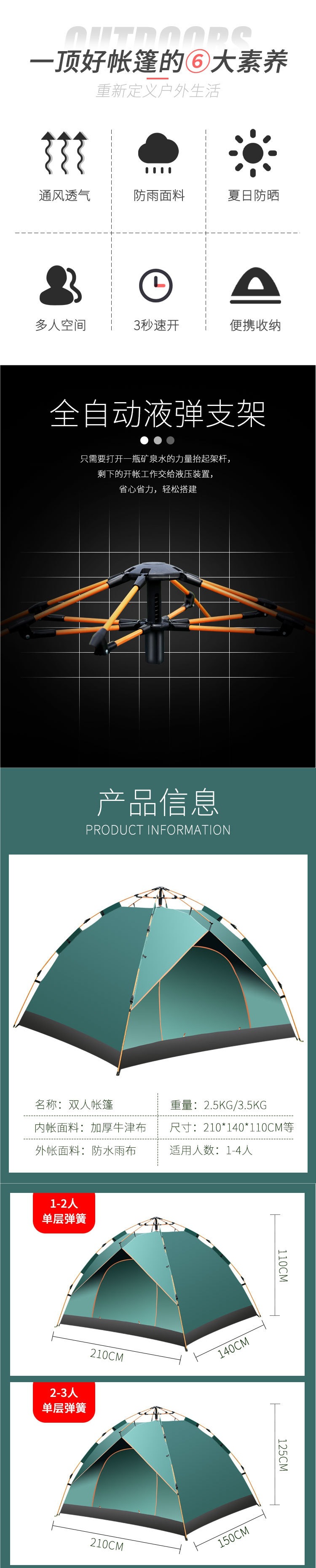 Yuanyi Beach 3-4 명 여행 더블 레이어 완전 자동 텐트 캠핑 장비 야외 텐트 더블 캠핑 텐트