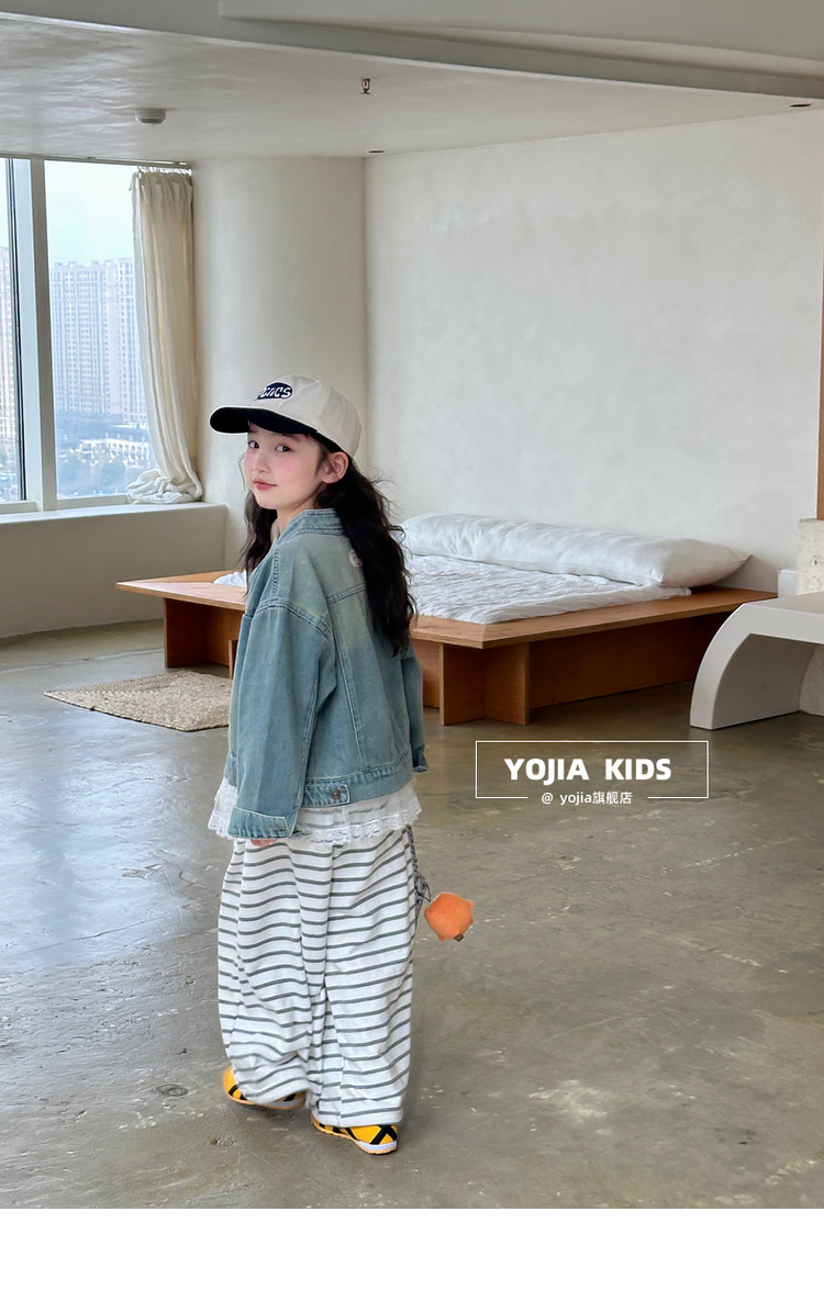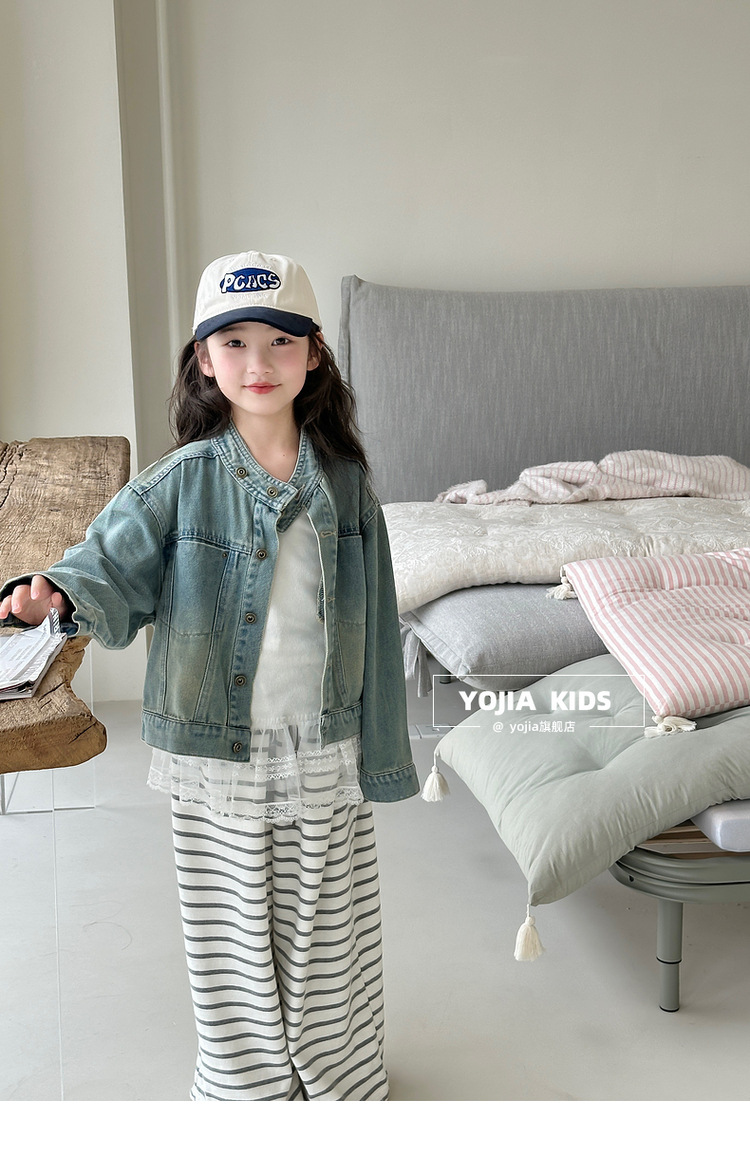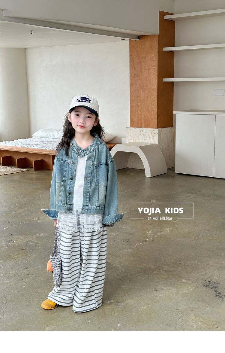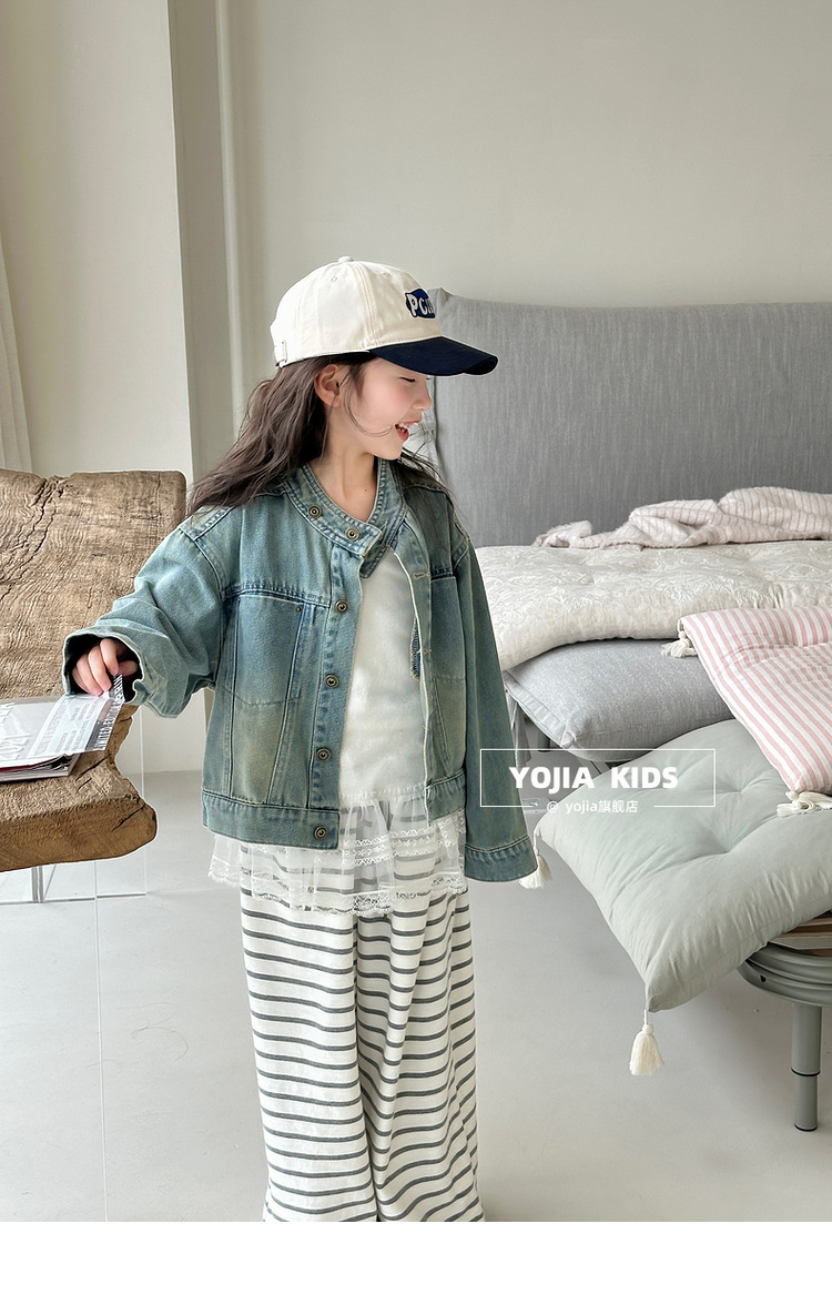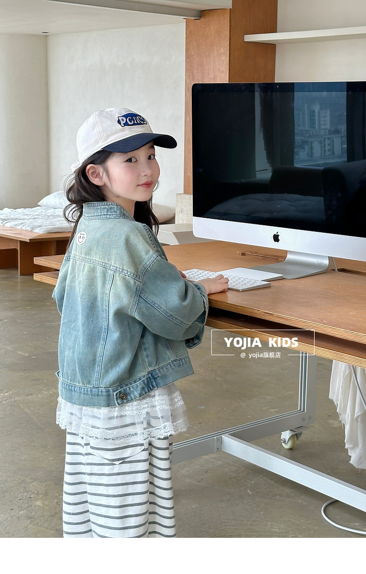 YOJIA 여자 데님 코트 봄 2025 새로운 스타일 한국 스타일 소녀 재킷 어린이 봄 재킷