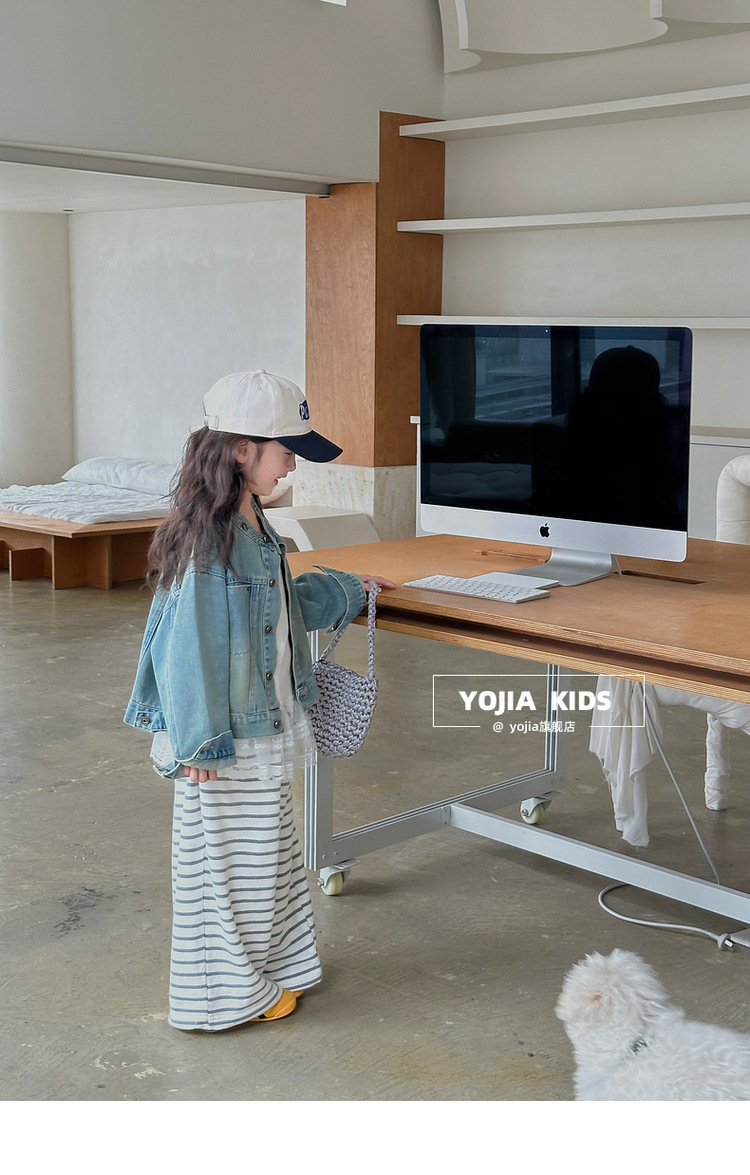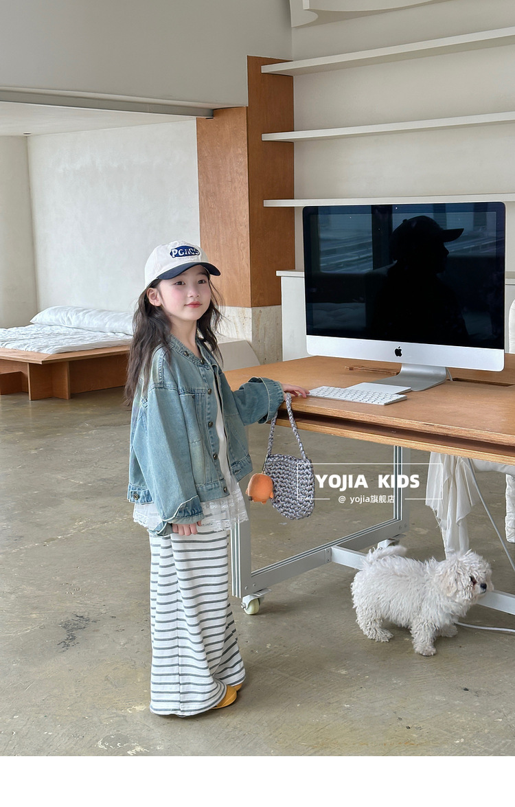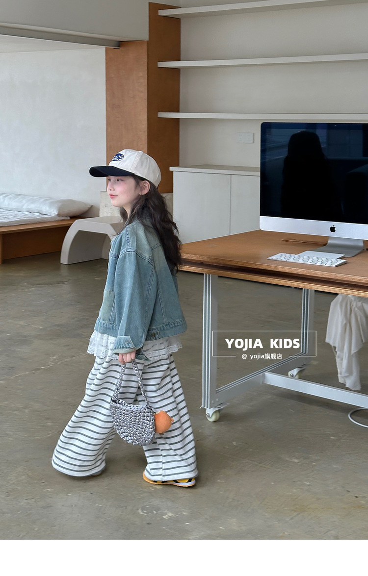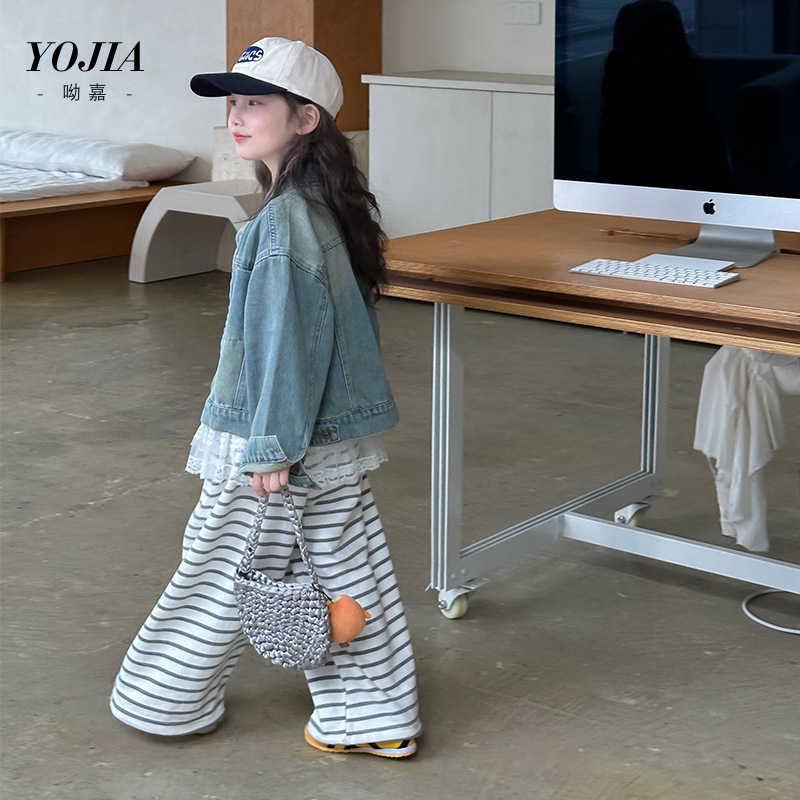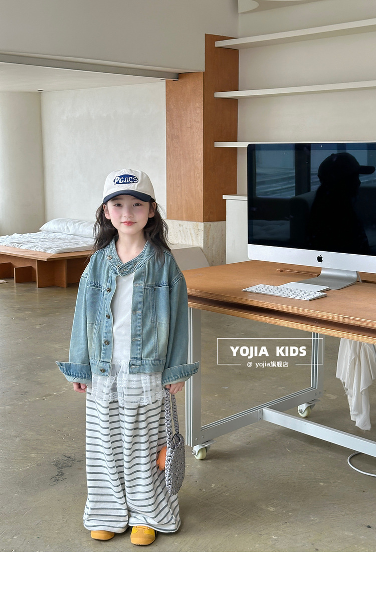 YOJIA 여자 데님 코트 봄 2025 새로운 스타일 한국 스타일 소녀 재킷 어린이 봄 재킷