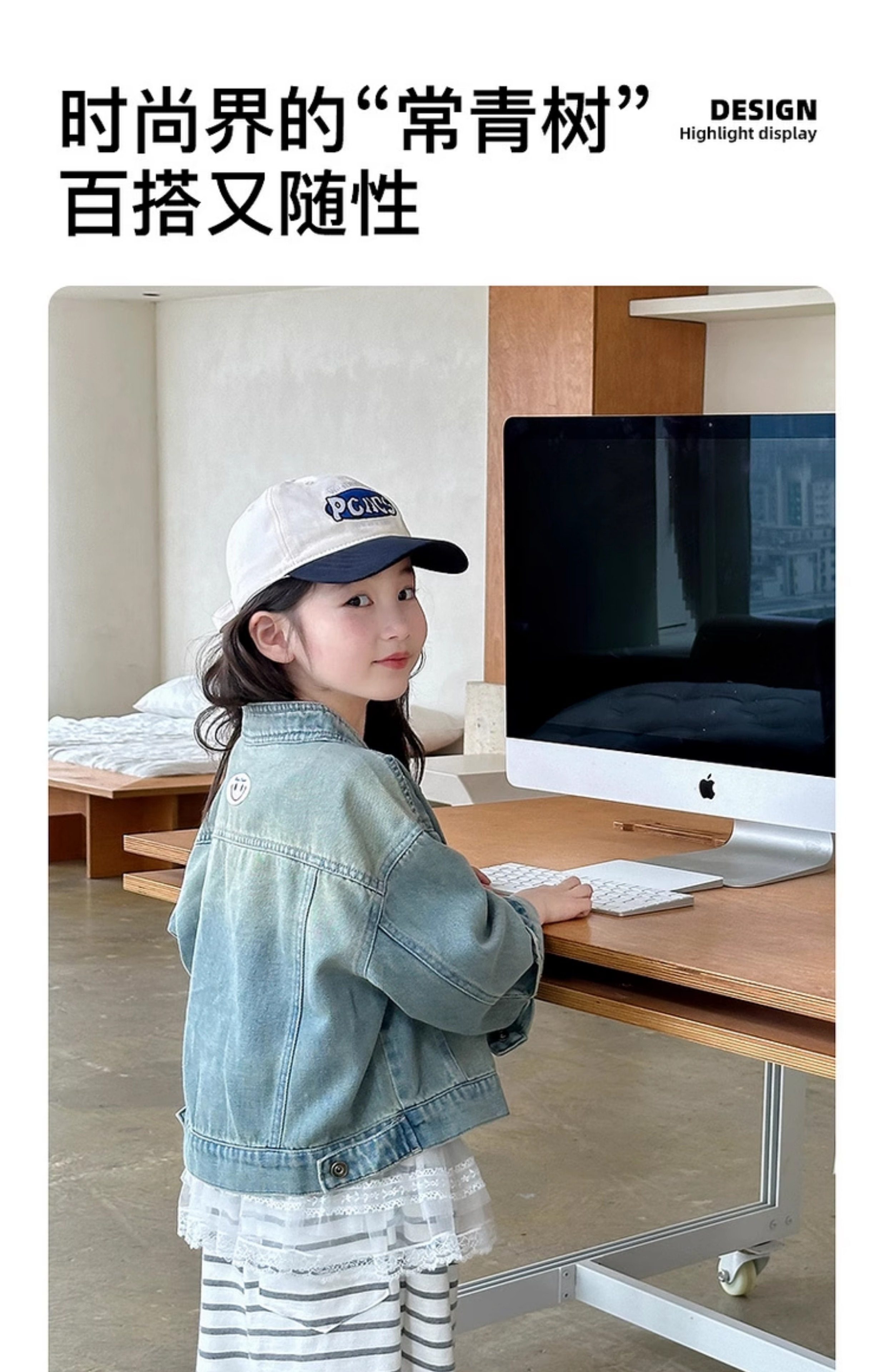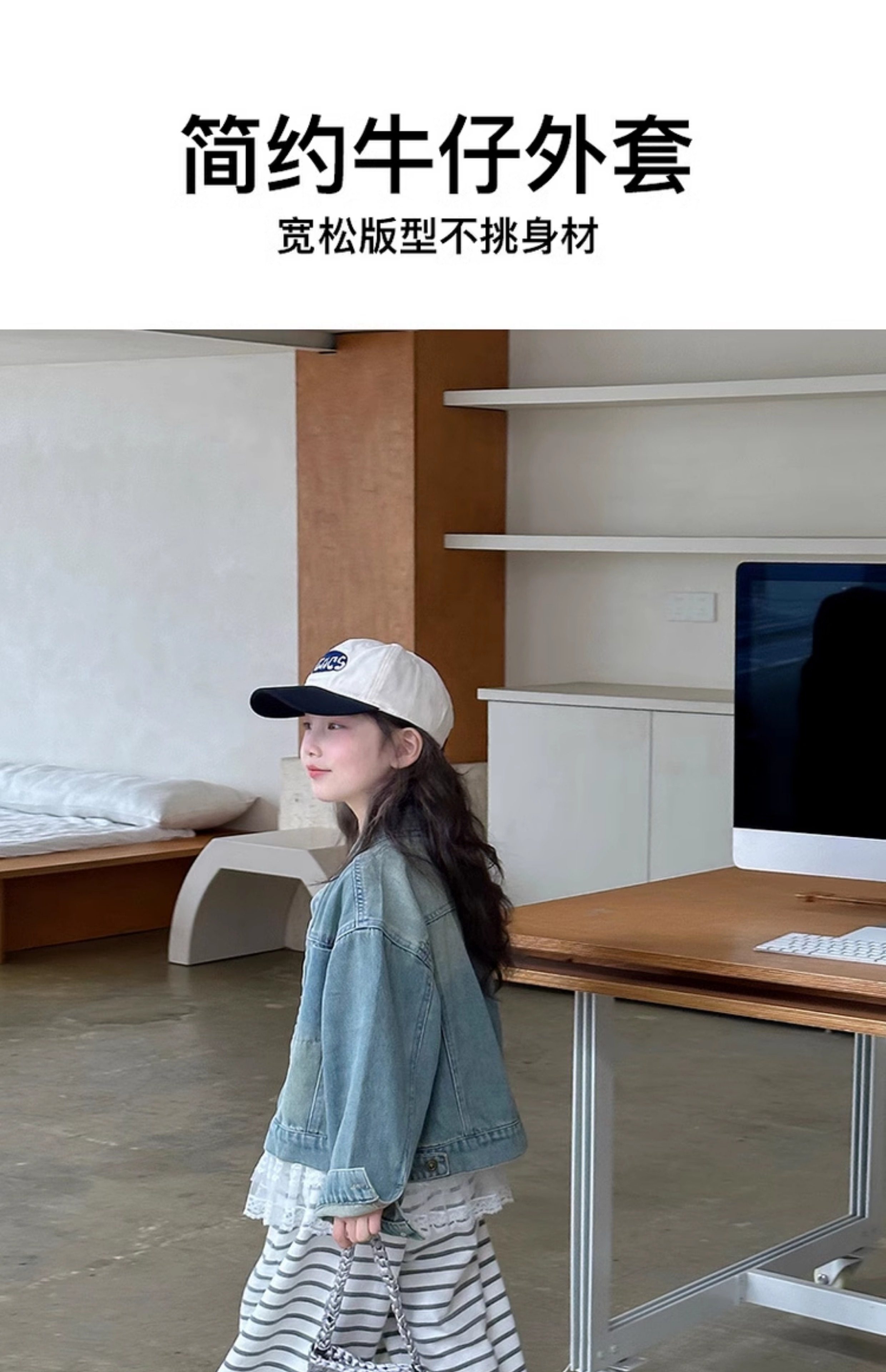 YOJIA 여자 데님 코트 봄 2025 새로운 스타일 한국 스타일 소녀 재킷 어린이 봄 재킷스토어 가기