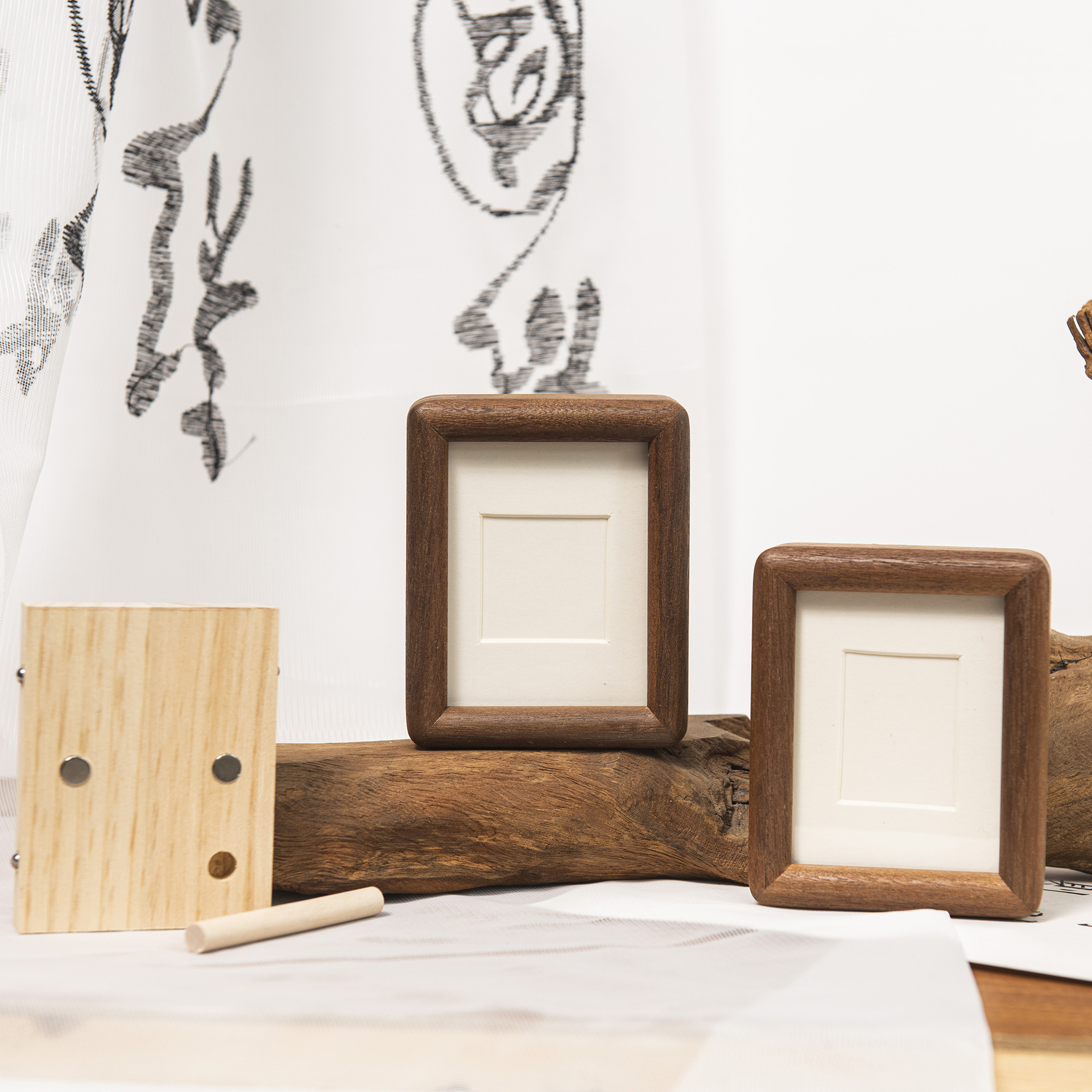 원목 액자 원목 접합 호두색 황금 백단 둥근 모서리 연마 미니 3inch 사진 스탠드 입체 테이블 장식