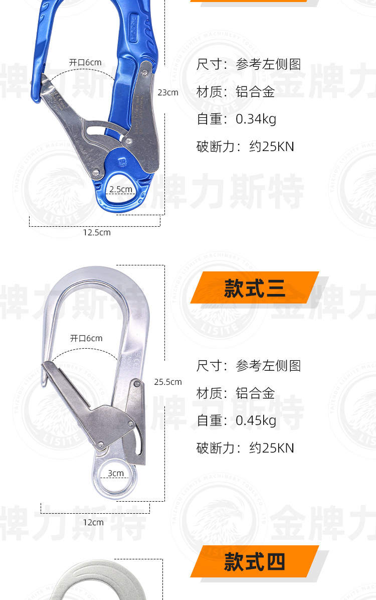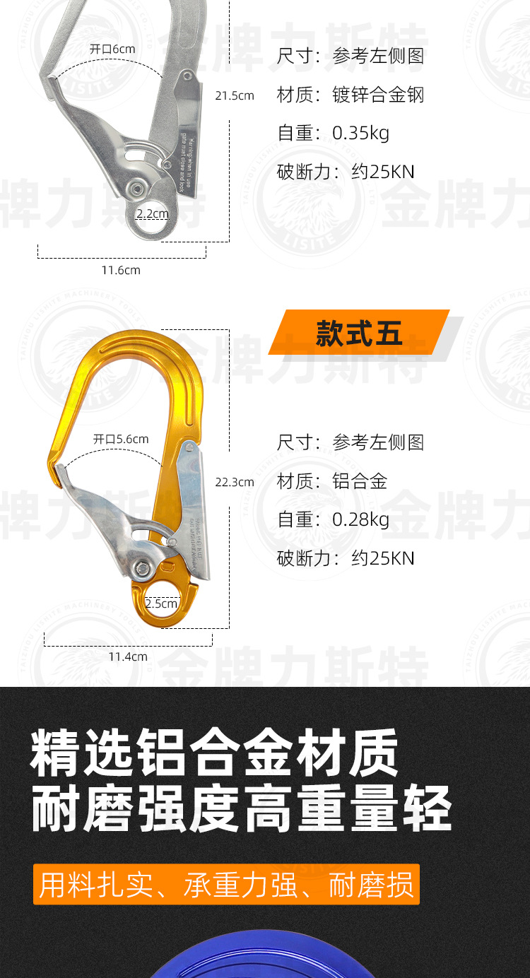안전 벨트 대형 후크 대형 후크 알루미늄 합금 안전 벨트를 위한 큰 후크 알루미늄 후크 후크스토어 가기