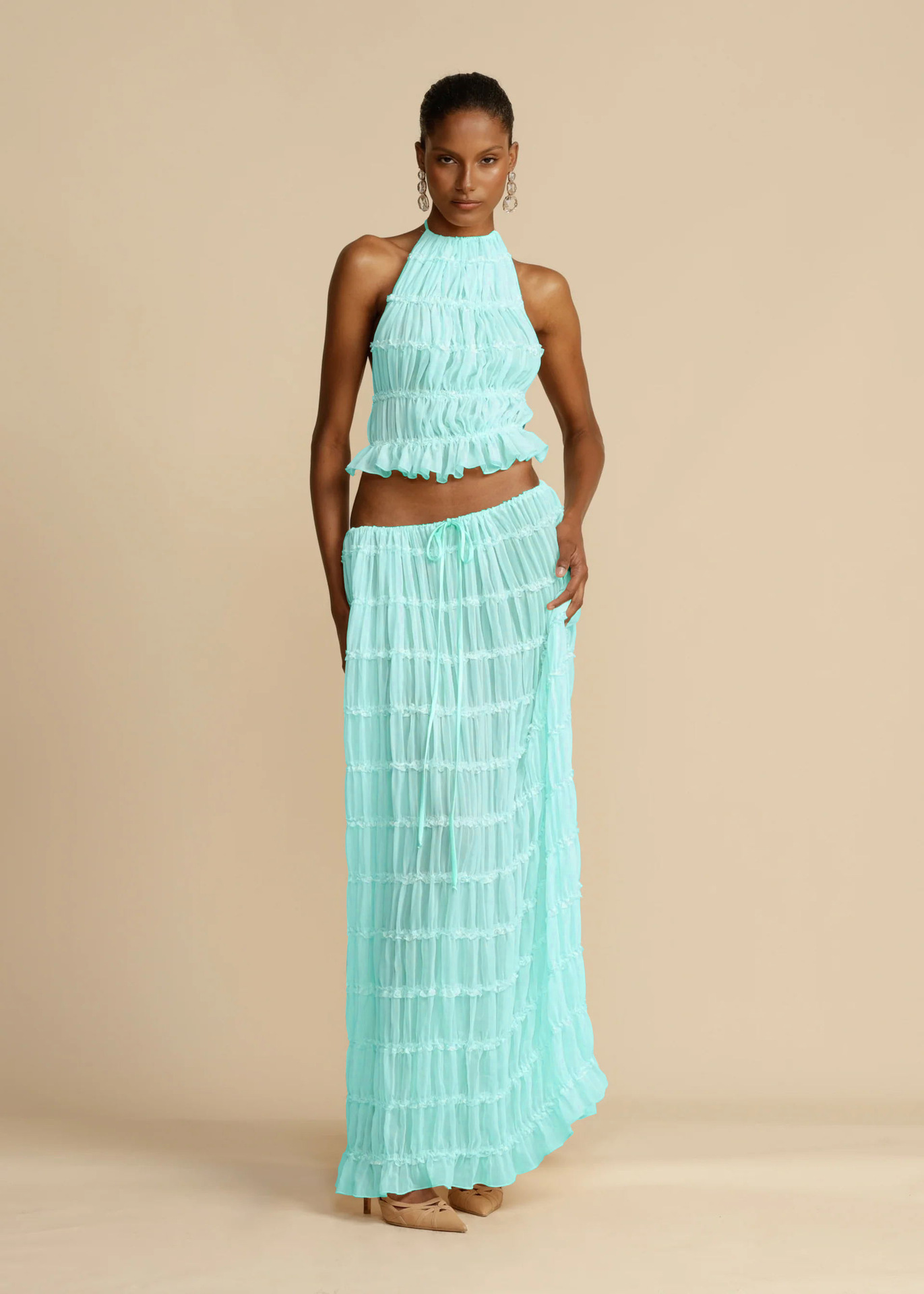 국경 2024 유럽과 미국 봄과 여름 새로운 캐주얼 목 착용 더 많은 투피스 INS 느슨한 휴가 여성 치마 세트