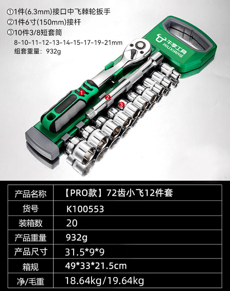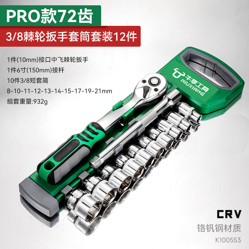 Xun 국경 산업 등급 가정용 휴대용 다기능 크롬 몰리브덴 강철 대형, 중형 및 소형 비행 72 치아 래칫 렌치 세트 전체 세트스토어 가기