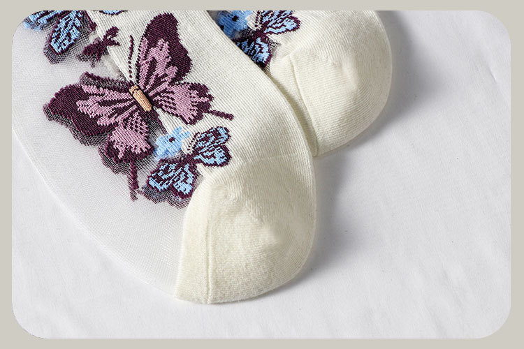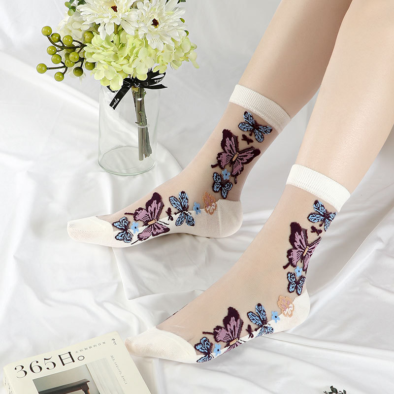 여름 새 크리스탈 실크 여자 미드 튜브 양말 나비 양말 미드 튜브 여성용 양말 빈티지 Ins 트렌디 한 올매치